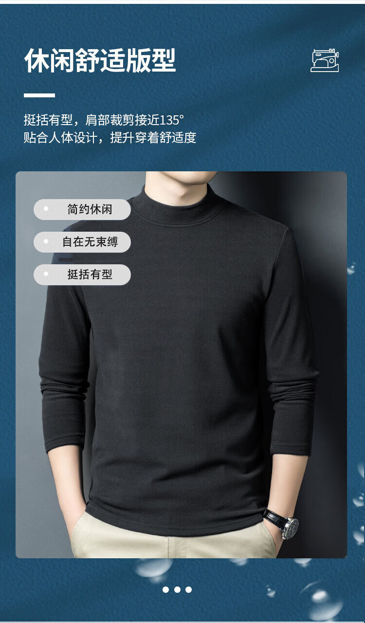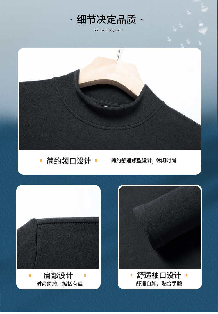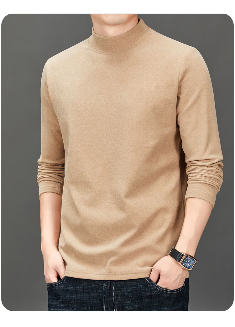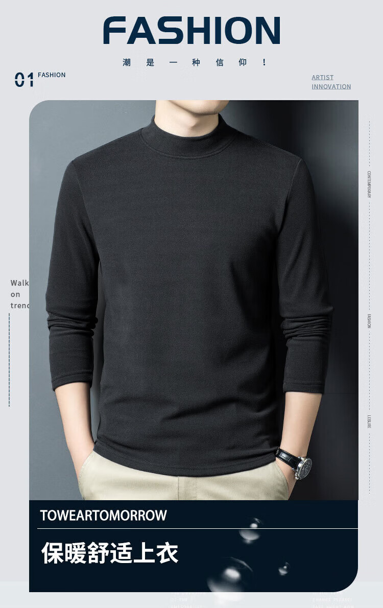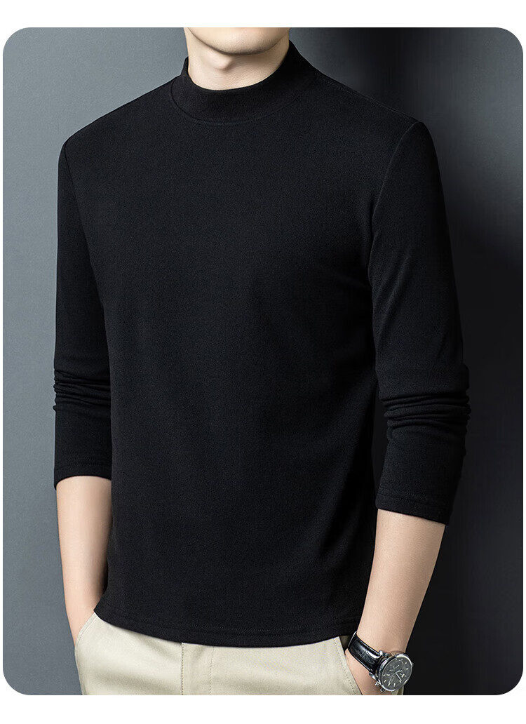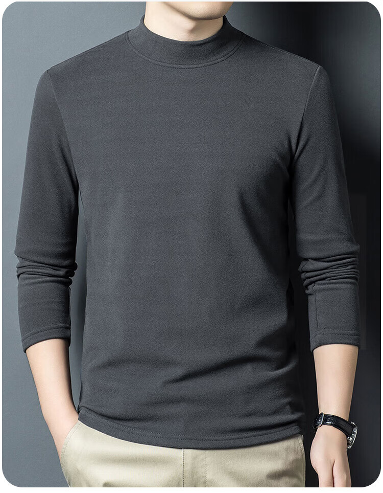 Antarctic German velvet bottoming shirt men's autumn and winter long-sleeved T-shirt half turtleneck double-sided brushed plus velvet thickened solid color inner top