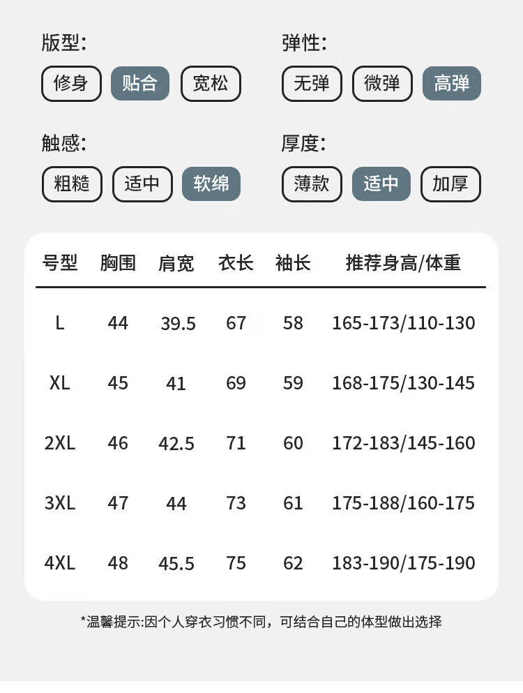 China (cm) 165 / 88-90 170 / 96-98 175 / 108-110 180 / 118-122 185 / 126-130