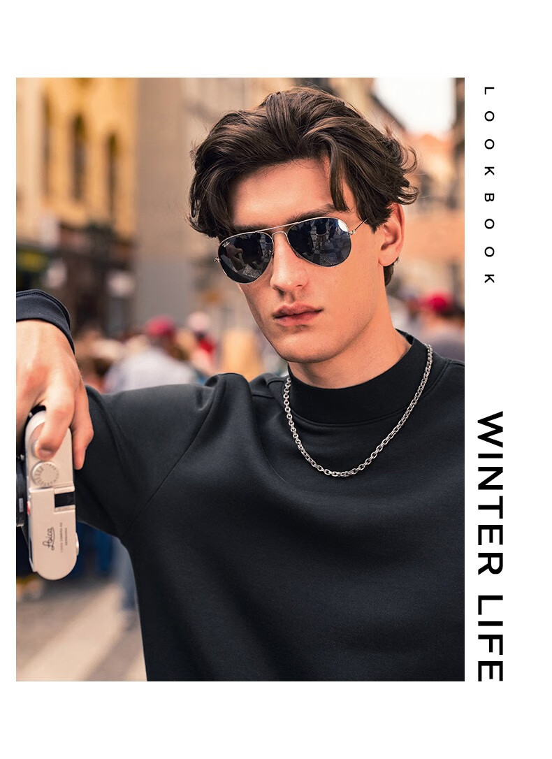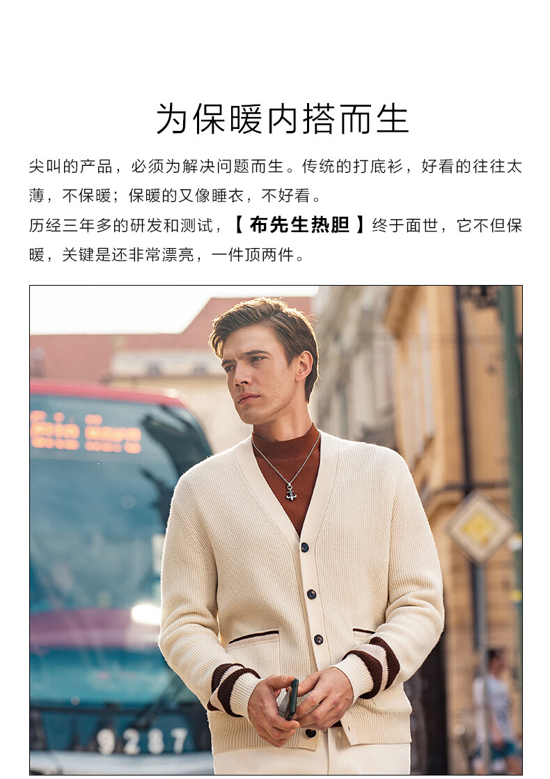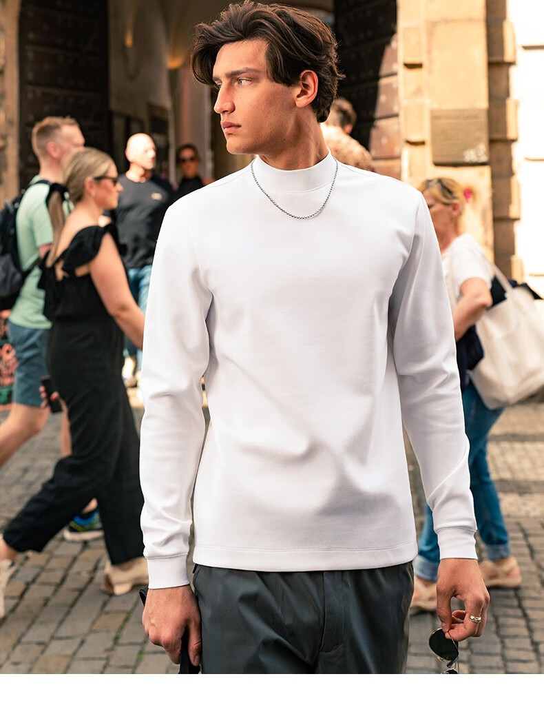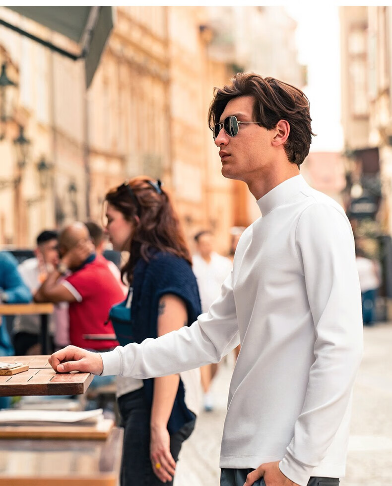 Mr. Bu small turtleneck thickened warm long-sleeved bottoming T-shirt men's autumn and winter bottoming shirt ivory white L/175
