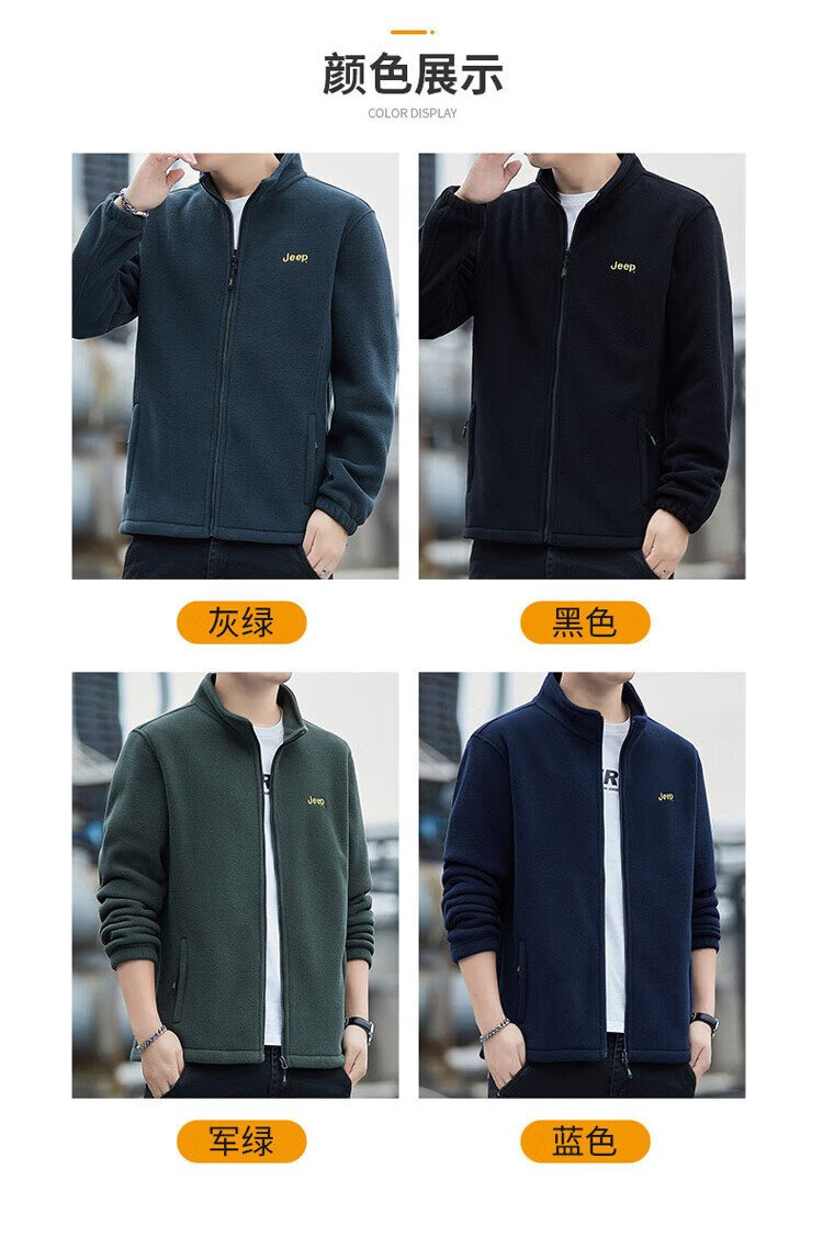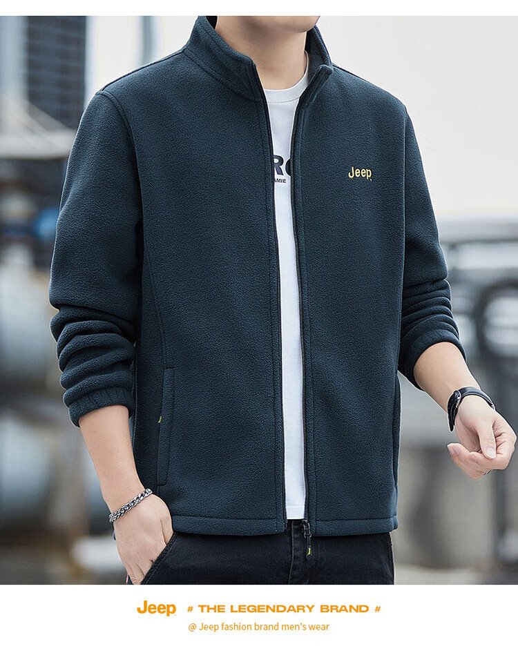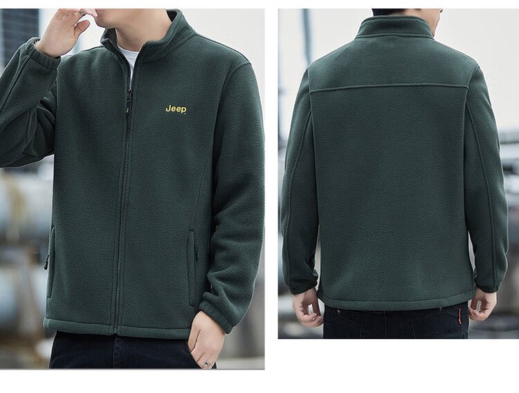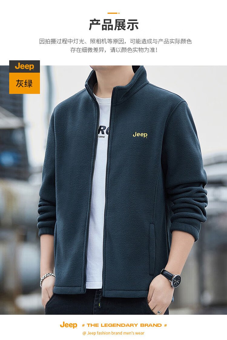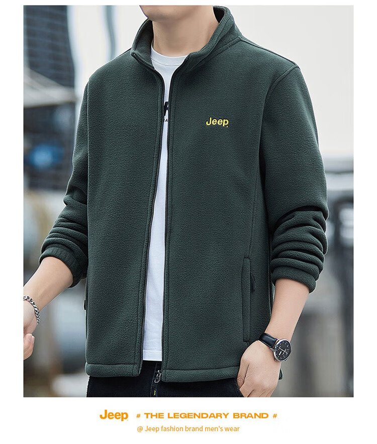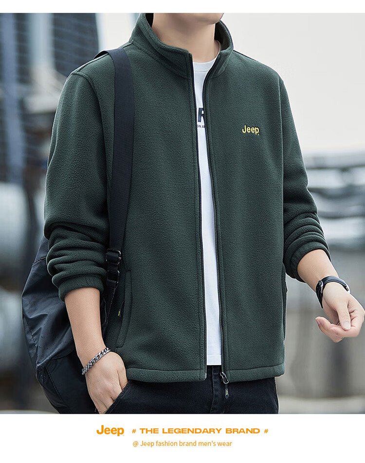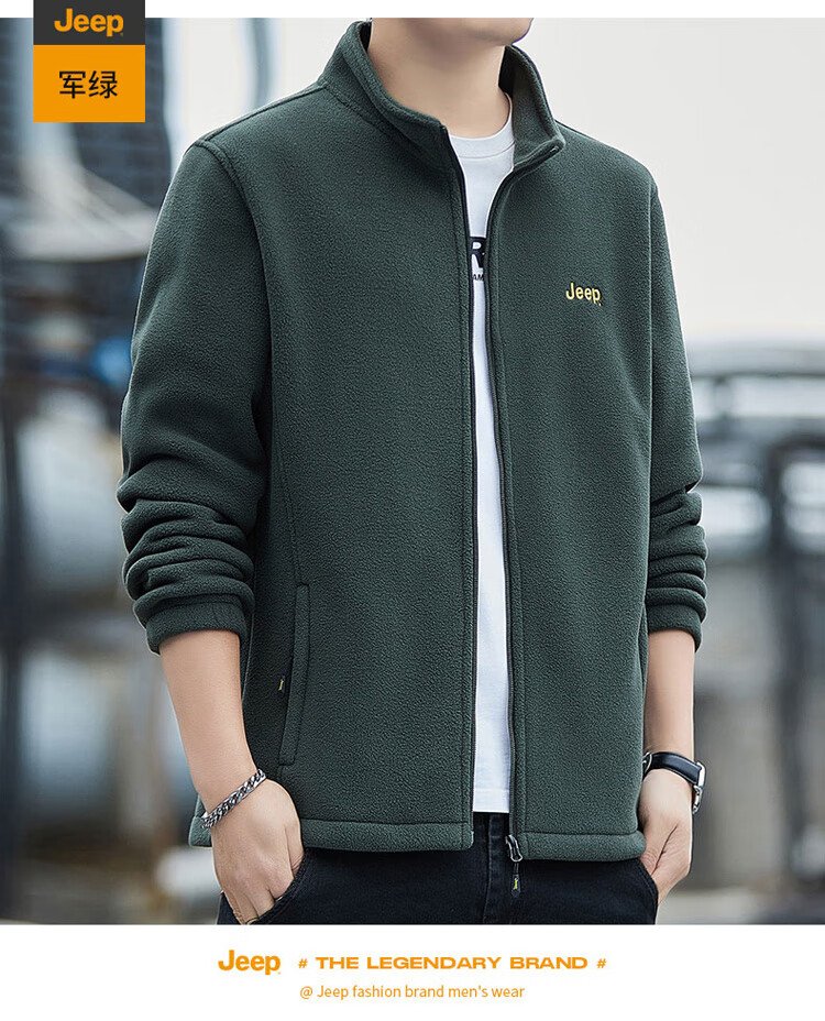 JEEP Sweater Men's Autumn and Winter Polar Fleece Thick Warm Cardigan Jacket Men's Loose Stand Collar Men's Gray Green XL