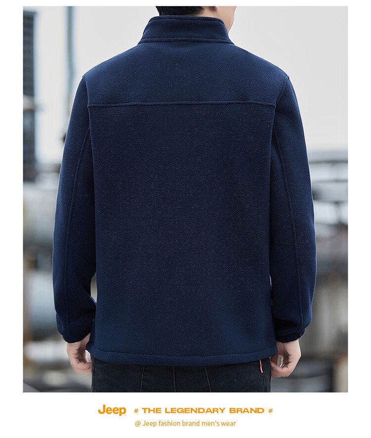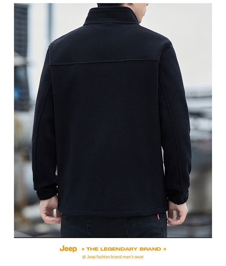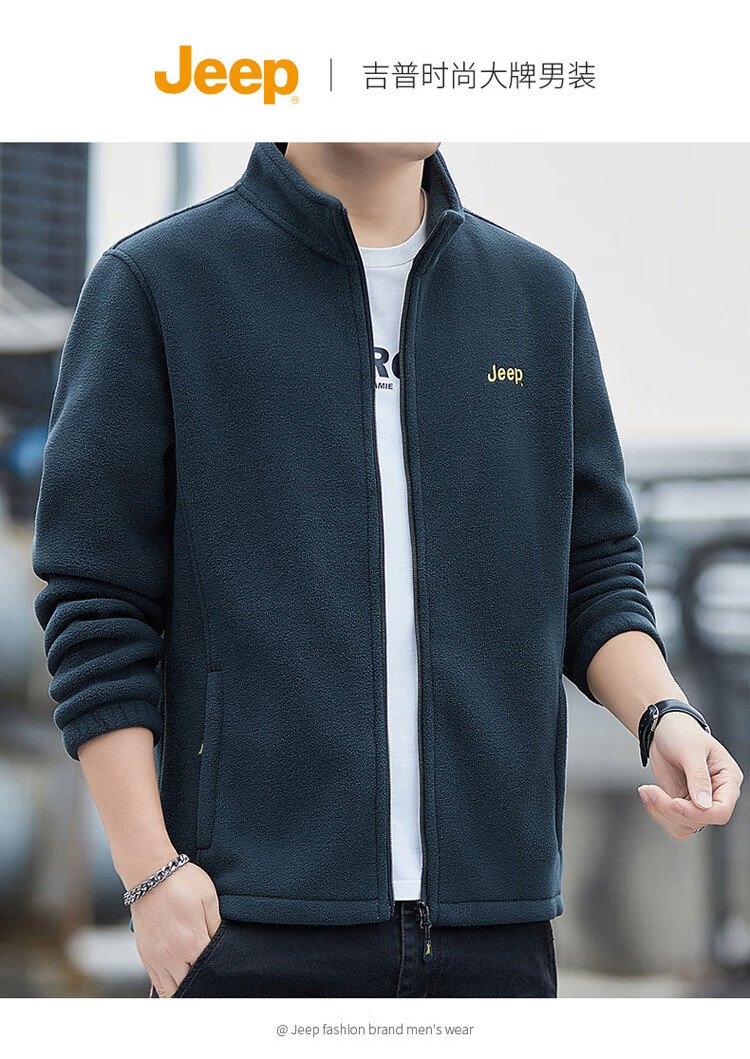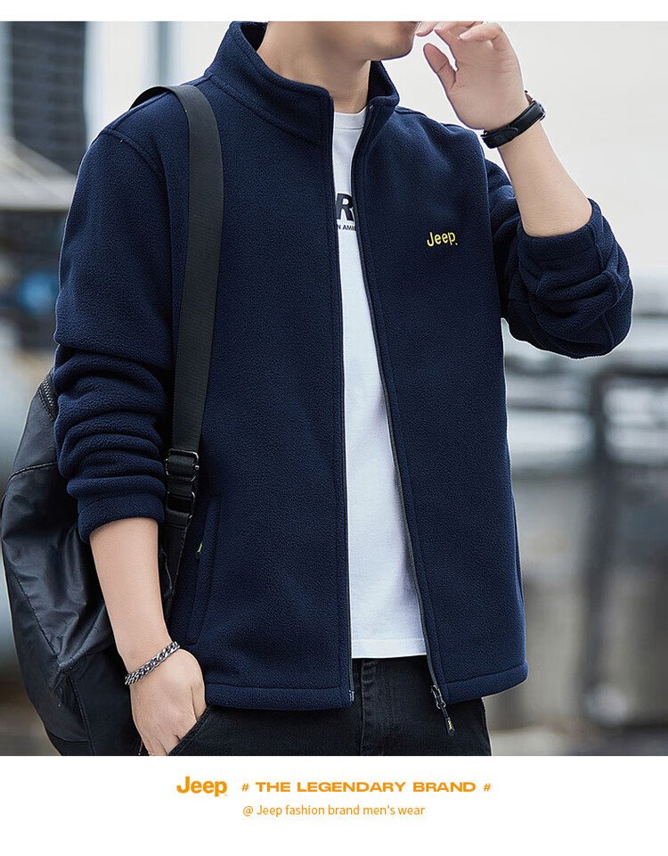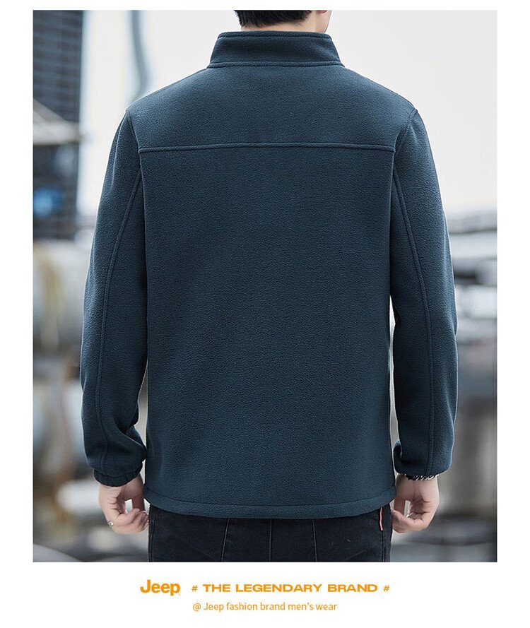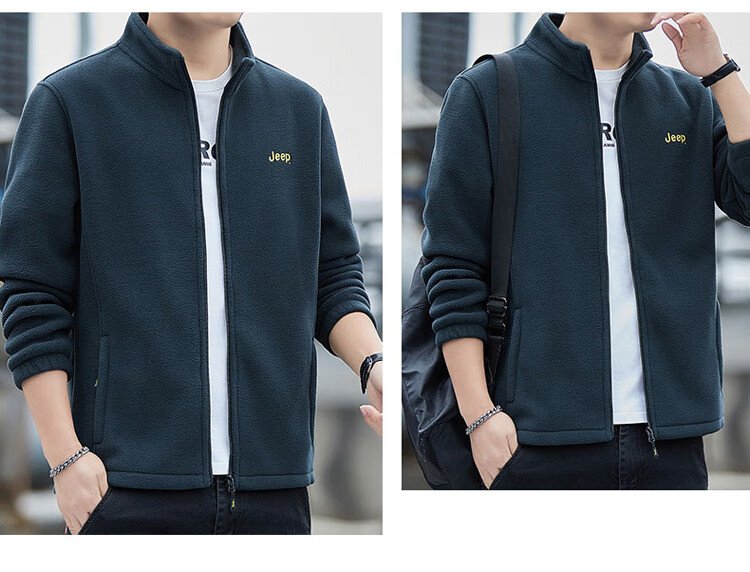 JEEP Sweater Men's Autumn and Winter Polar Fleece Thick Warm Cardigan Jacket Men's Loose Stand Collar Men's Gray Green XL