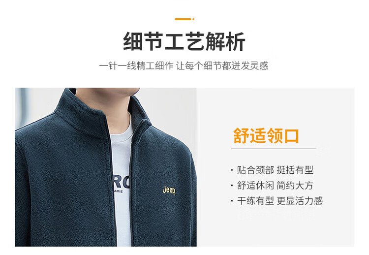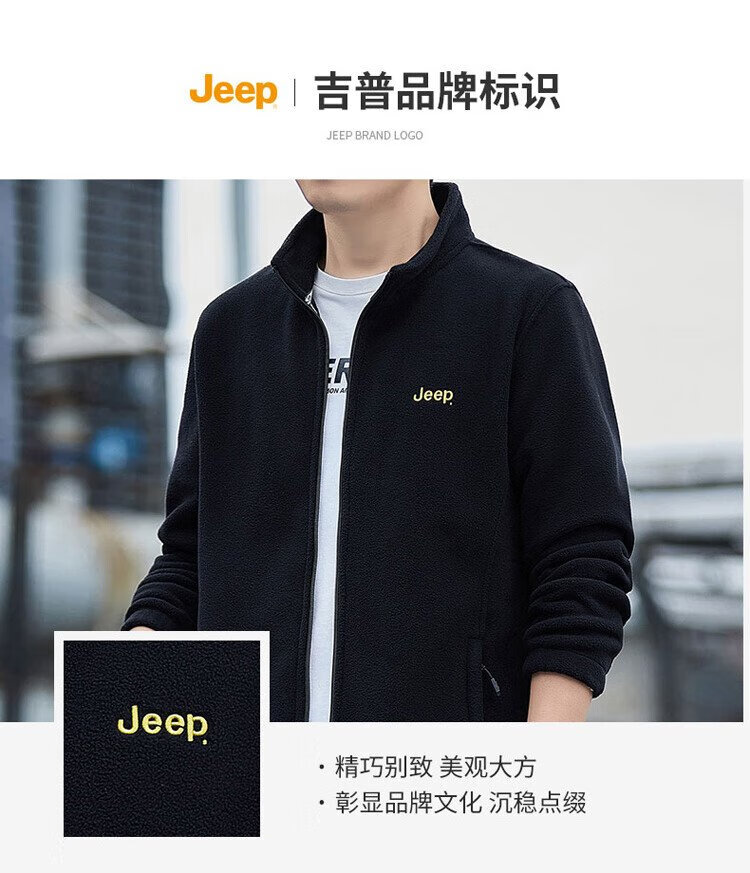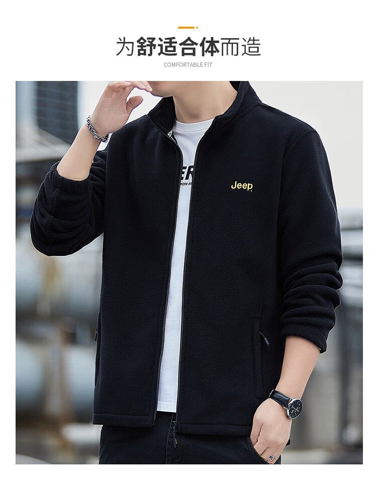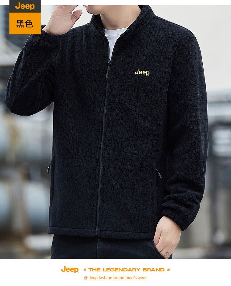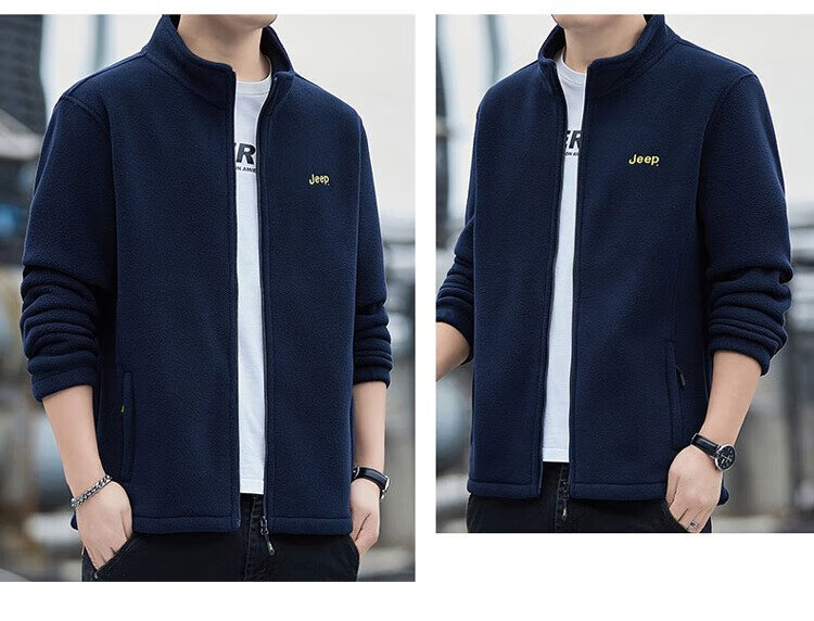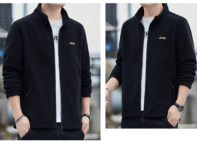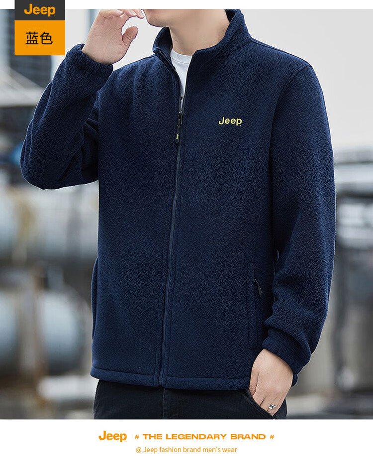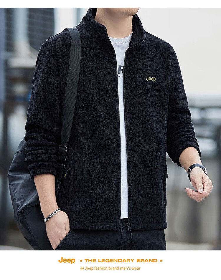 JEEP Sweater Men's Autumn and Winter Polar Fleece Thick Warm Cardigan Jacket Men's Loose Stand Collar Men's Gray Green XL