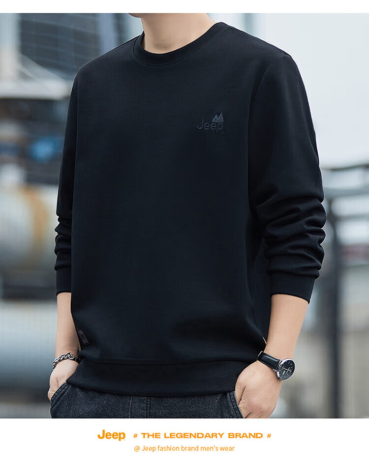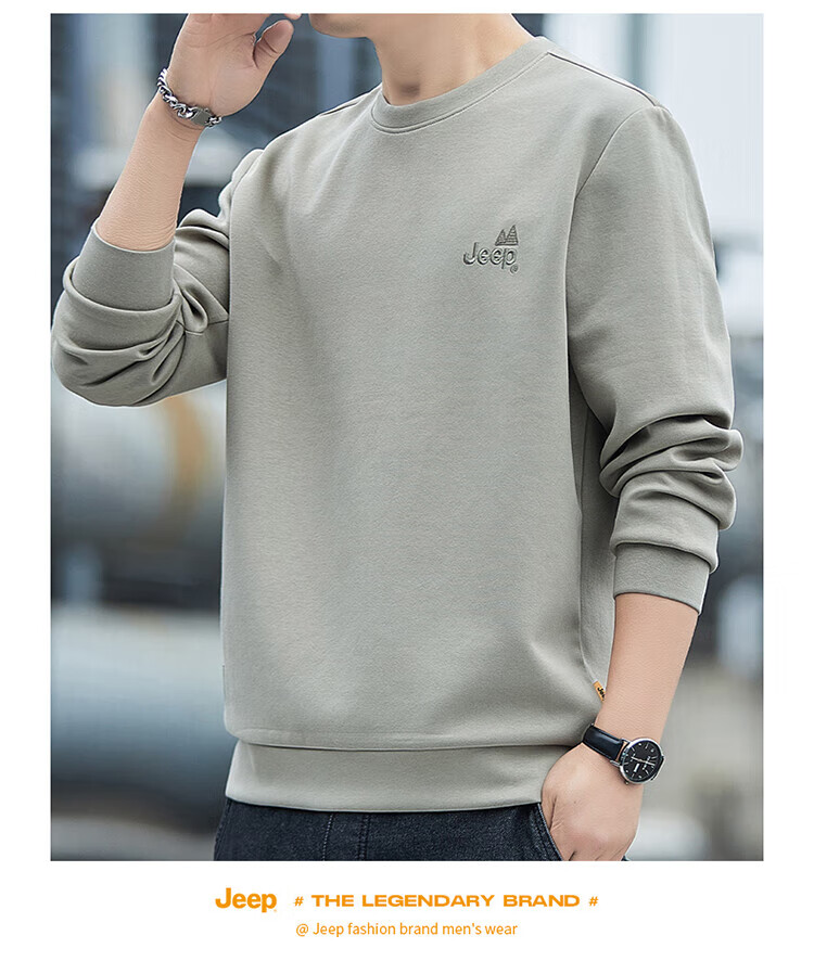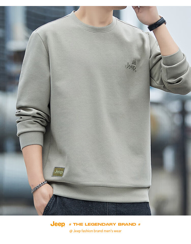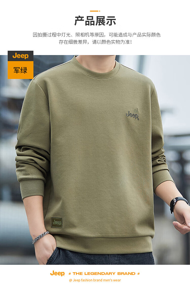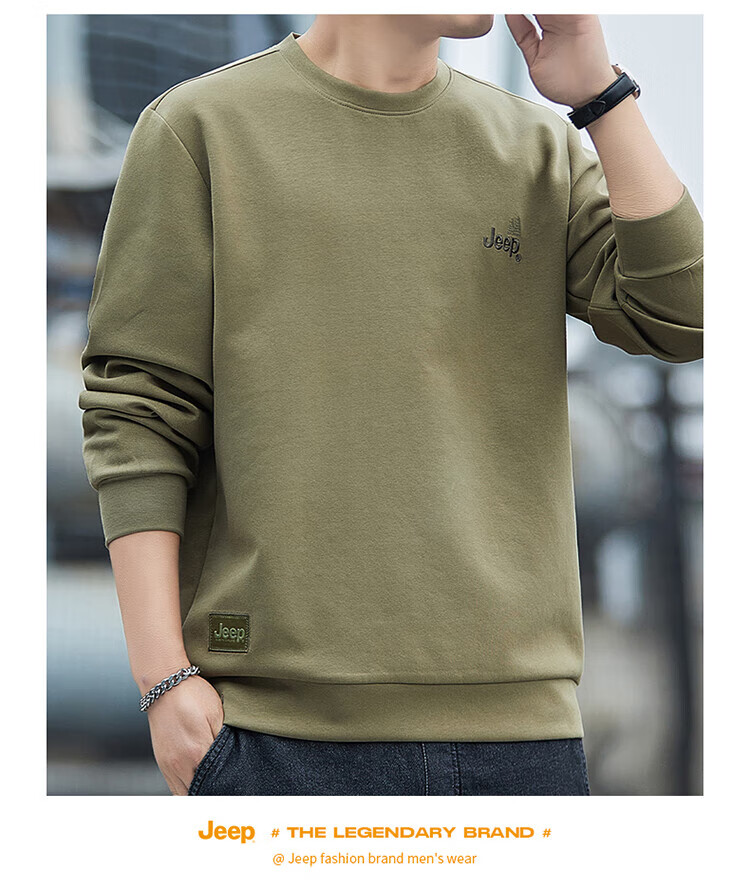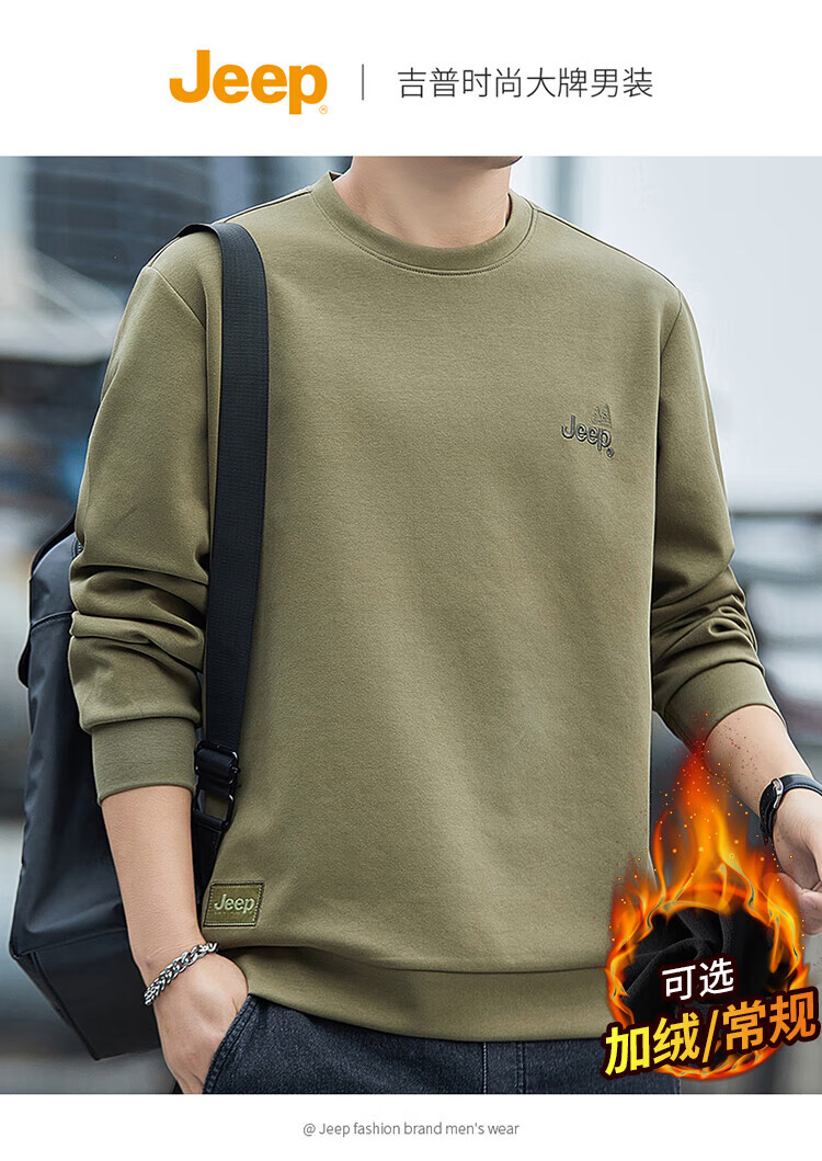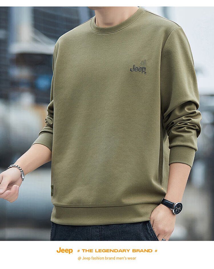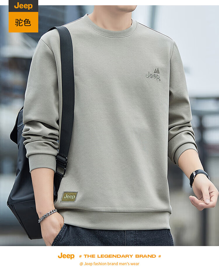 Jeep (JEEP) sweatshirt men's autumn and winter round neck long-sleeved T-shirt men's loose casual clothes men's camel XL