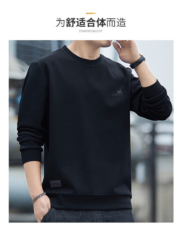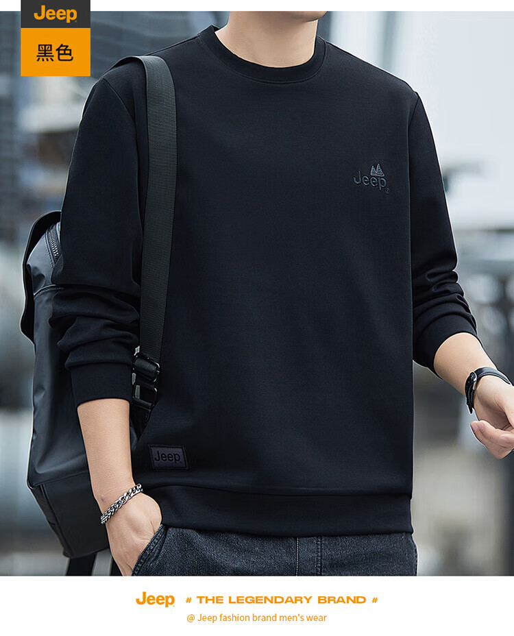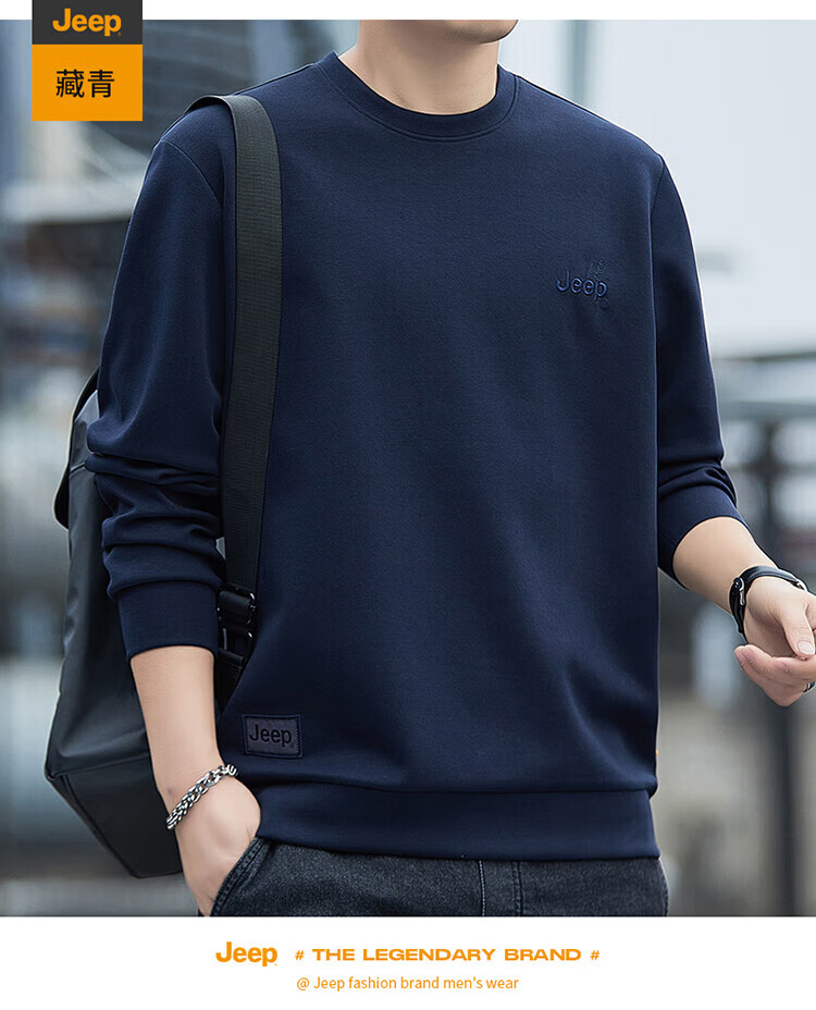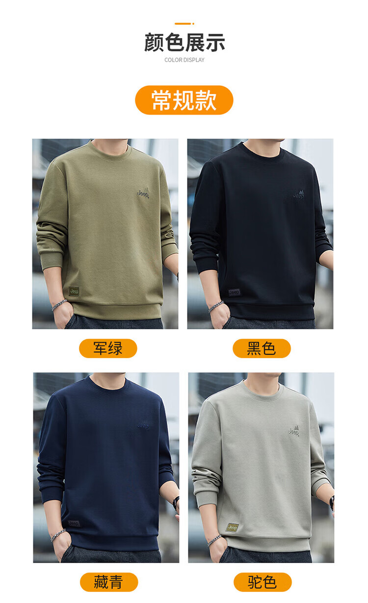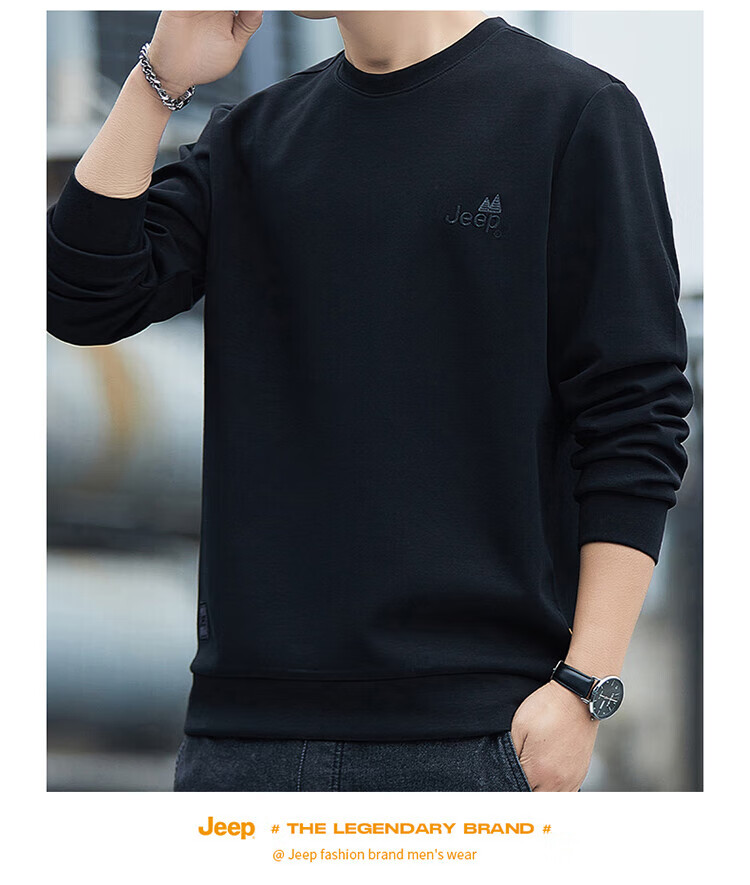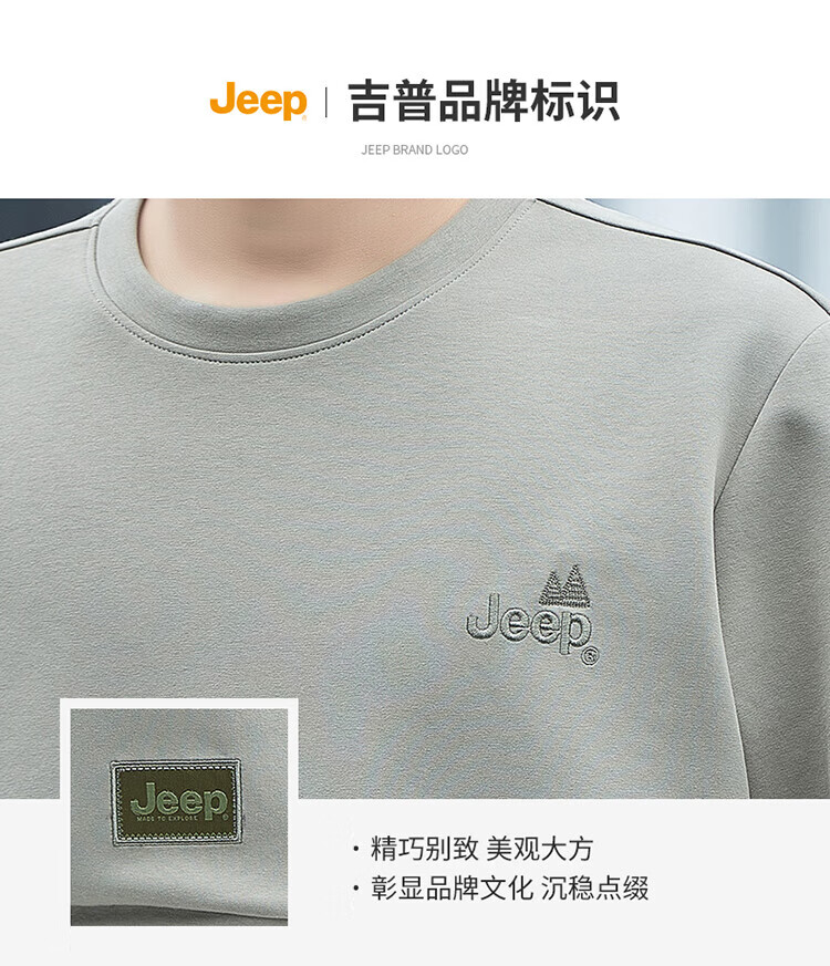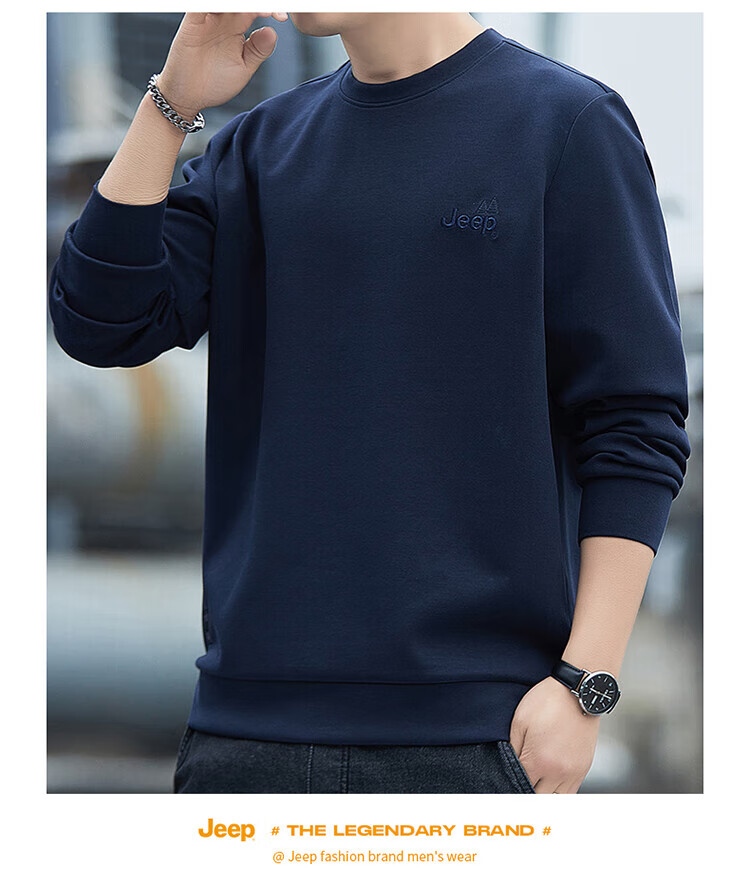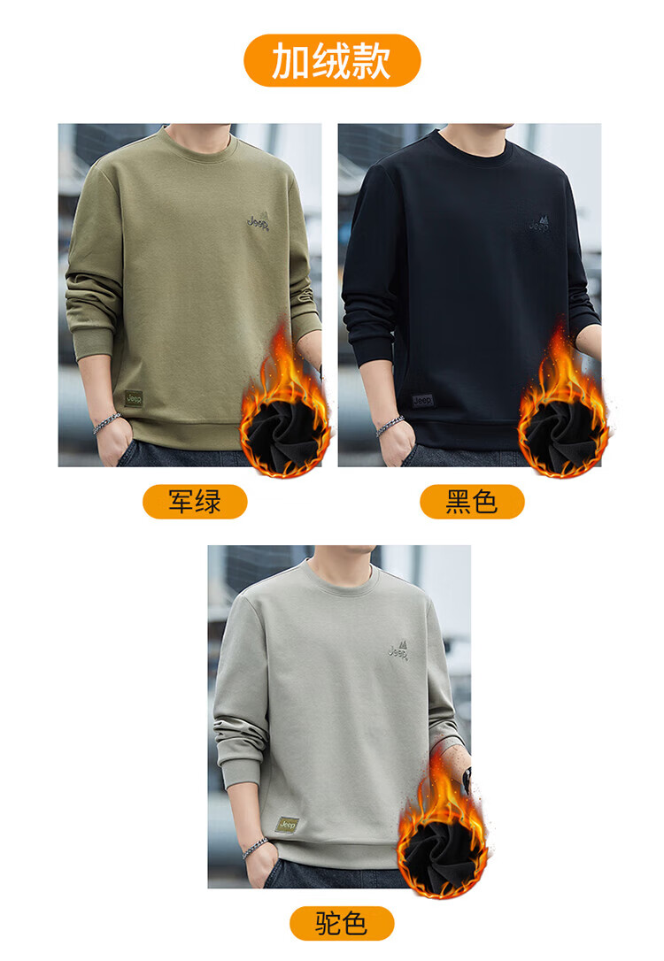 Jeep (JEEP) sweatshirt men's autumn and winter round neck long-sleeved T-shirt men's loose casual clothes men's camel XL