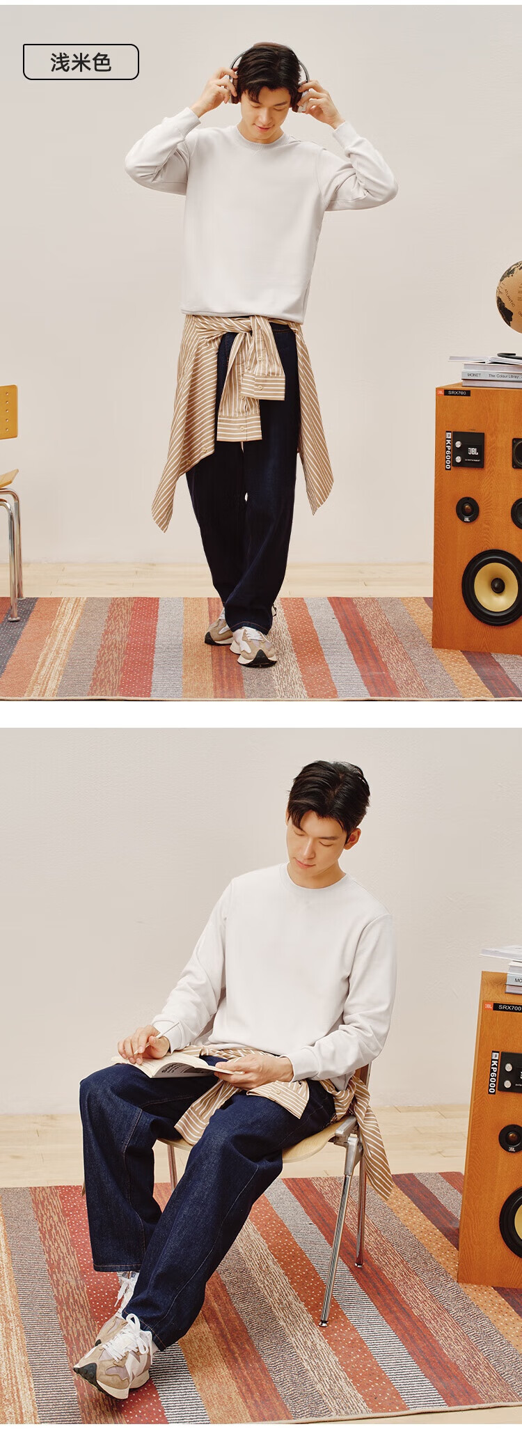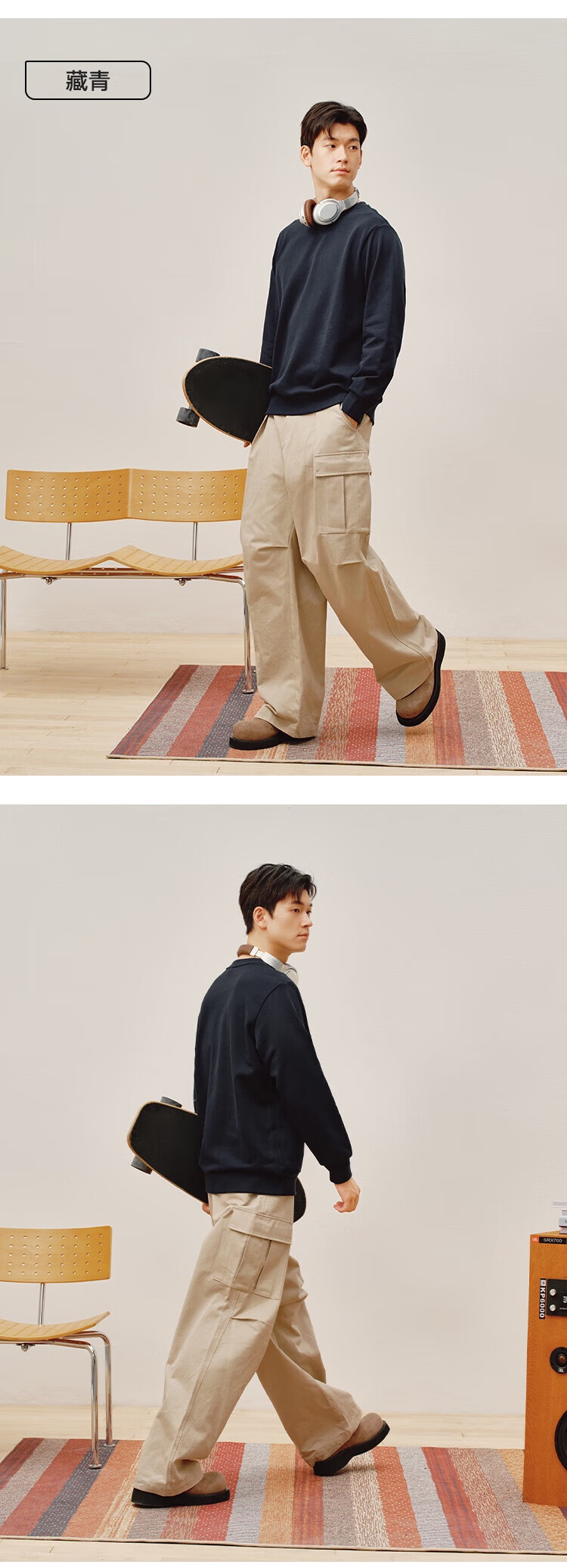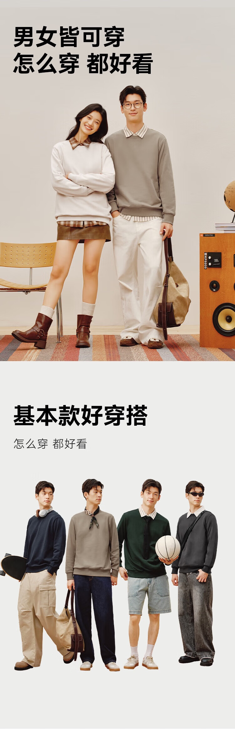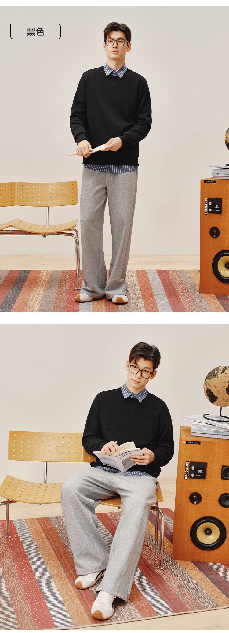 Made in Tokyo 100% long-staple cotton sweatshirt men's autumn coat men's clothing long-sleeved t-shirt for men and women black M