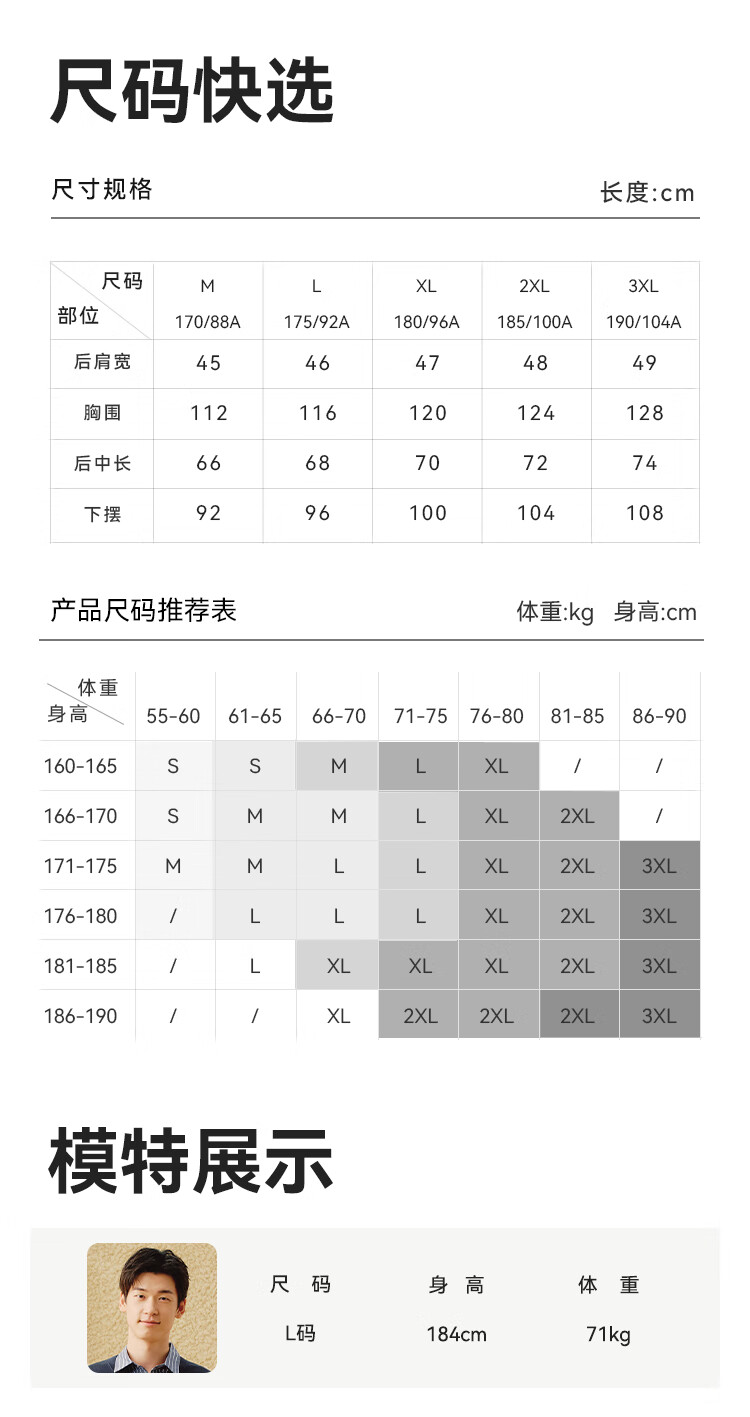 China (cm) 160-165/84-86 165-170 / 88-90 167-172 / 92-96 168-173 / 98-102 170-176 / 106-110