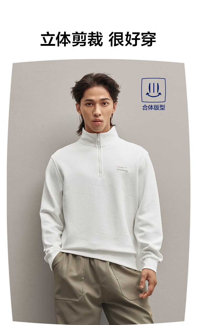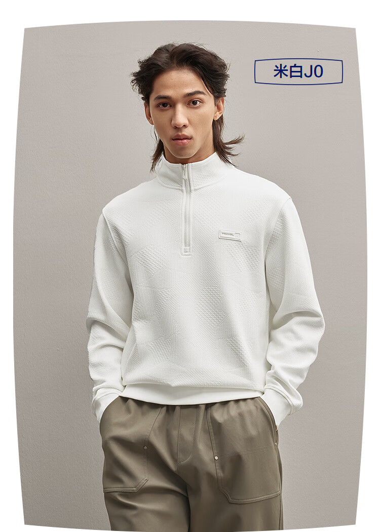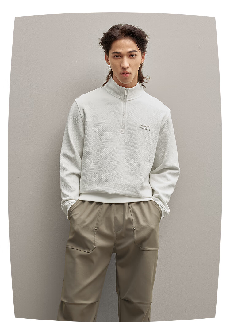 HLA Hai Lan House sweatshirt men Zeng Shunxi same style autumn 25 irregular texture texture stand collar long sleeve men