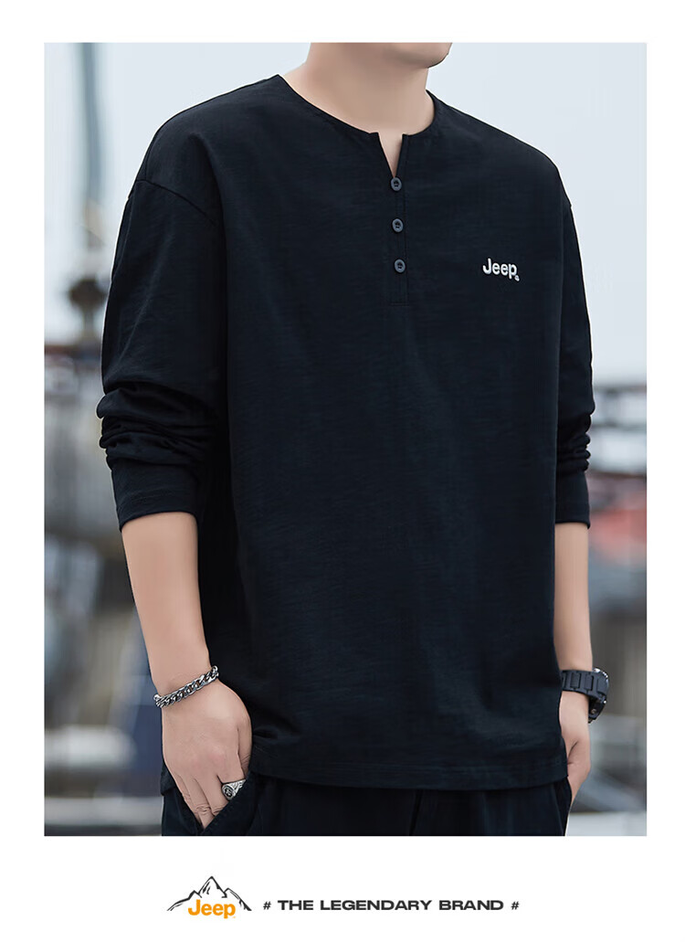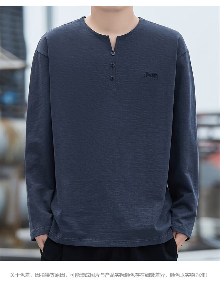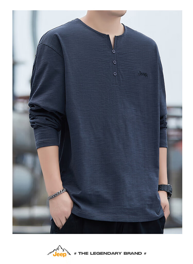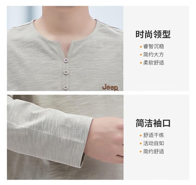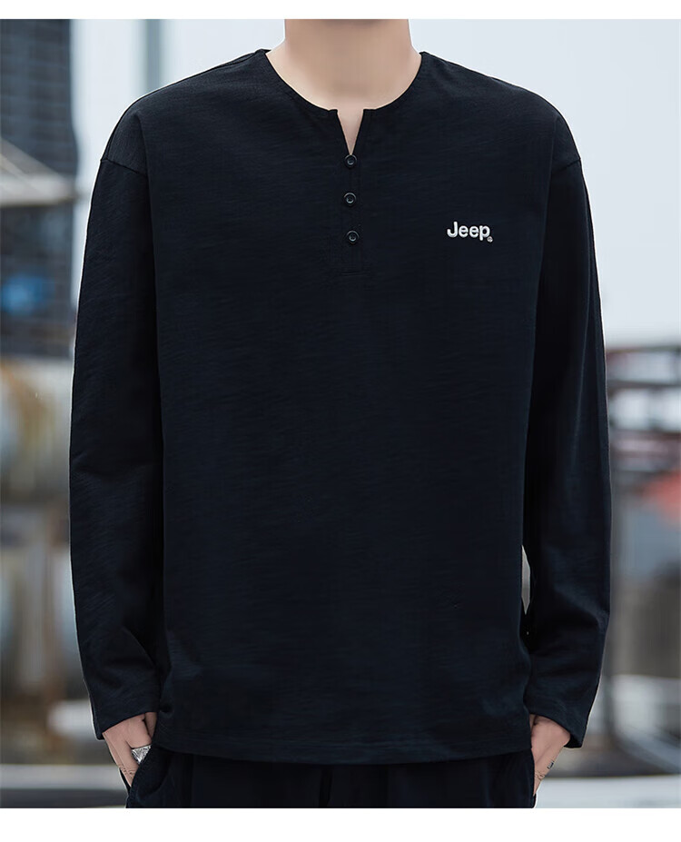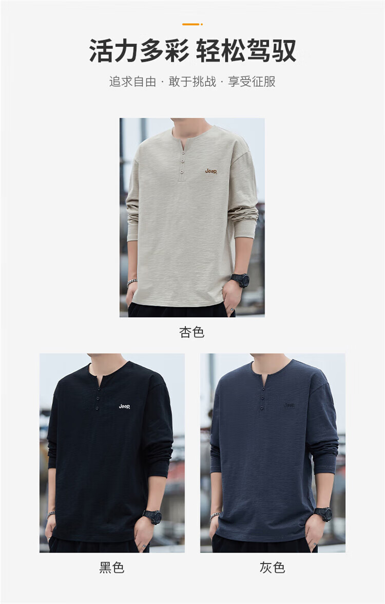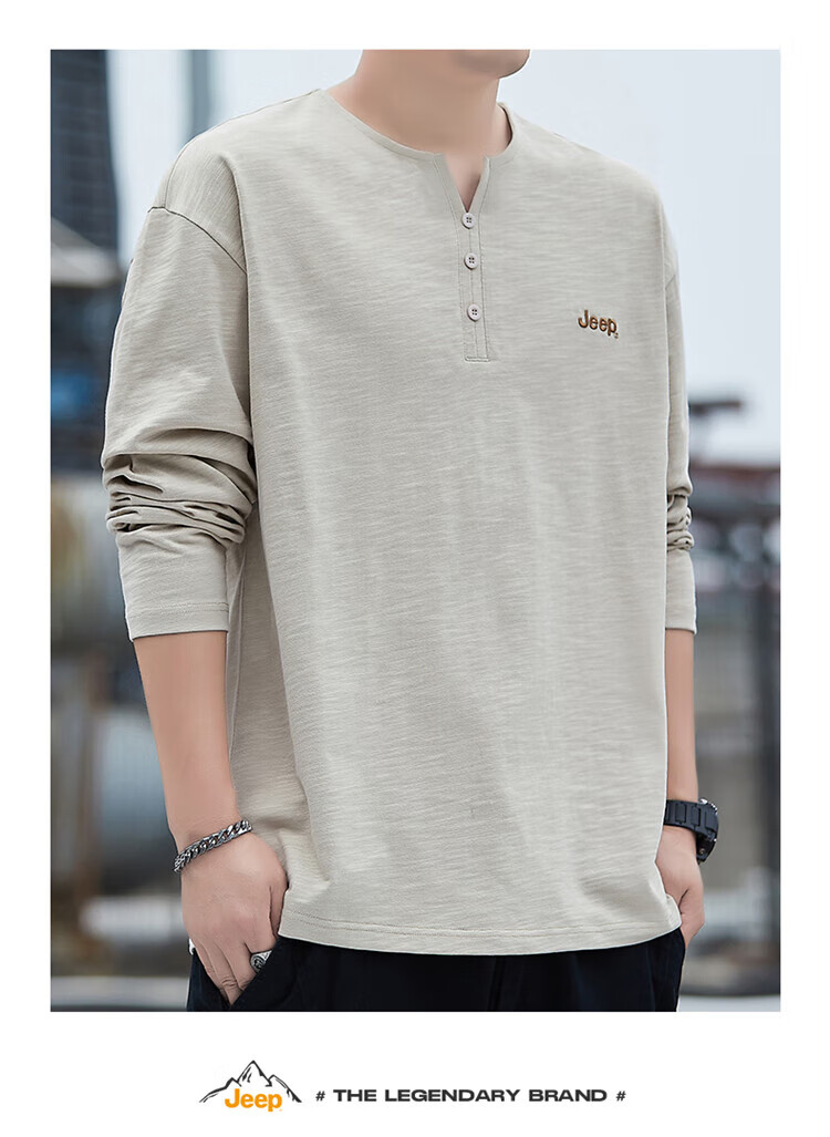 Jeep (JEEP) long-sleeved T-shirt men's autumn and winter solid color casual loose bottoming shirt trendy tops men's apricot XL