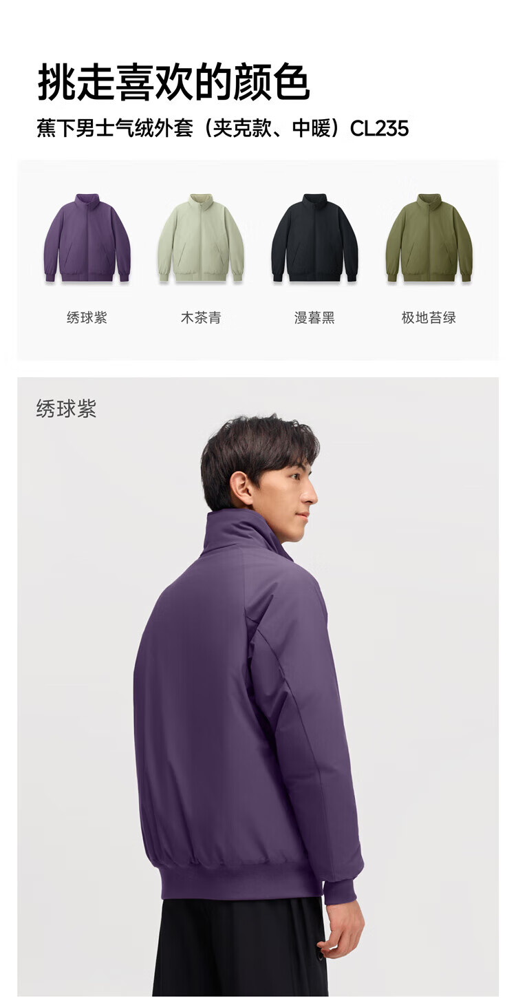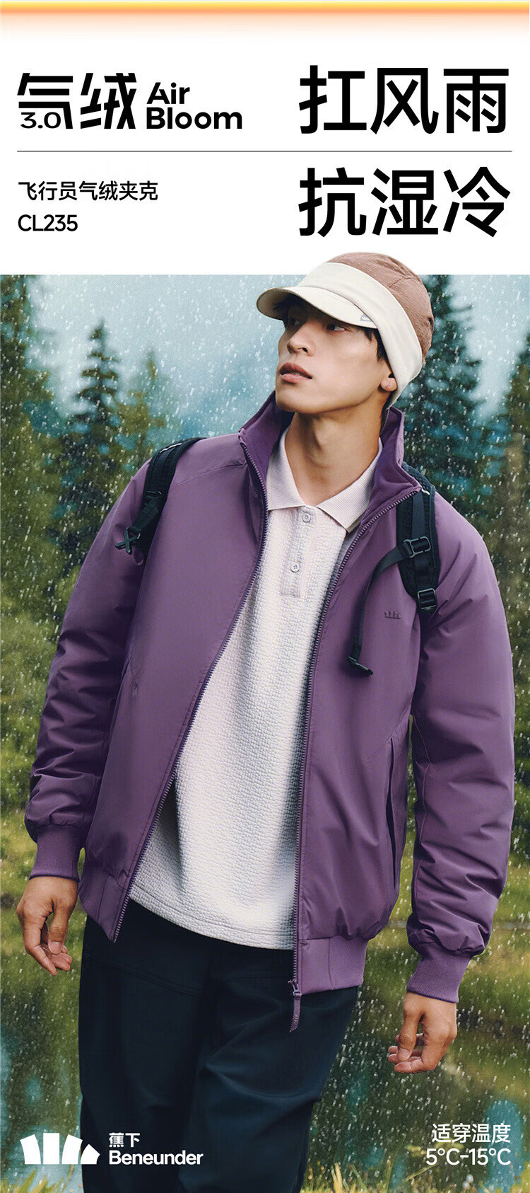 Beneunder jacket men's stand collar jacket cotton jacket air fleece jacket high elastic men's autumn clothing CL235 wood tea green L
