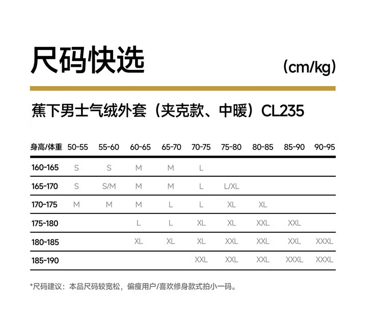 China (cm) 160-165/84-86 165-170 / 88-90 167-172 / 92-96 168-173 / 98-102 170-176 / 106-110