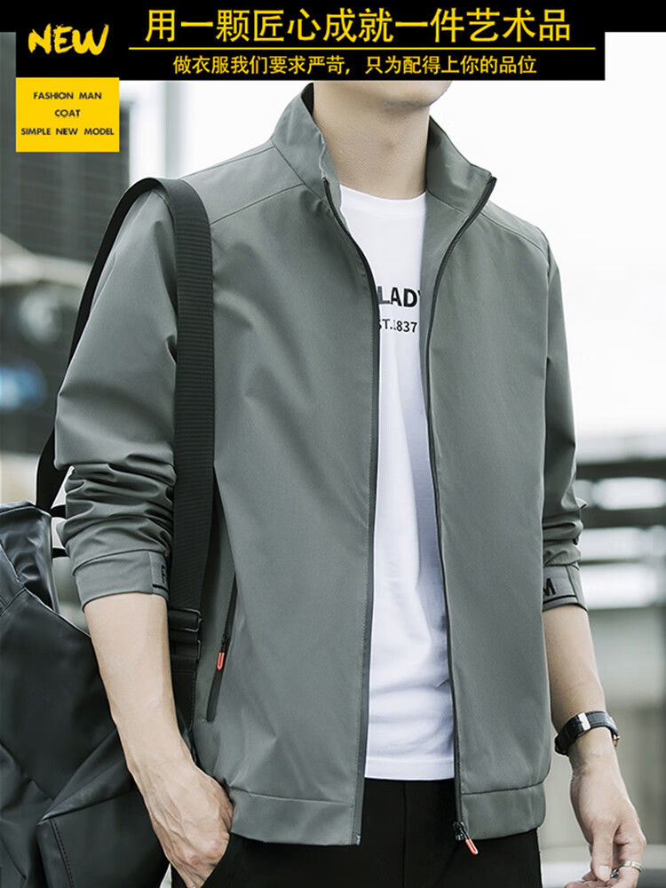 Woodpecker Jacket Men's Jacket Spring and Autumn 2025 Trendy Fashion Casual Versatile Men's Fashion Brand Outerwear J6618 Bean Gray 3XL