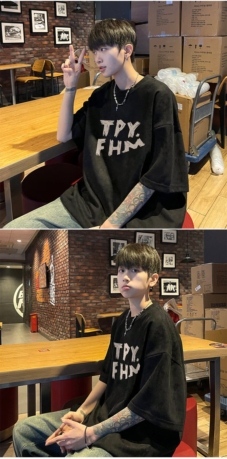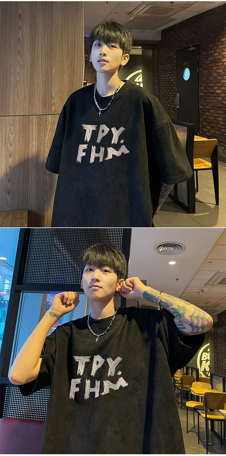 Legend of the Western Regions pure cotton short-sleeved T-shirt men's summer trendy brand versatile casual heavyweight five-quarter sleeve youth loose half-sleeved T-shirt black XL (120Jin Jin equals 0.5kg -140Jin Jin equals 0.5kg, priority delivery)
