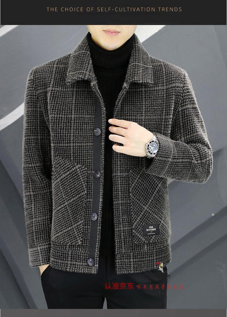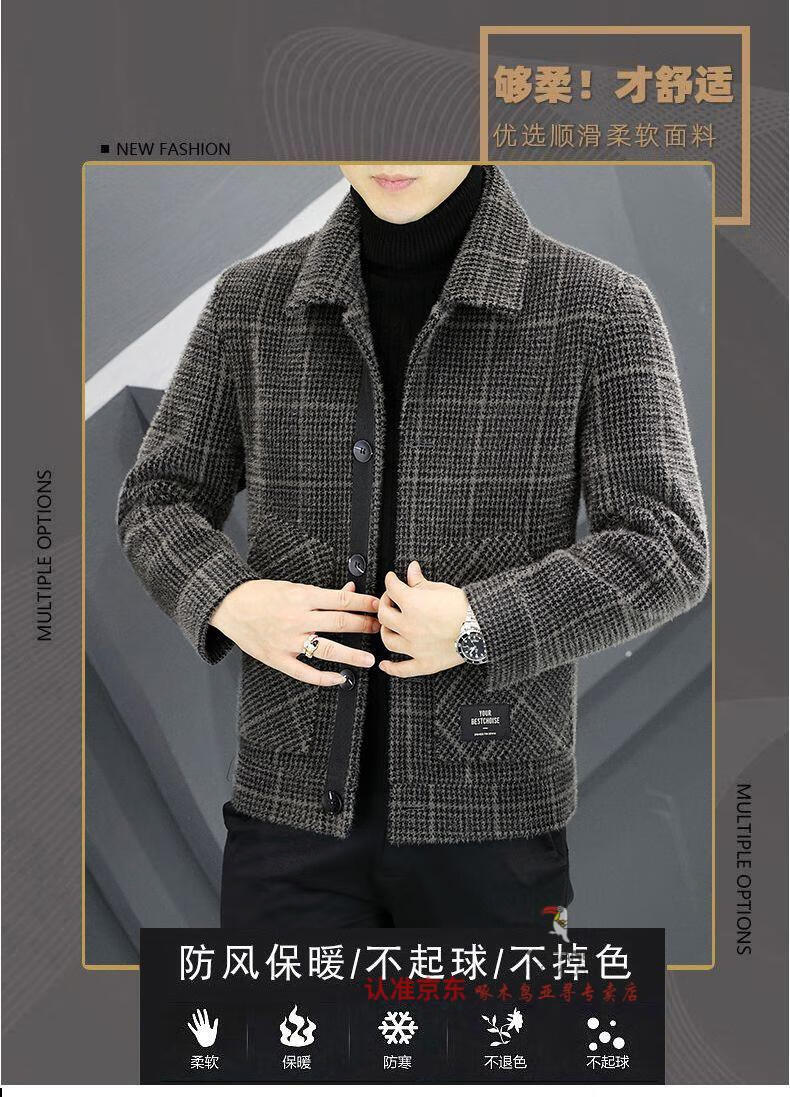 Woodpecker (TUCANO) Woolen Jacket Men's 2025 New Lapel Casual Jacket Autumn and Winter Business Woolen Tops Plus Velvet Thickened Trendy Khaki Thickened Velvet 2XL Recommended 130-145Jin Jin equals 0.5 kg