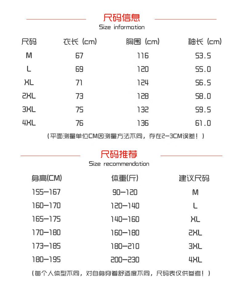 China (cm) 165 / 88-90 170 / 96-98 175 / 108-110 180 / 118-122 185 / 126-130