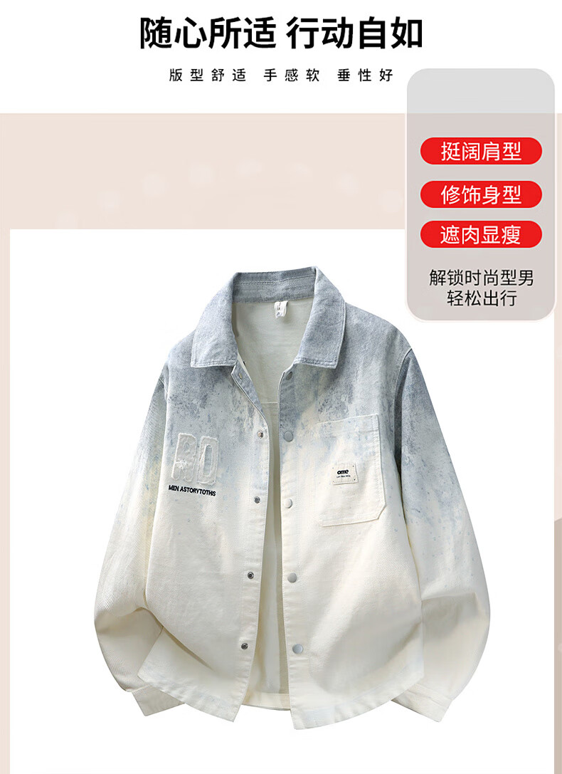 NASADKGM official denim jacket men's spring, autumn and winter new gradient lapel plus velvet jacket handsome high-end shirt pink regular XL (recommended 140-160Jin Jin equals 0.5 kg)
