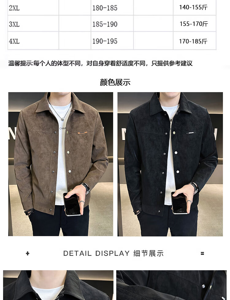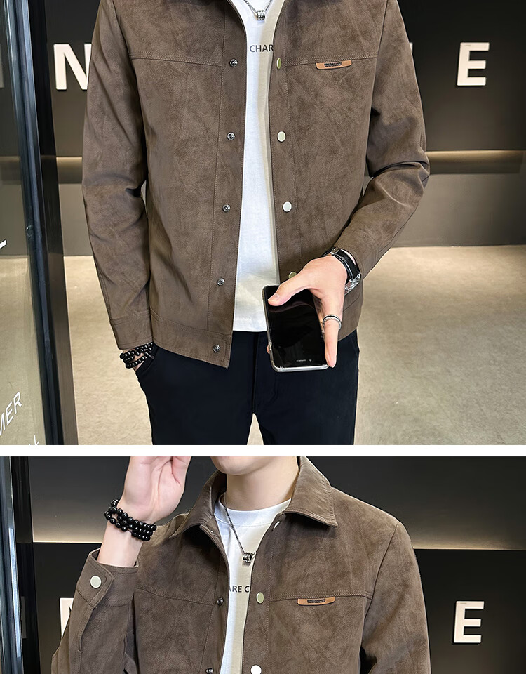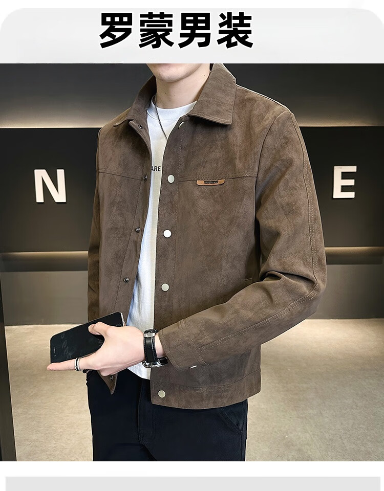 Luo Meng Autumn Jacket Men's 2025 New Style Pizhuai Fashion Brand High-Quality Lapel Spring and Autumn Clothes Fashionable Men's Jacket Brown 2XL /140-155Jin Jin is equal to 0.5 kg