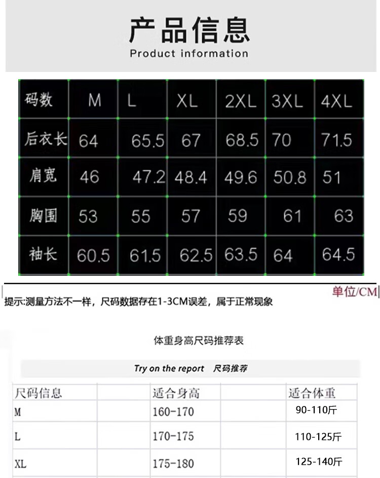 China (cm) 165 / 88-90 170 / 96-98 175 / 108-110 180 / 118-122 185 / 126-130