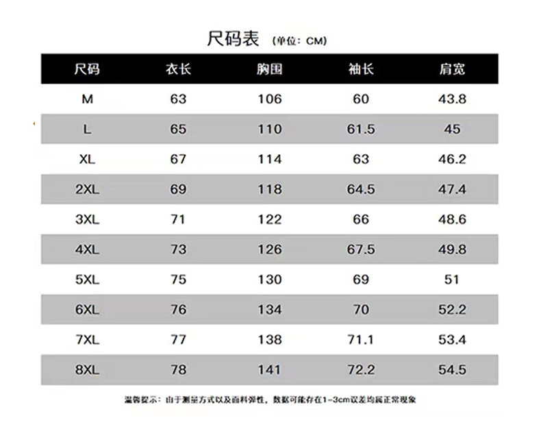 Size (cm) 42 44 46 48 50