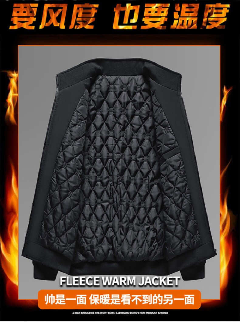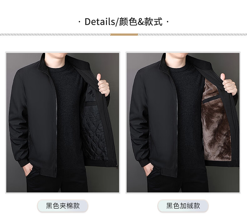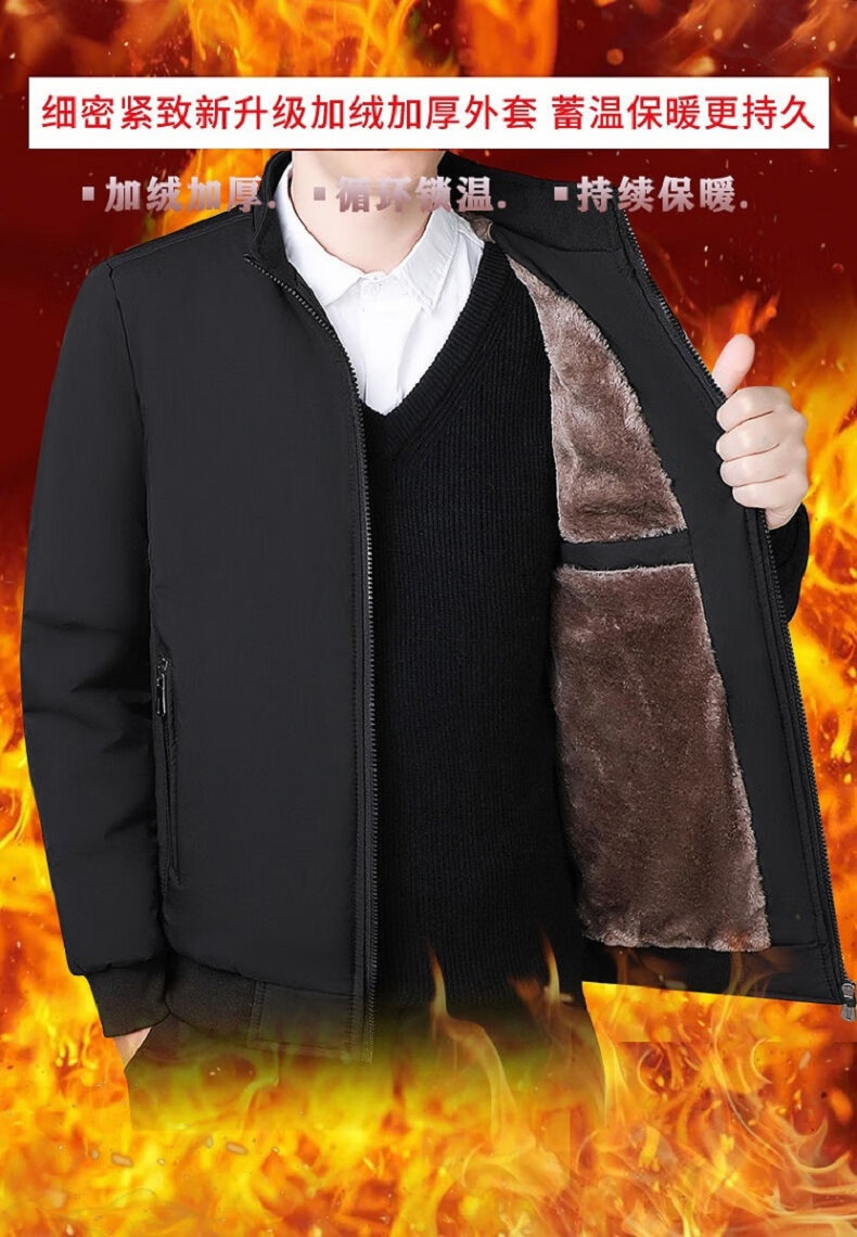 Yalu Men's Executive Jacket Cotton Coat Jacket Autumn and Winter Thickened Velvet Middle-aged and Elderly Plus Fat Large Size Cotton-padded Jacket Dad's Clothes Black Cotton XL Recommended 110-125Jin Jin is equal to 0.5 kg