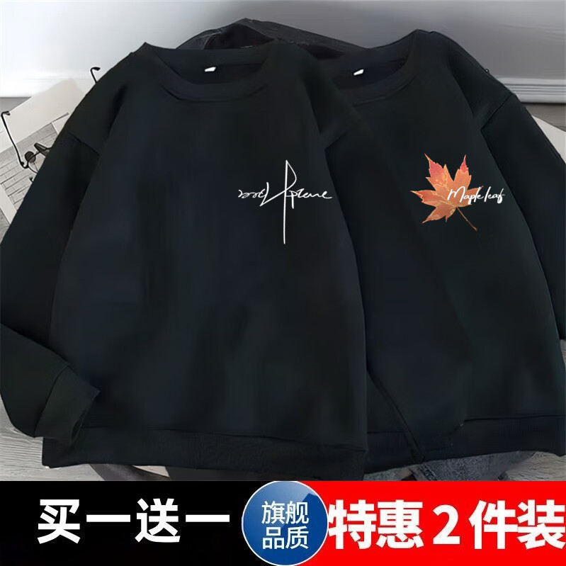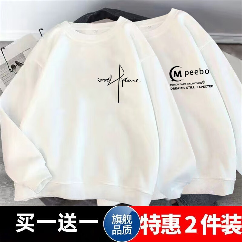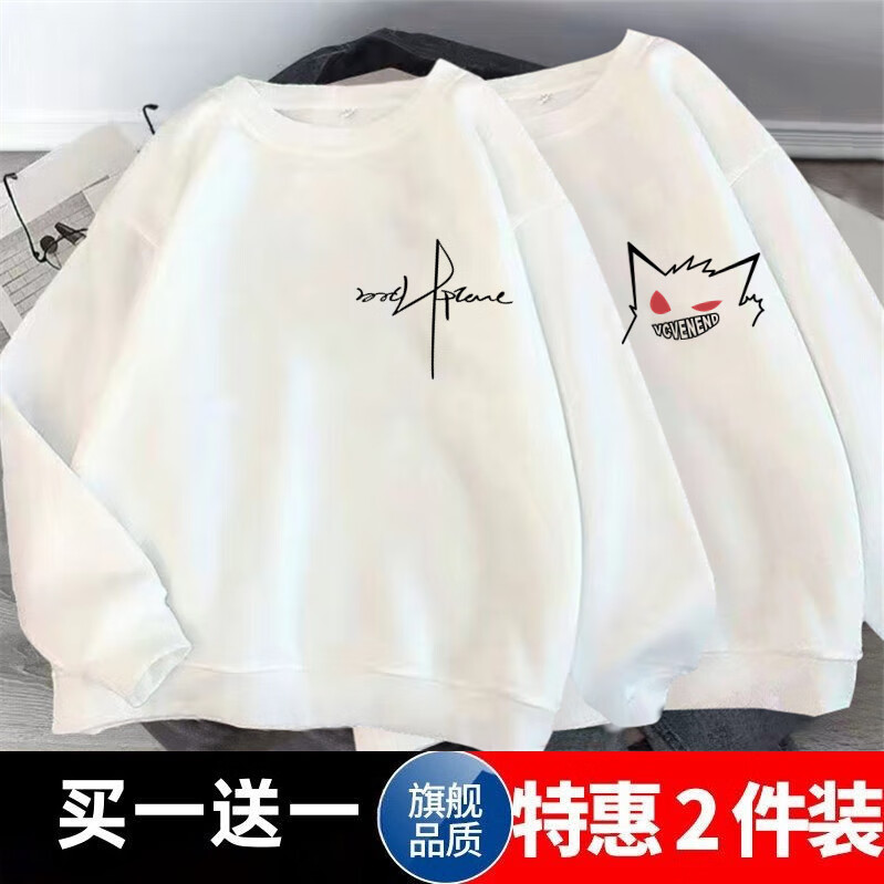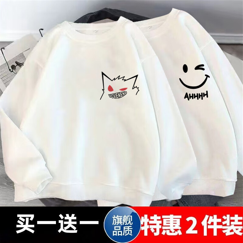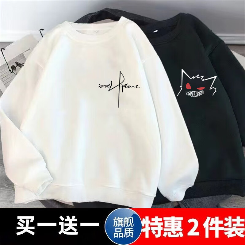 Buy one get one free autumn and winter sweatshirt for male students round neck warm pullover sweatshirt Korean style trendy versatile casual top Cursive letter white + little Gengar black Regular 2 pieces XL Recommendation 120-140Jin Jin equals 0.5kg