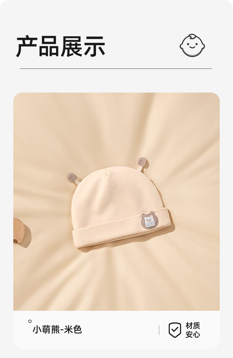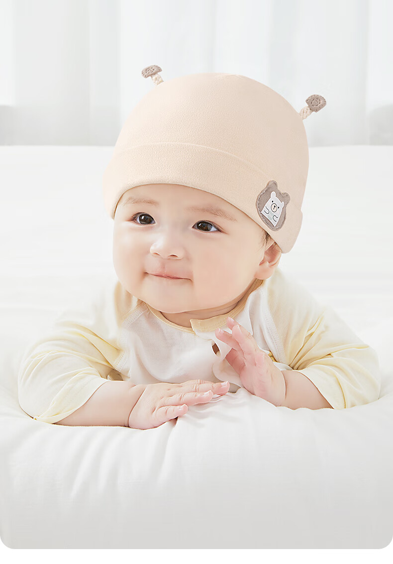Betis baby sun protection hat spring and autumn cotton fetal hat newborn baby 0-12 months children's headwear insulation Little Cute Bear - Beige Spring and Autumn 3-12 months (hat circumference 39-45cm)