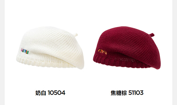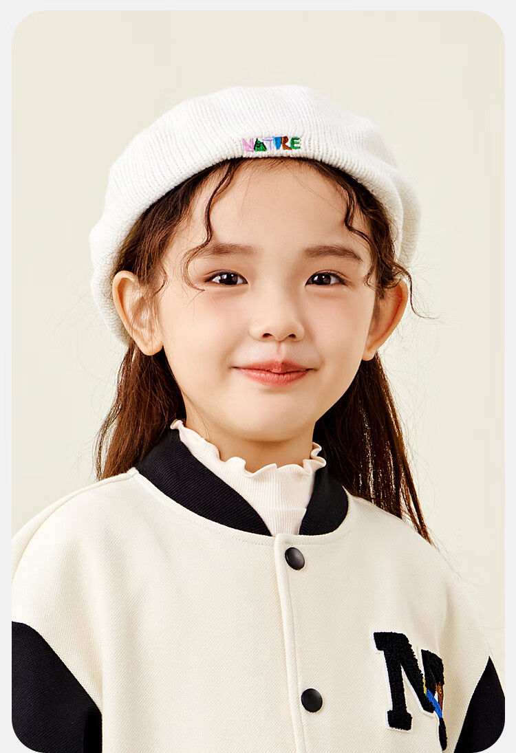 Mini Bala Autumn New Girls Embroidered Sweet Beret Baby Warm Fashionable Knitted Hat Caramel Brown 51103 110cm