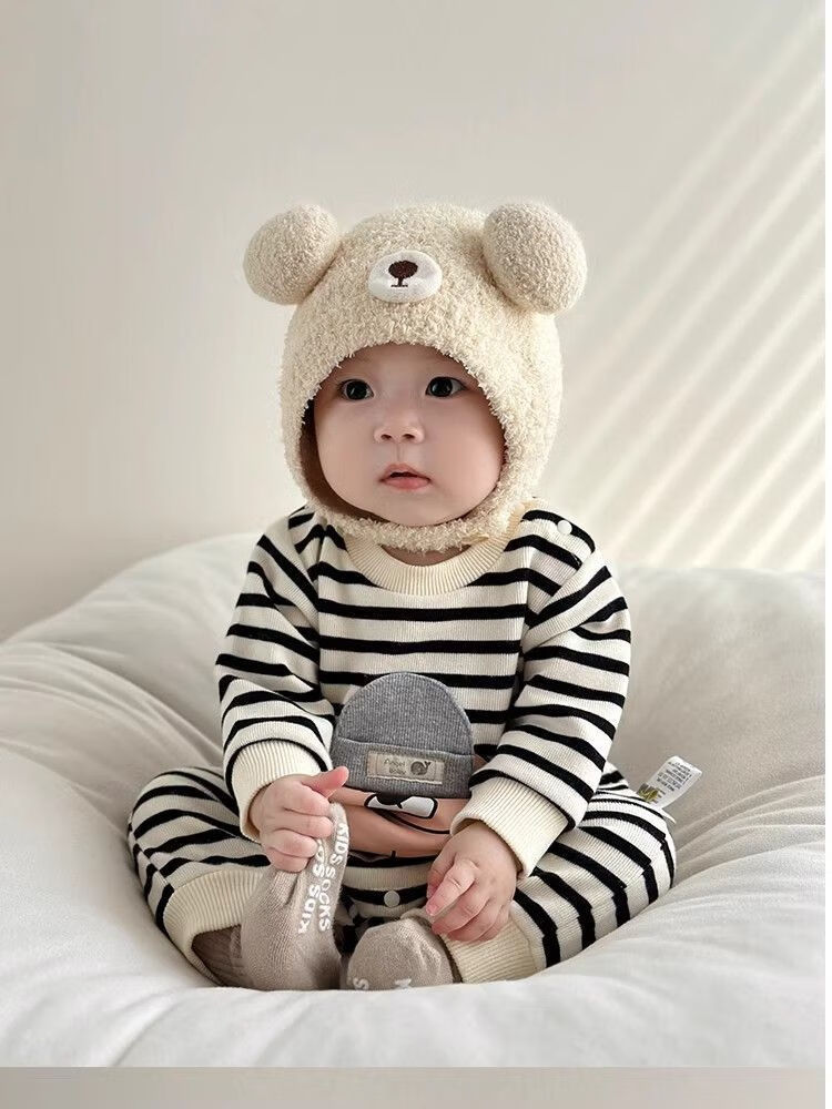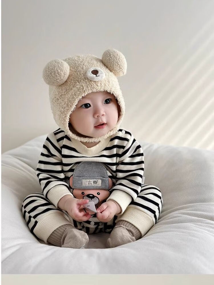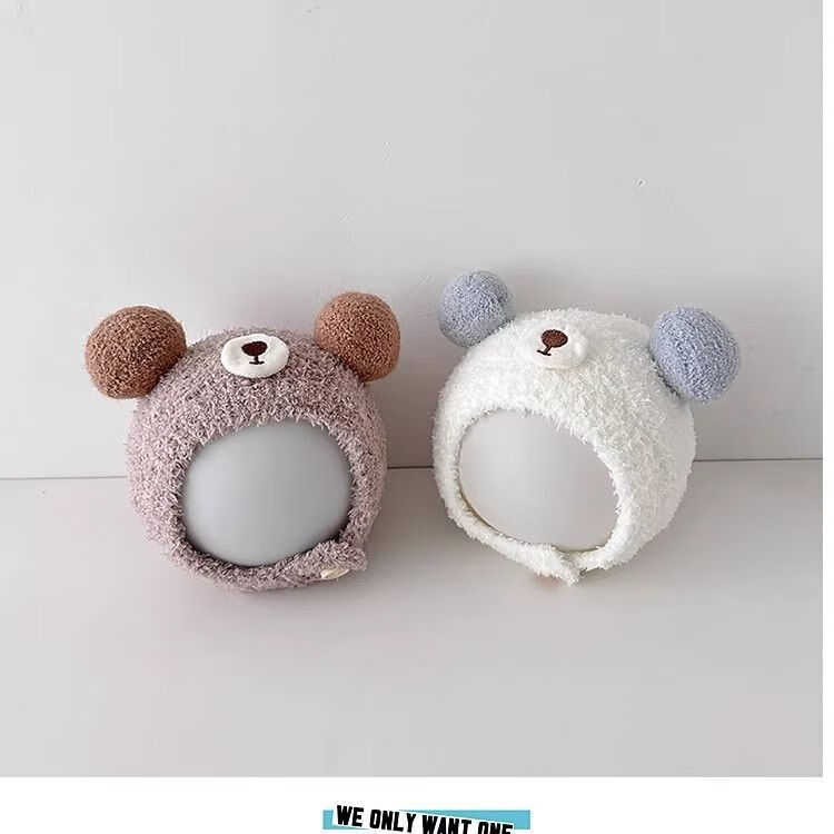 Baby Hat Autumn and Winter Cute and Super Cute Ball Infant and Toddler Pullover Ear Protector Hat for Small Months 2025 New Style Warm Skin Friendly Cotton/Breathable and Untied Protective Font and Ear Protector/Beige Suitable for Ages Within 3 Years-Infant Category A
