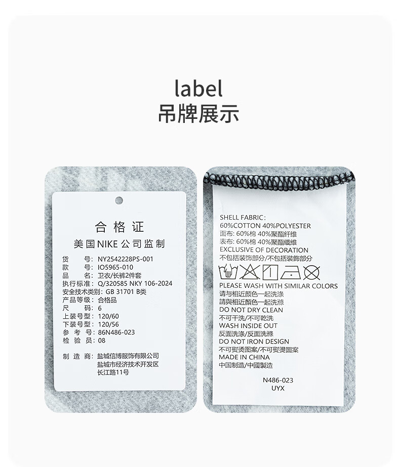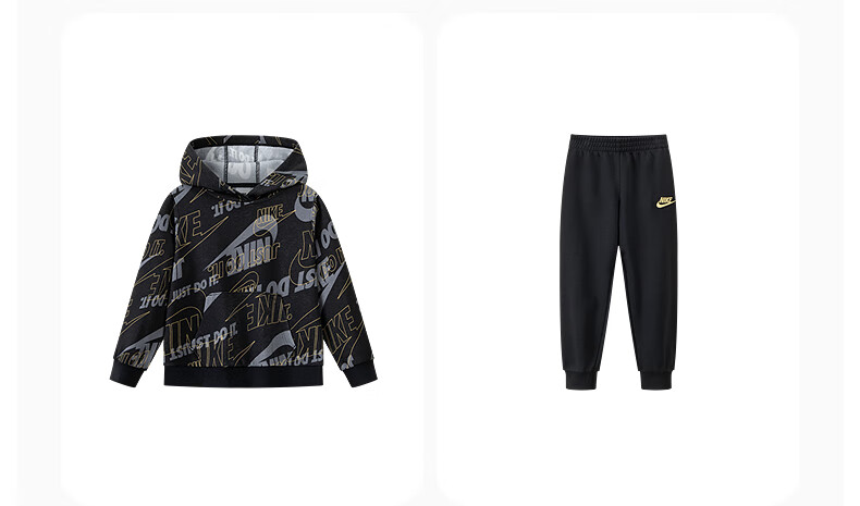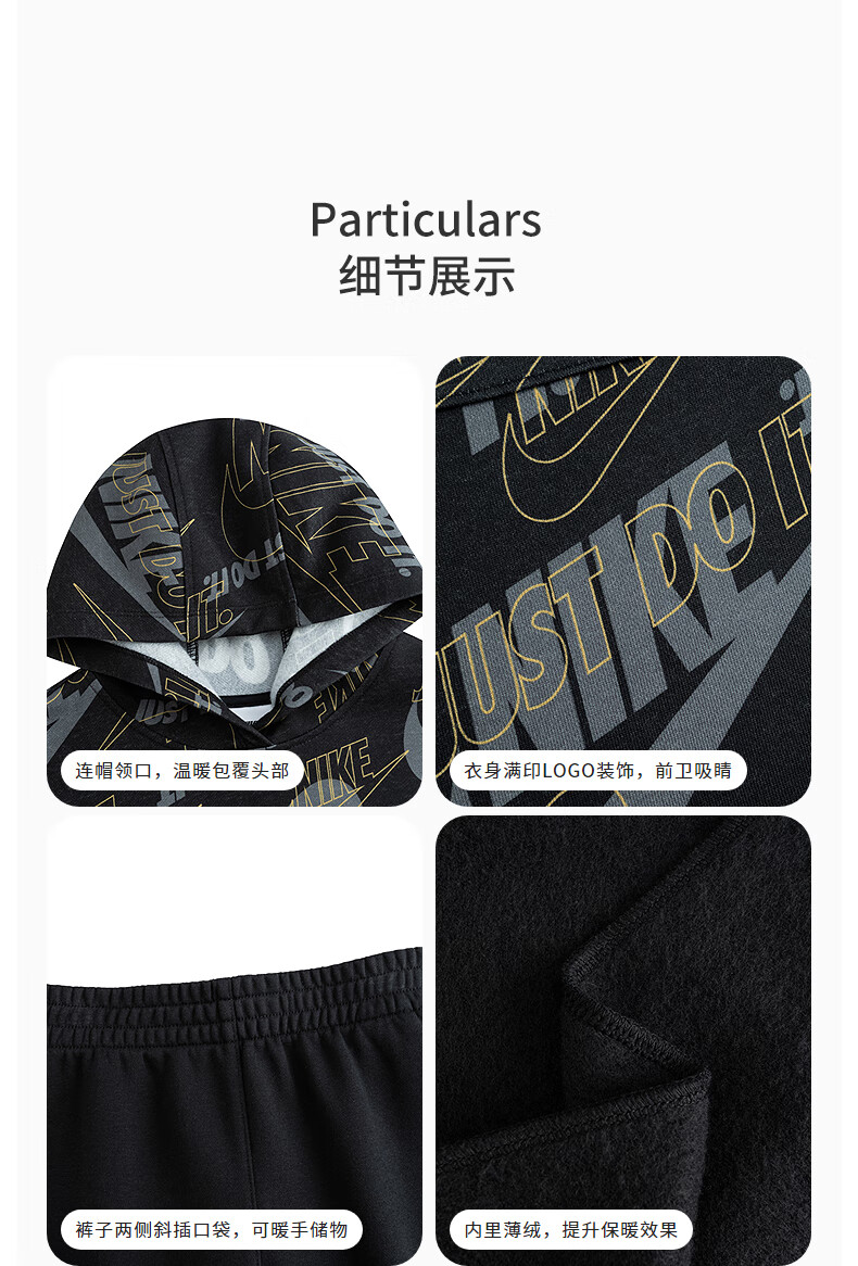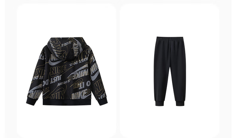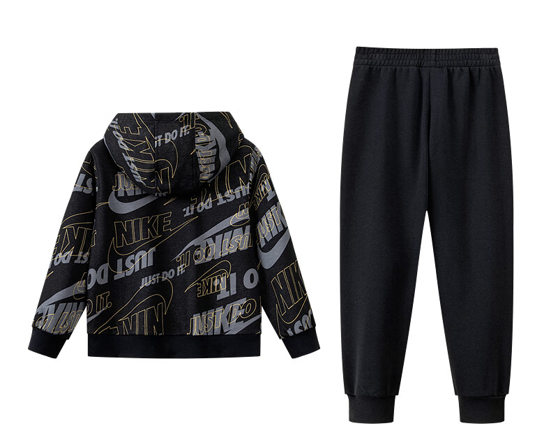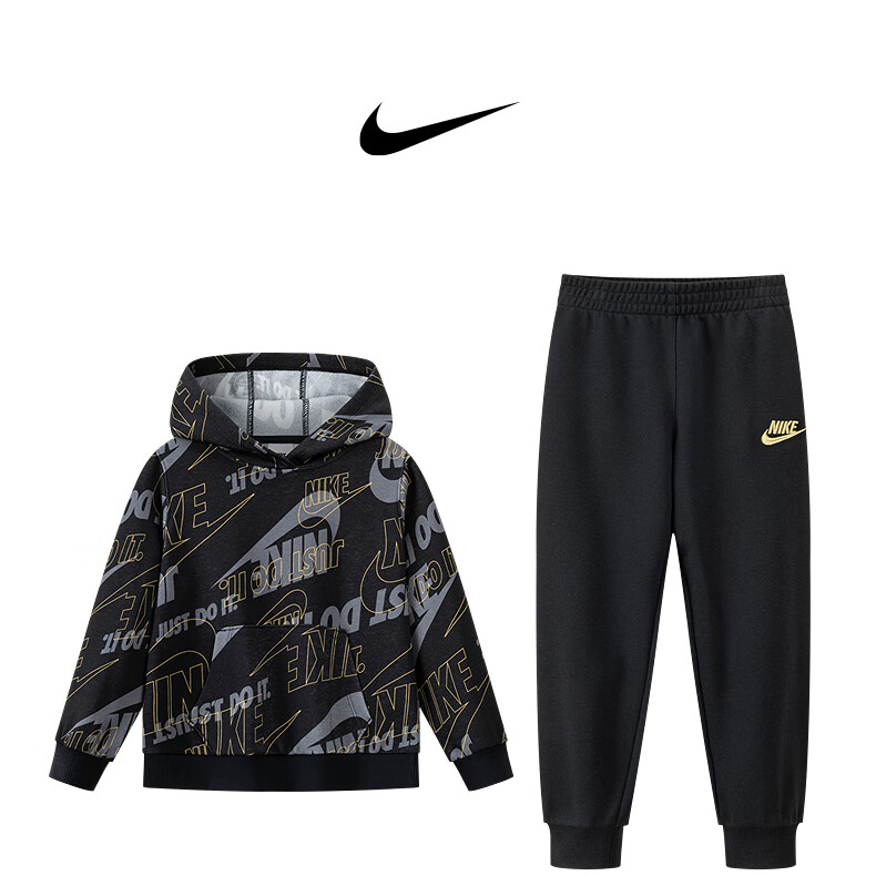 NIKE Nike all-print tops + pants thin velvet suit for boys and girls 2025 winter trendy and fashionable children's 2-piece set