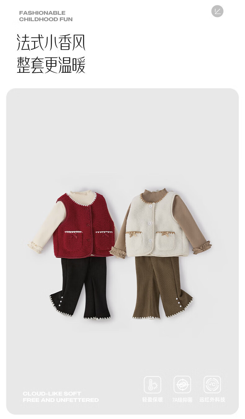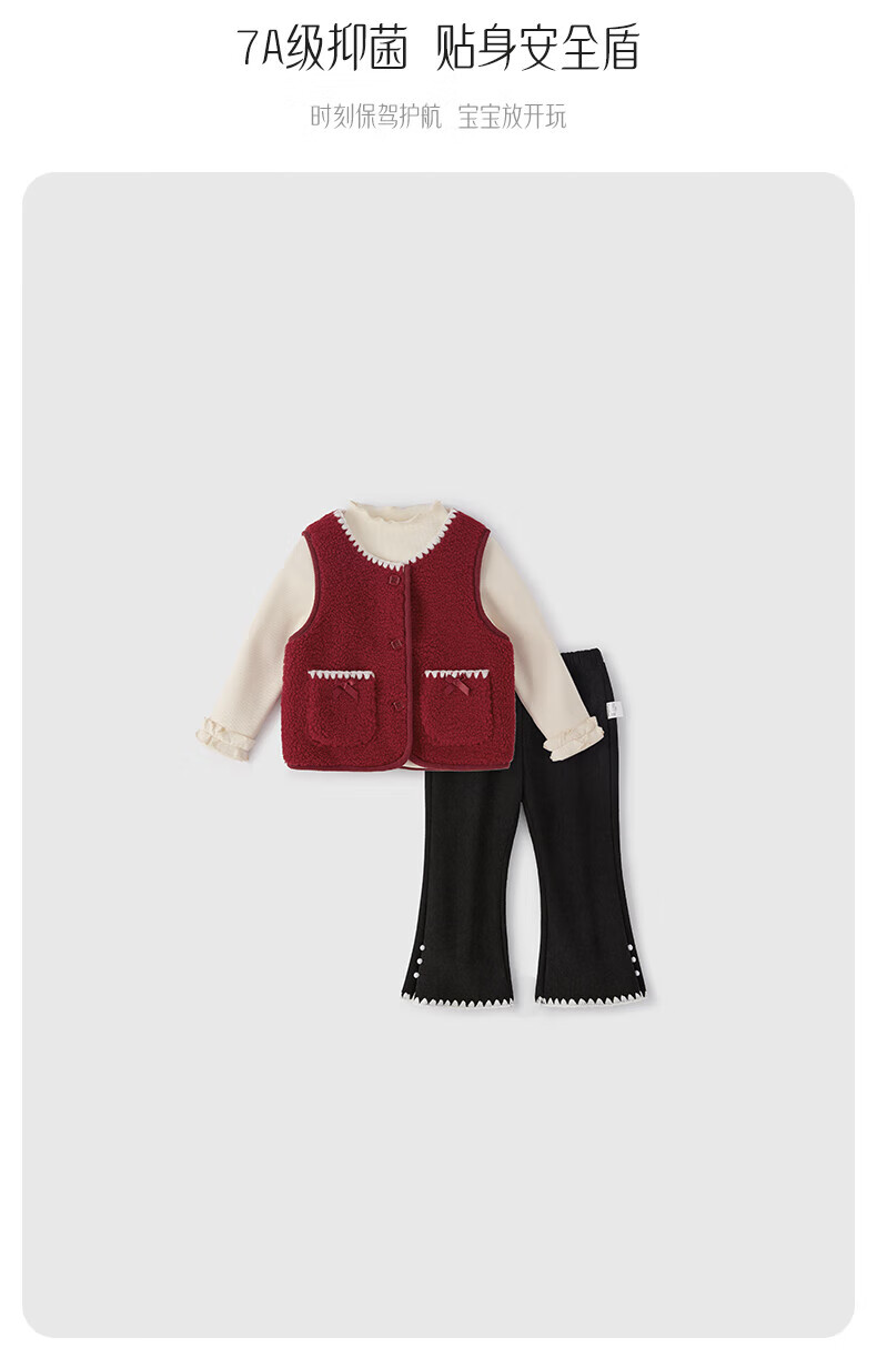 JELLYBABY Xiaoxiangfeng fashionable vest long-sleeved pants suit winter style three-piece heating set for girls and middle children