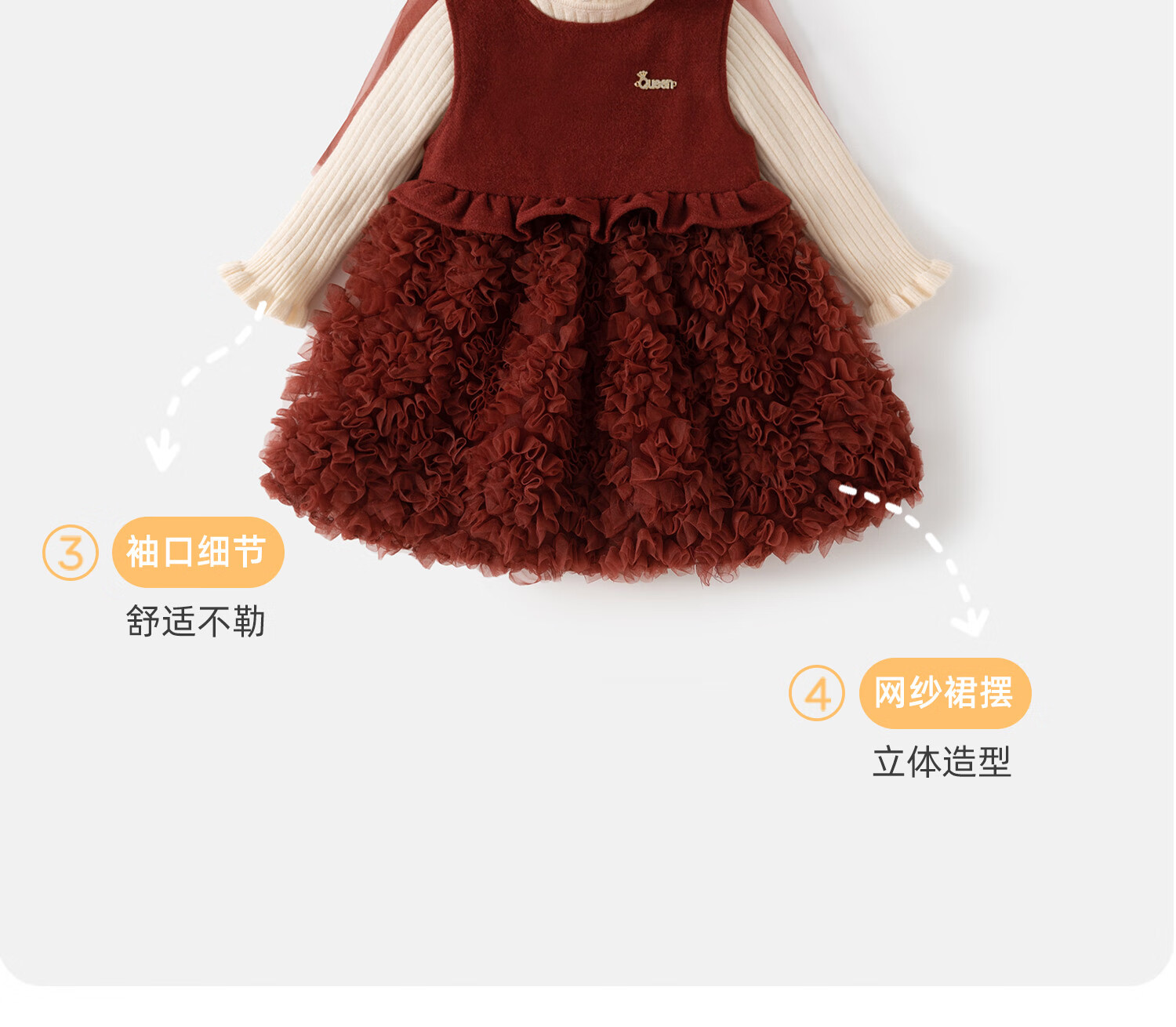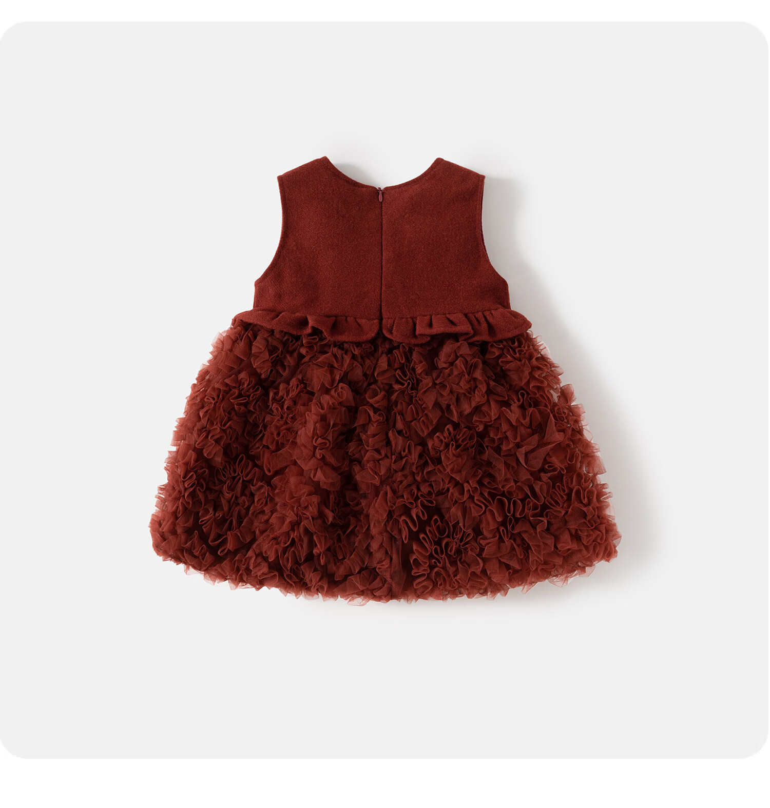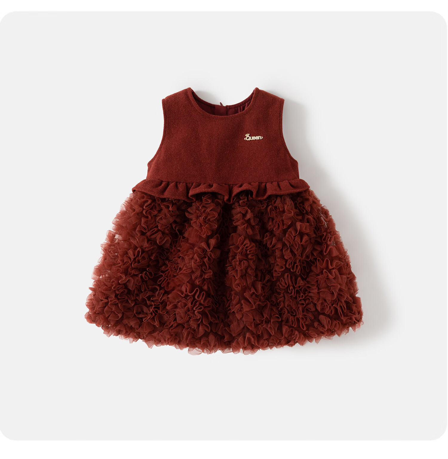 Banxidi girls dress autumn and winter new fashionable baby princess dress suit one-year-old dress winter children's mesh skirt red 100