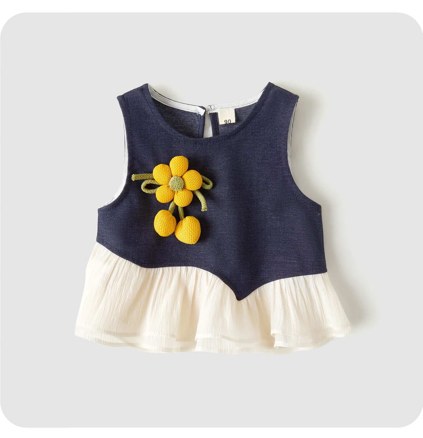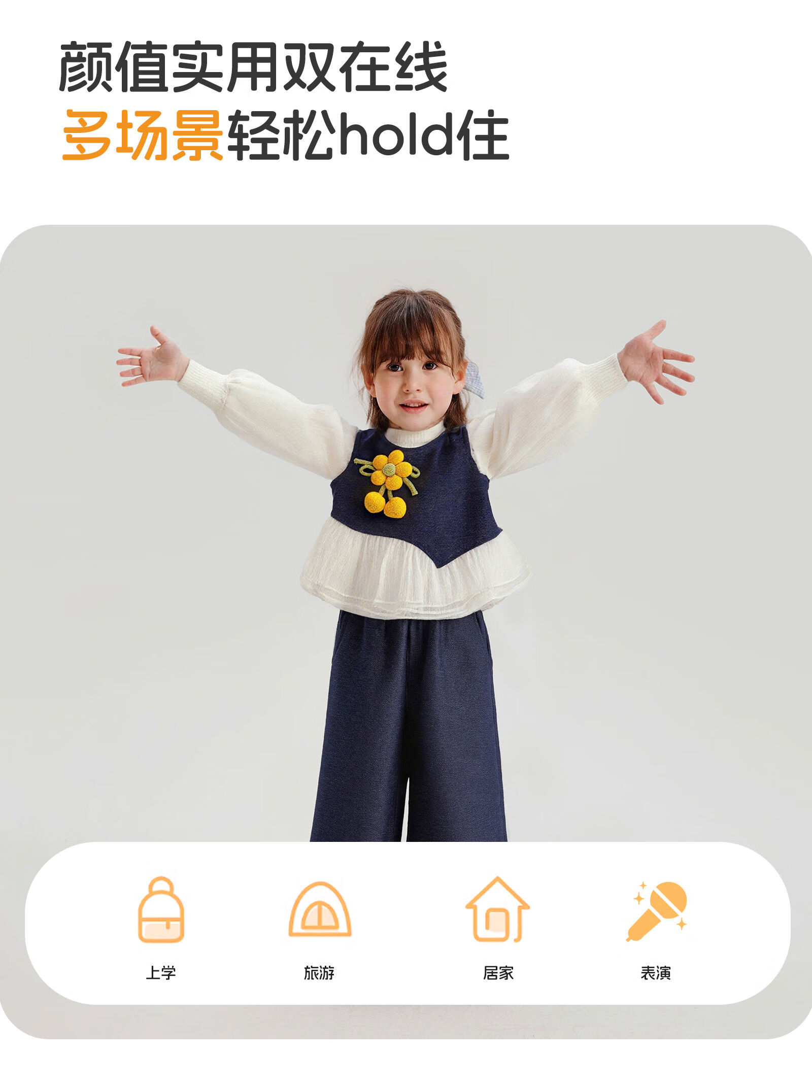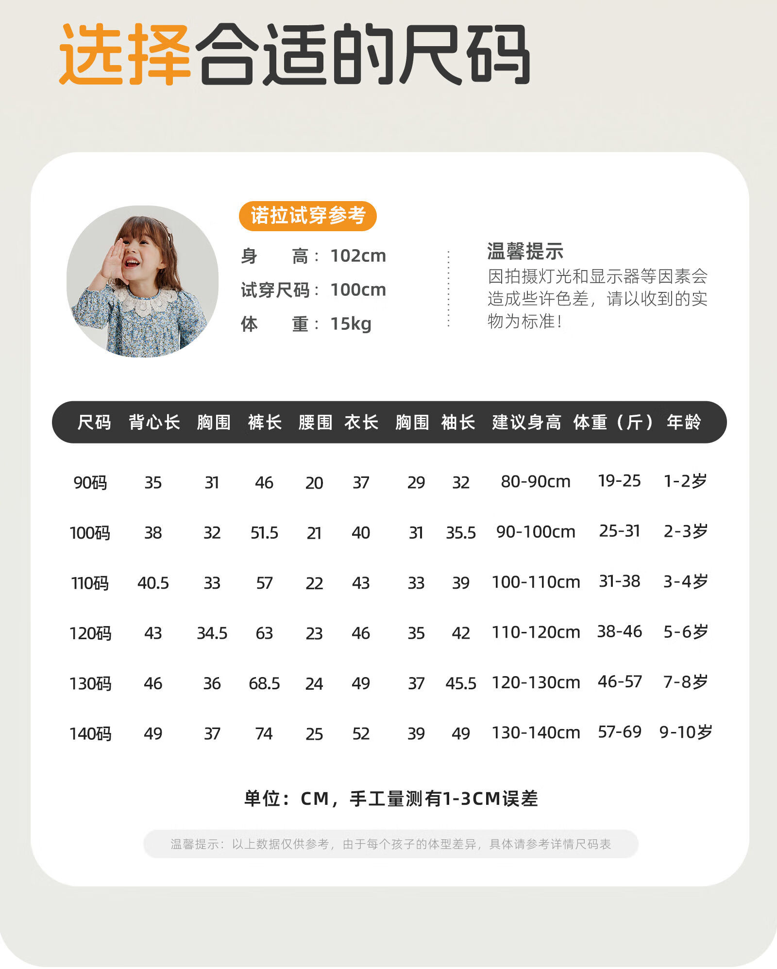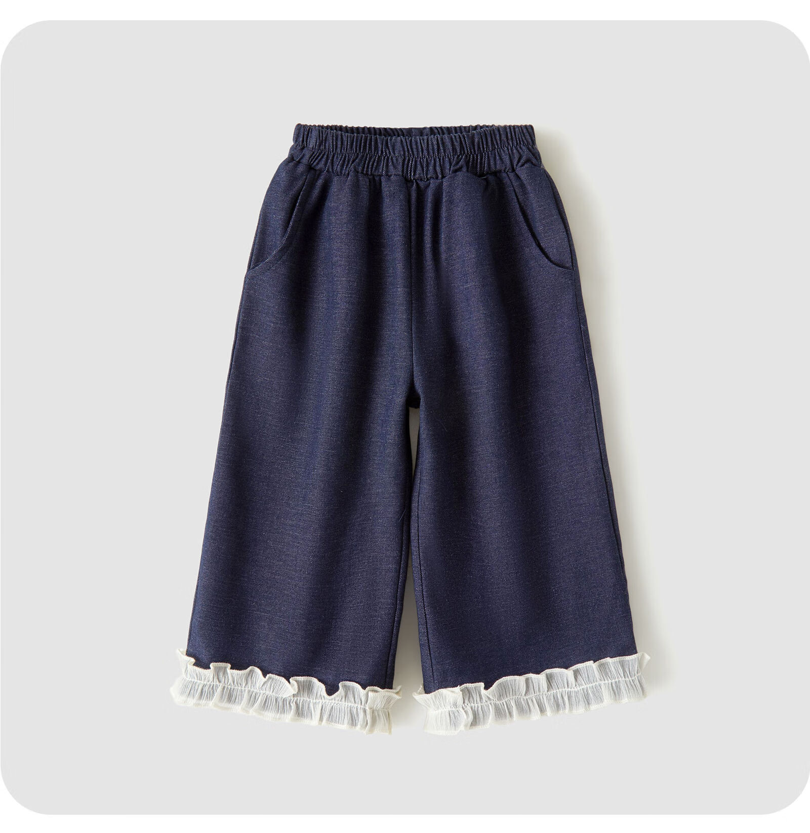 Keying GOWINBABY Girls Suit French 2025 Autumn New Baby Girl Sweet and Cute Autumn Clothes Little Girl Cartoon Lace Three-piece Set Apricot Lace Bottoming Shirt + Blue Vest Set 140 (Suitable for Height 130cm-140cm)