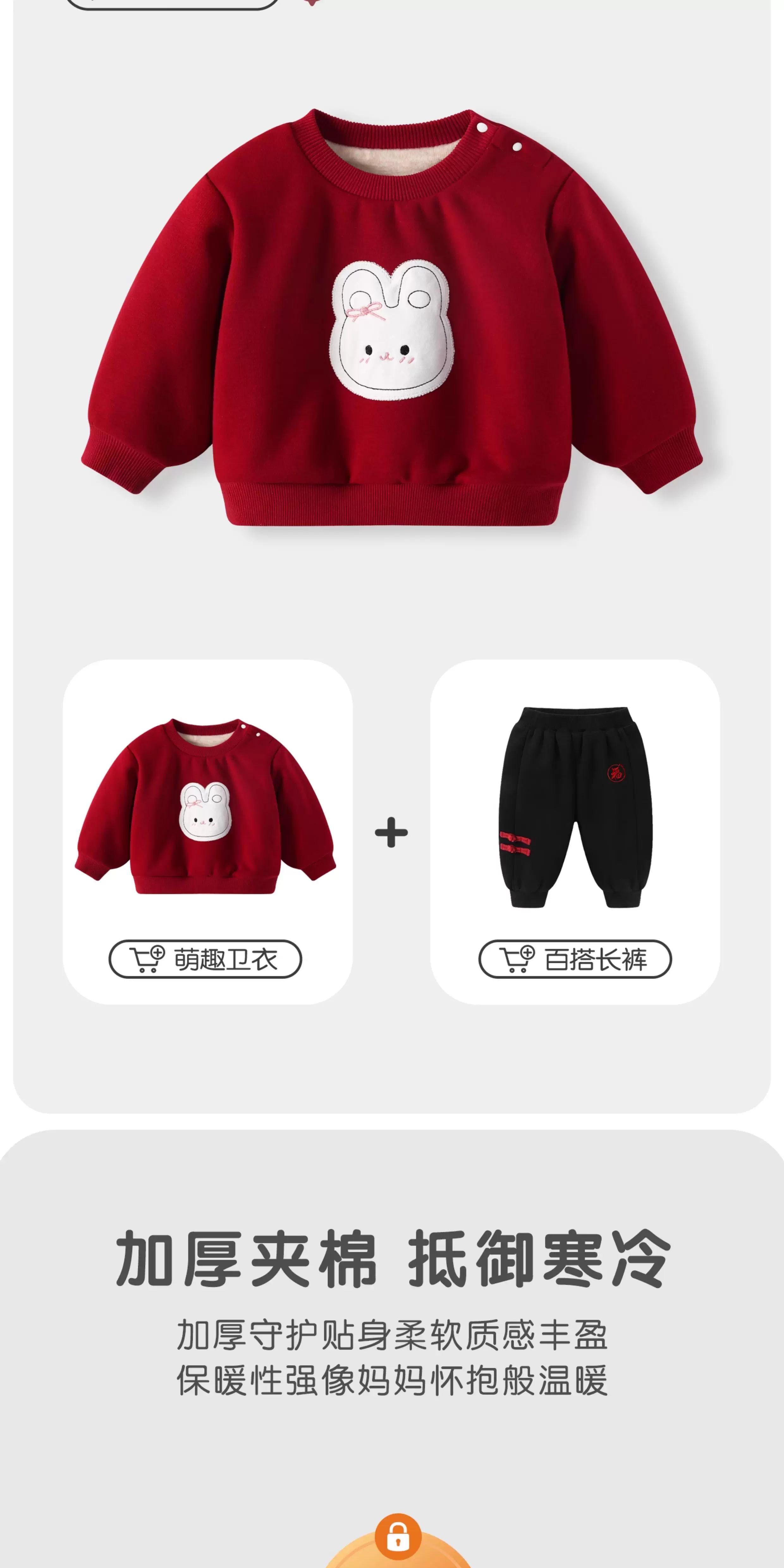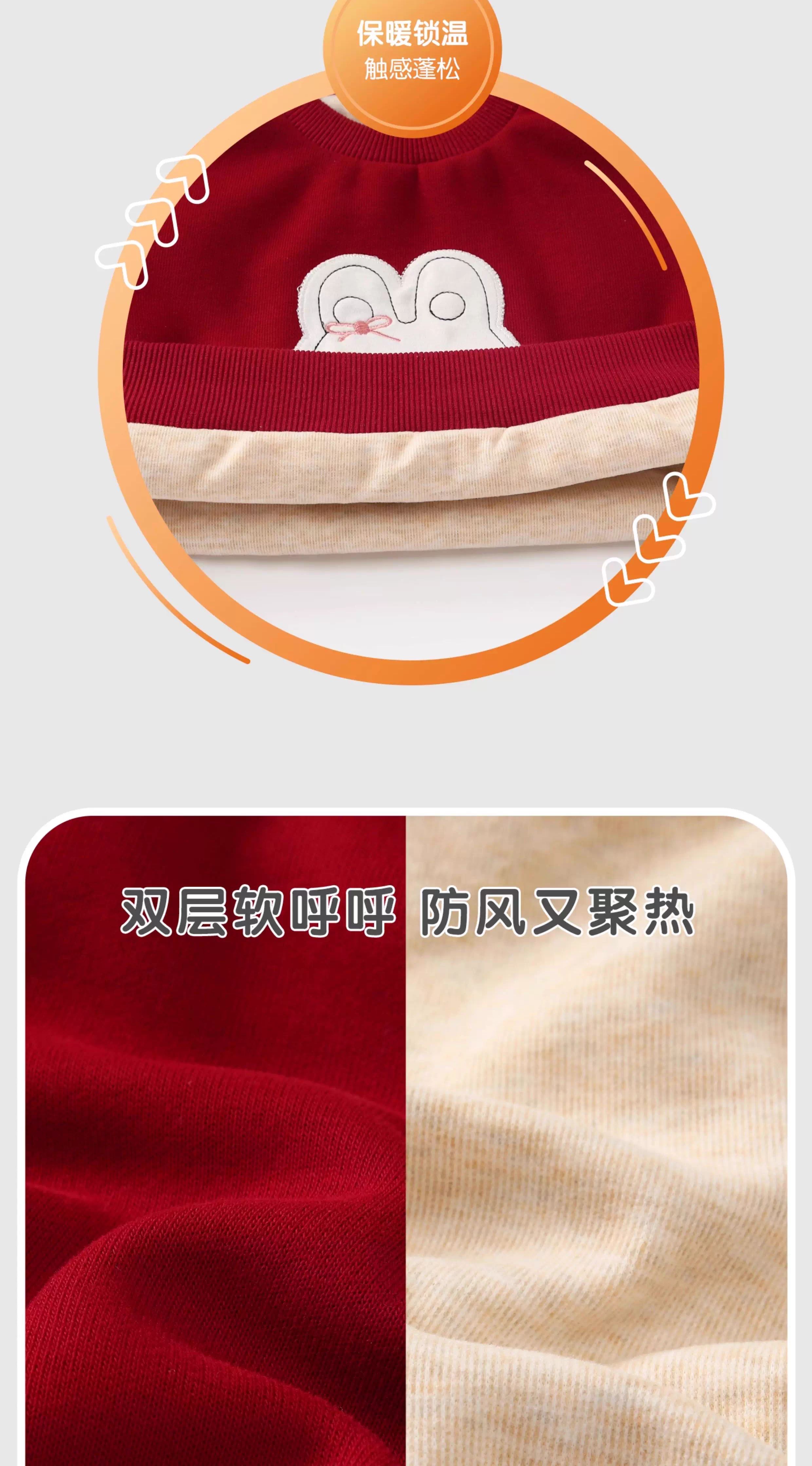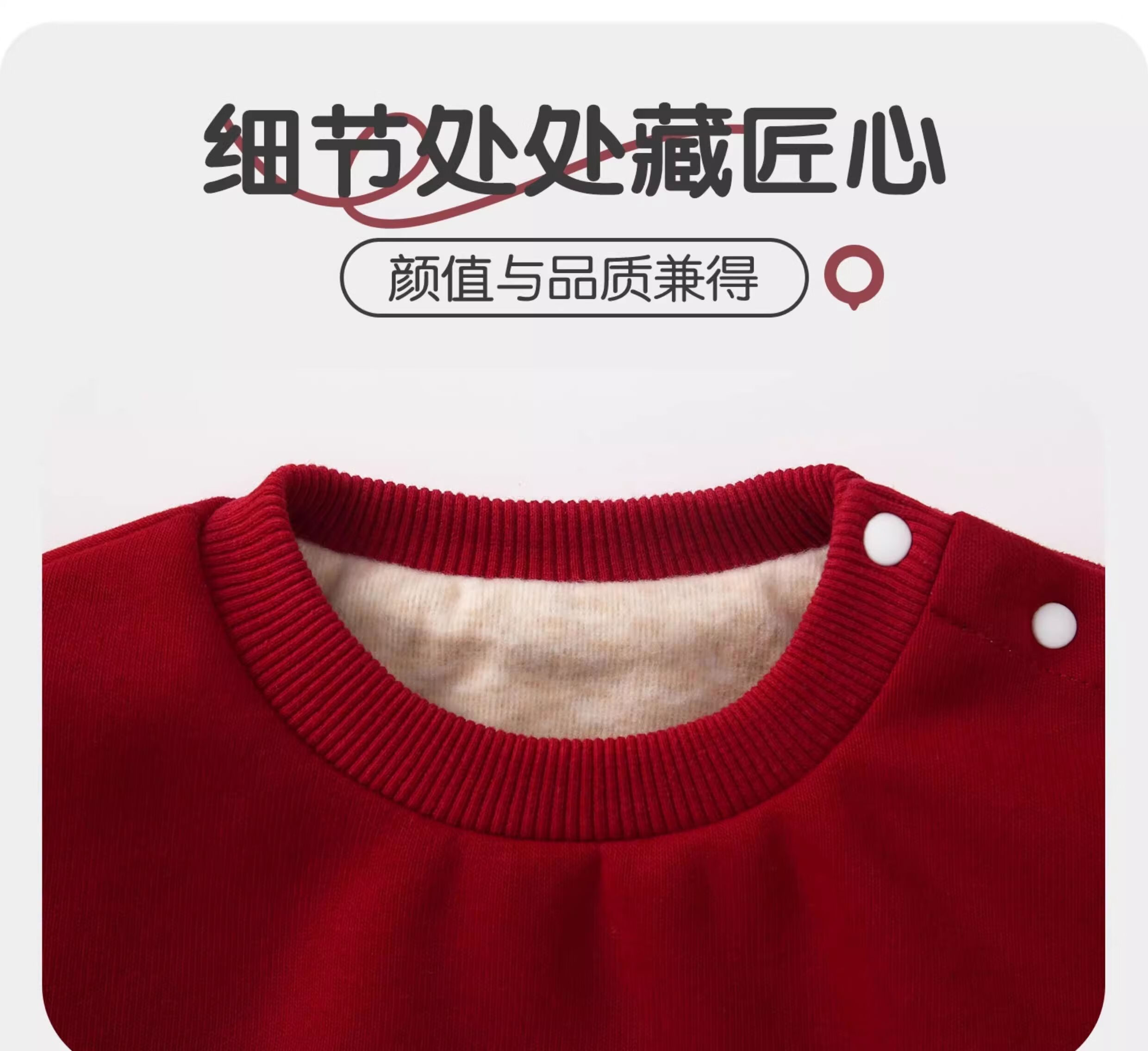 BORBOON B baby autumn and winter set 2025 new style baby girl fashionable and cute red festive sweatshirt girls thickened two-piece set suit 8207 thickened 90