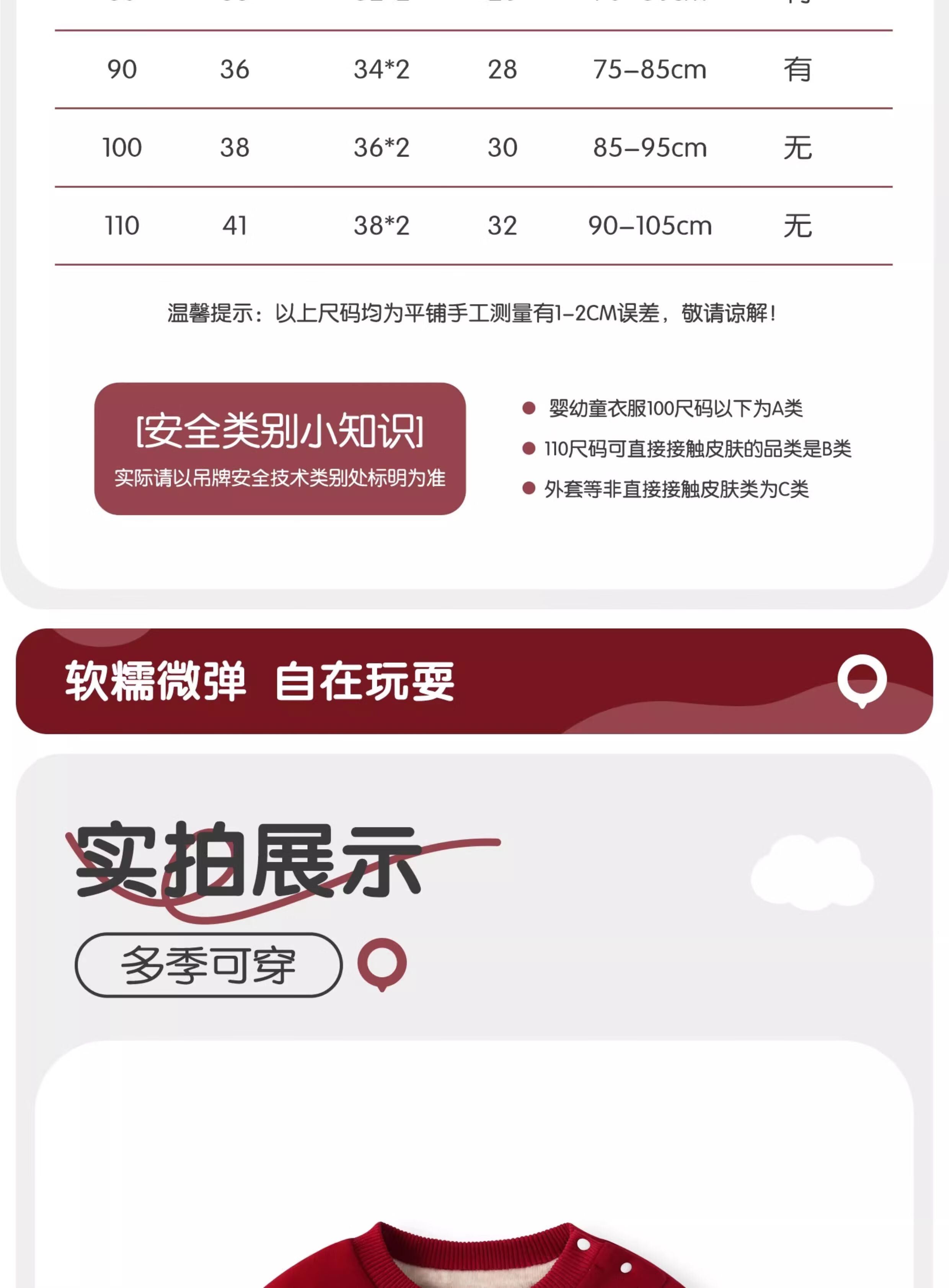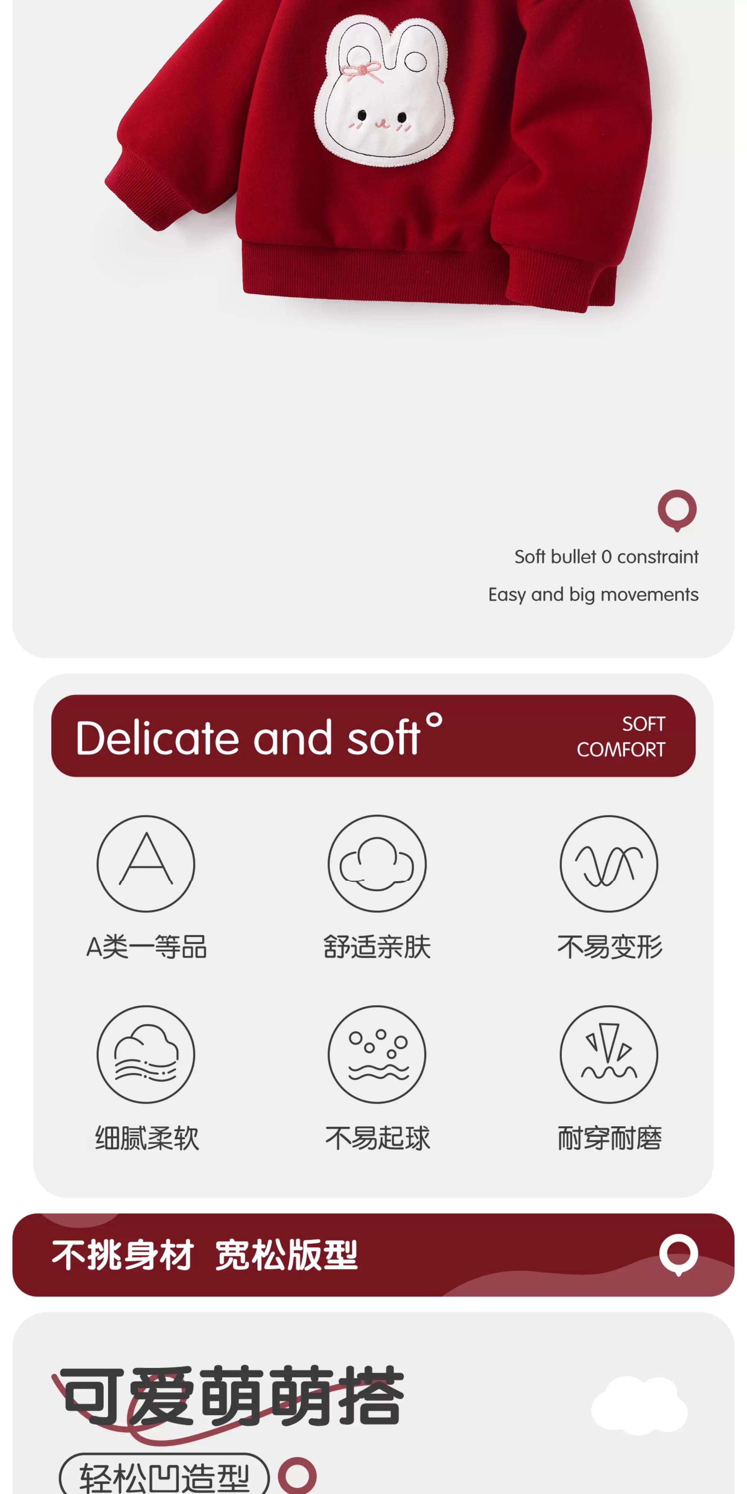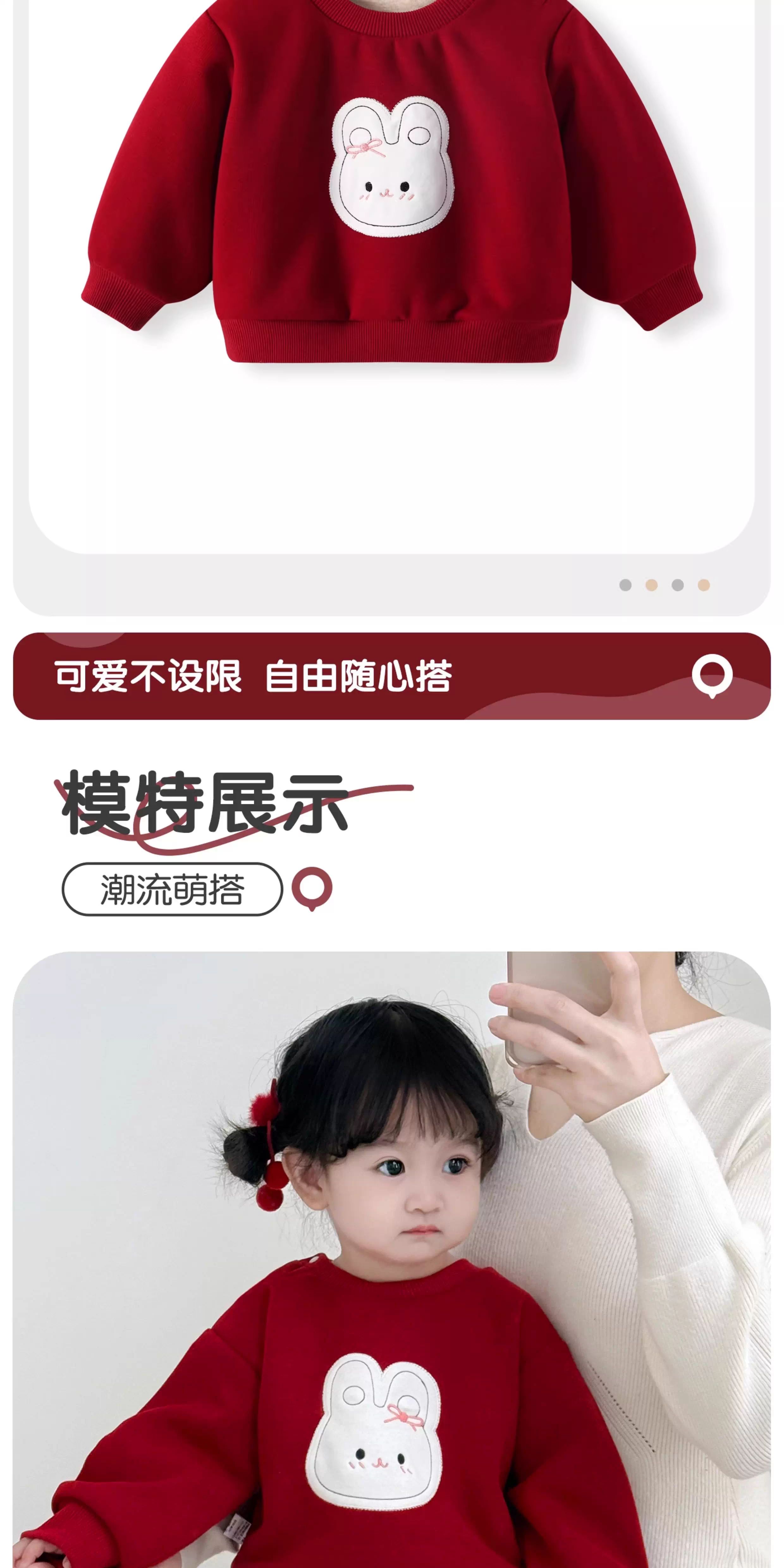 BORBOON B baby autumn and winter set 2025 new style baby girl fashionable and cute red festive sweatshirt girls thickened two-piece set suit 8207 thickened 90