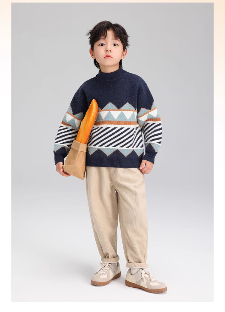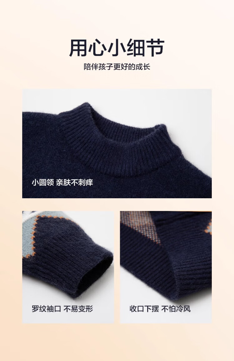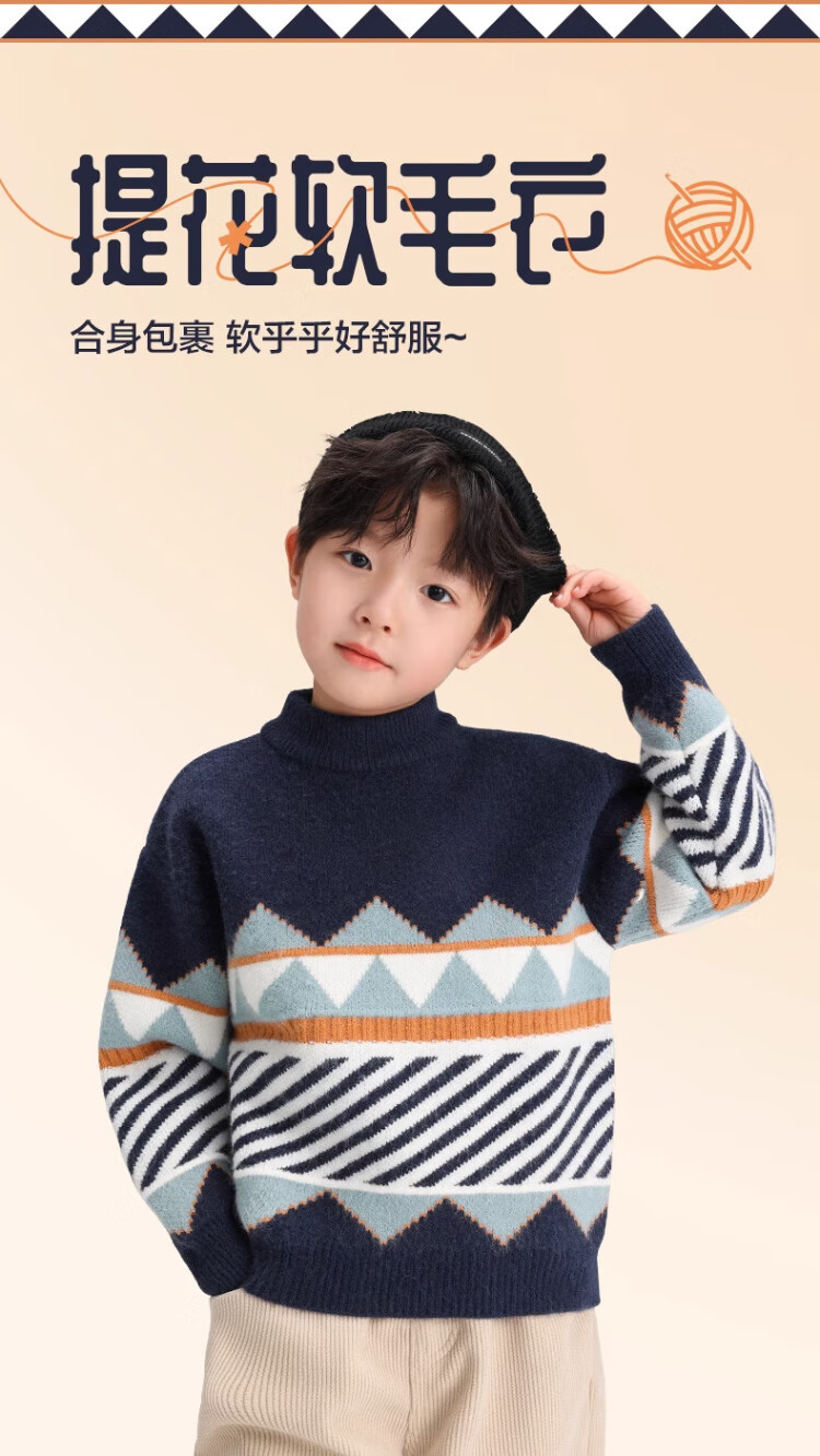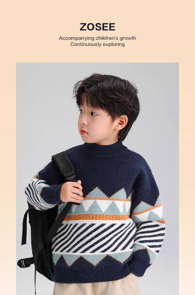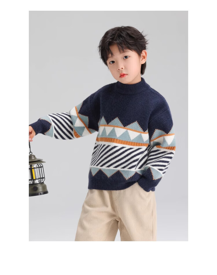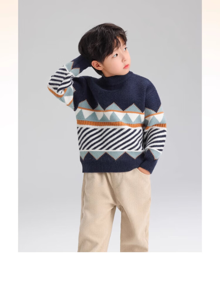 Zuoxi Boys' Sweater Children's Thickened Autumn and Winter 2025 New Boys' Sweater Winter Pullover Navy Blue 150