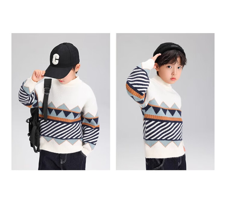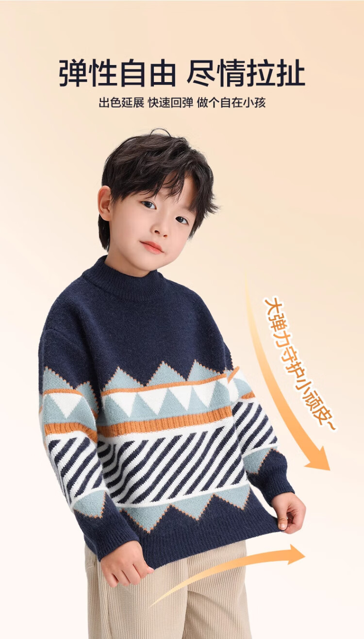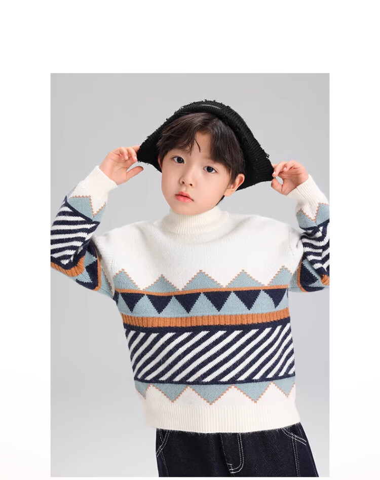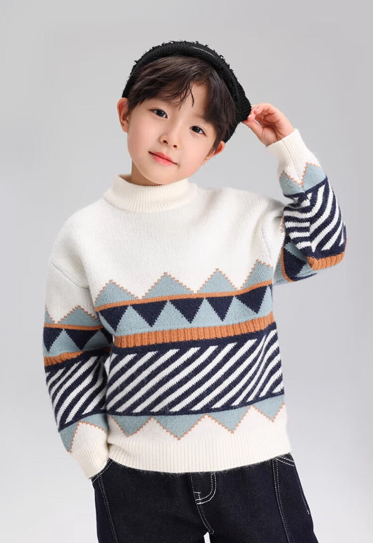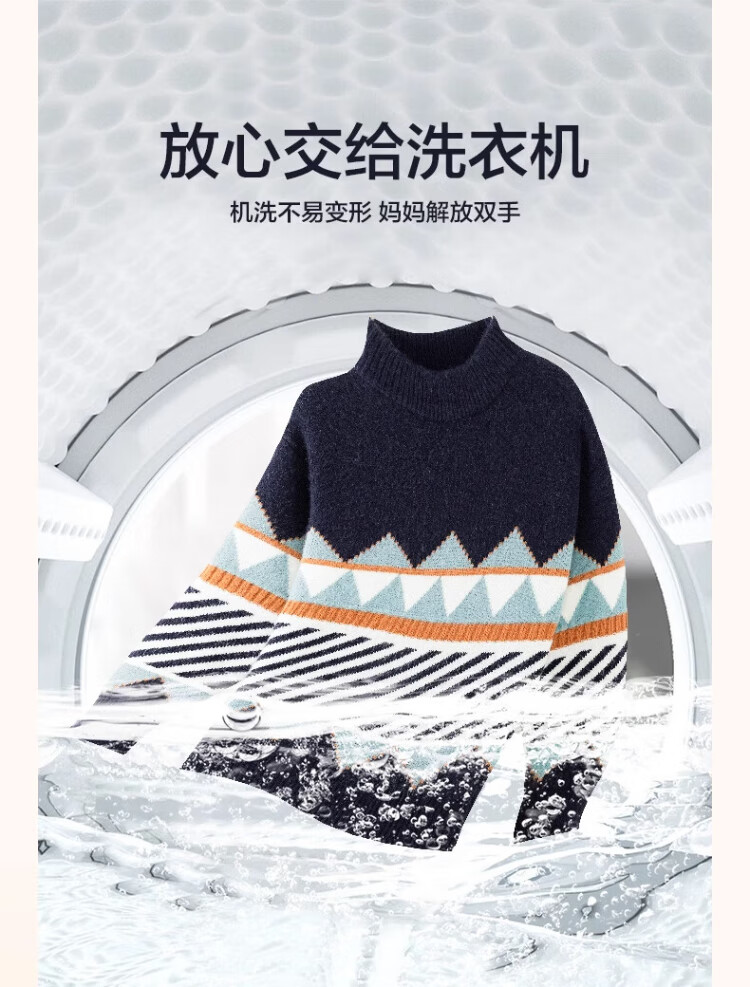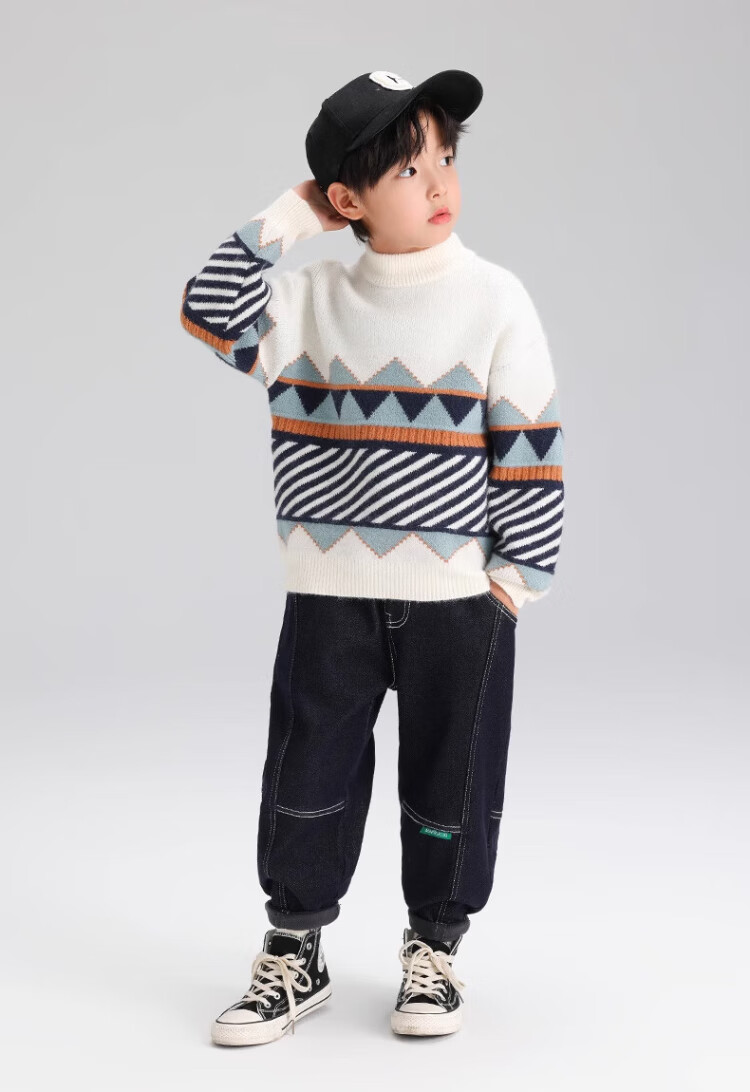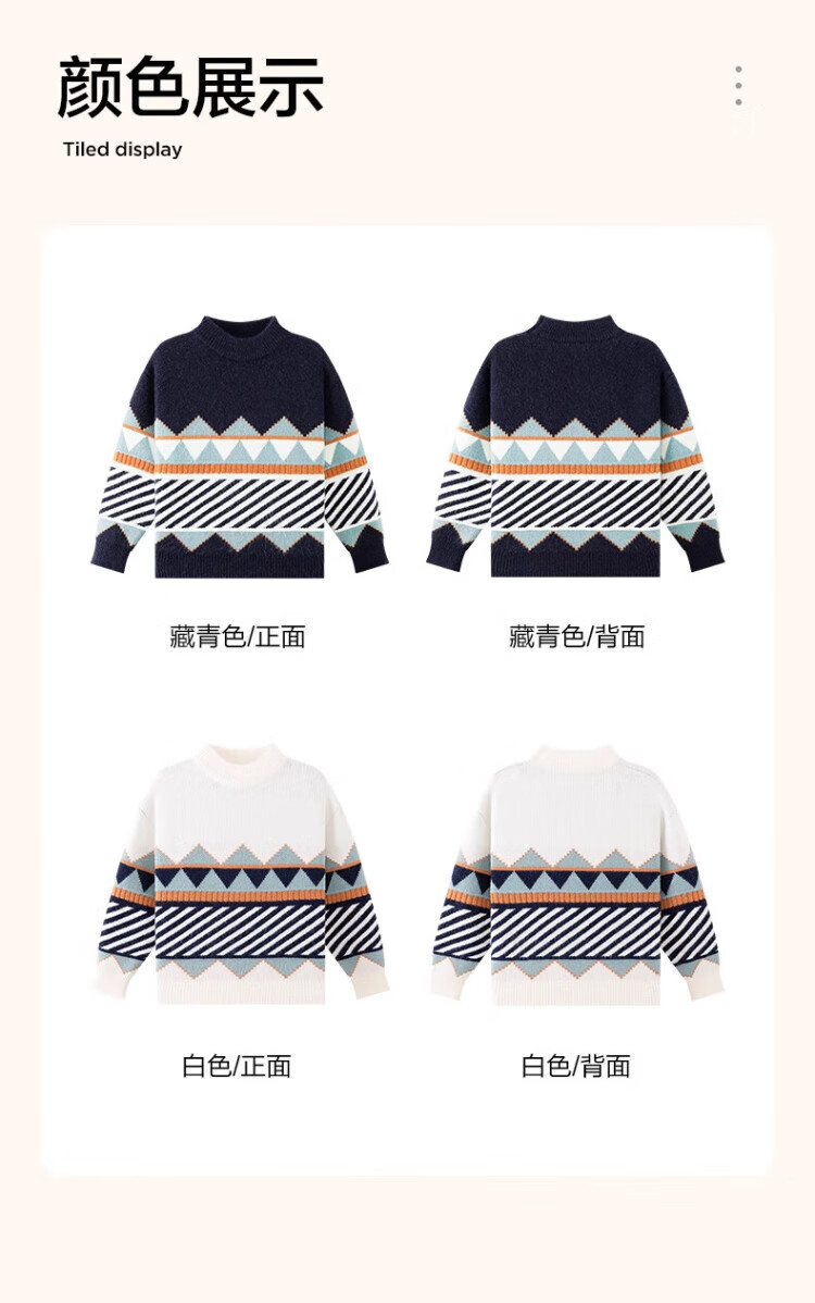 Zuoxi Boys' Sweater Children's Thickened Autumn and Winter 2025 New Boys' Sweater Winter Pullover Navy Blue 150