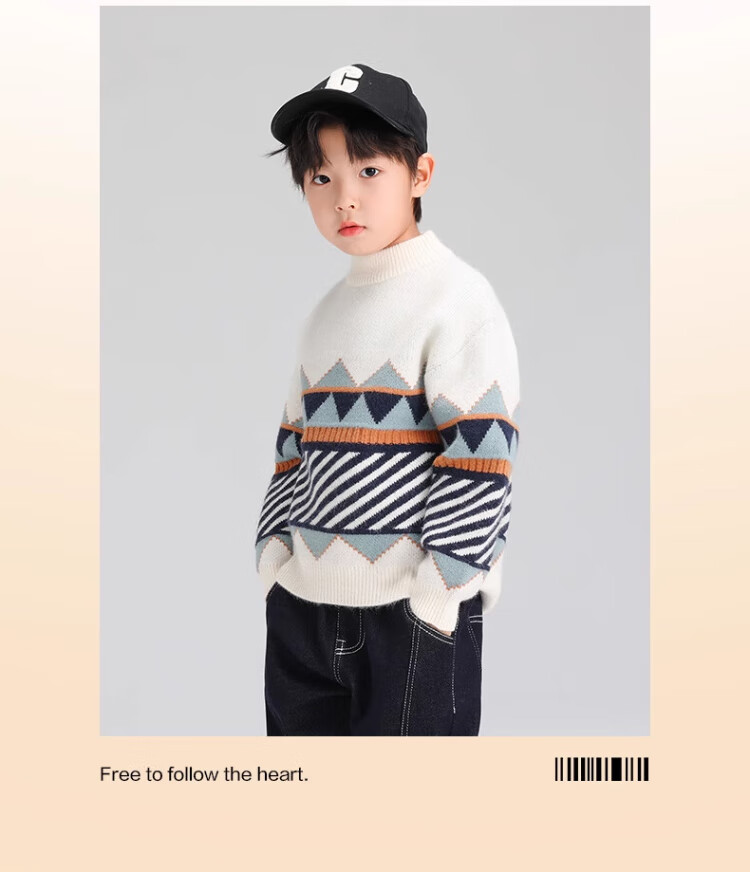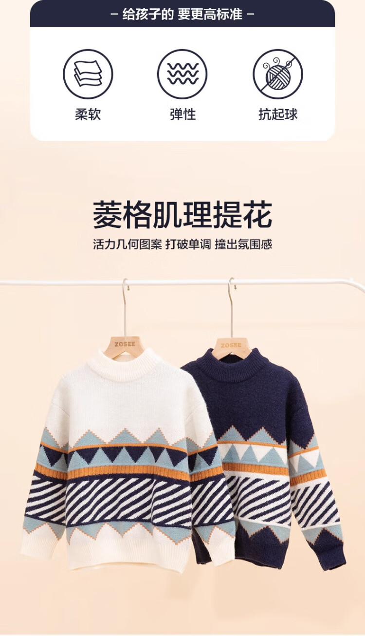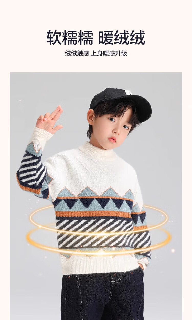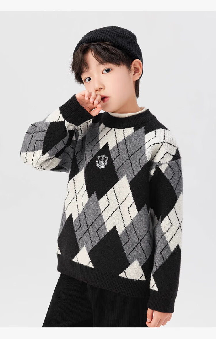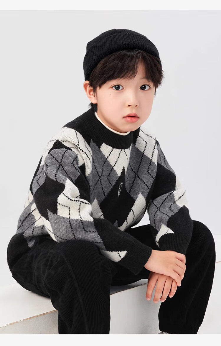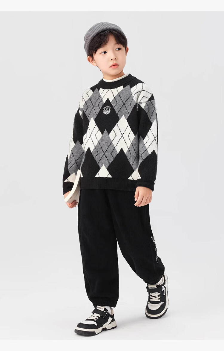 Zuoxi Boys' Sweater Children's Thickened Autumn and Winter 2025 New Boys' Sweater Winter Pullover Navy Blue 150