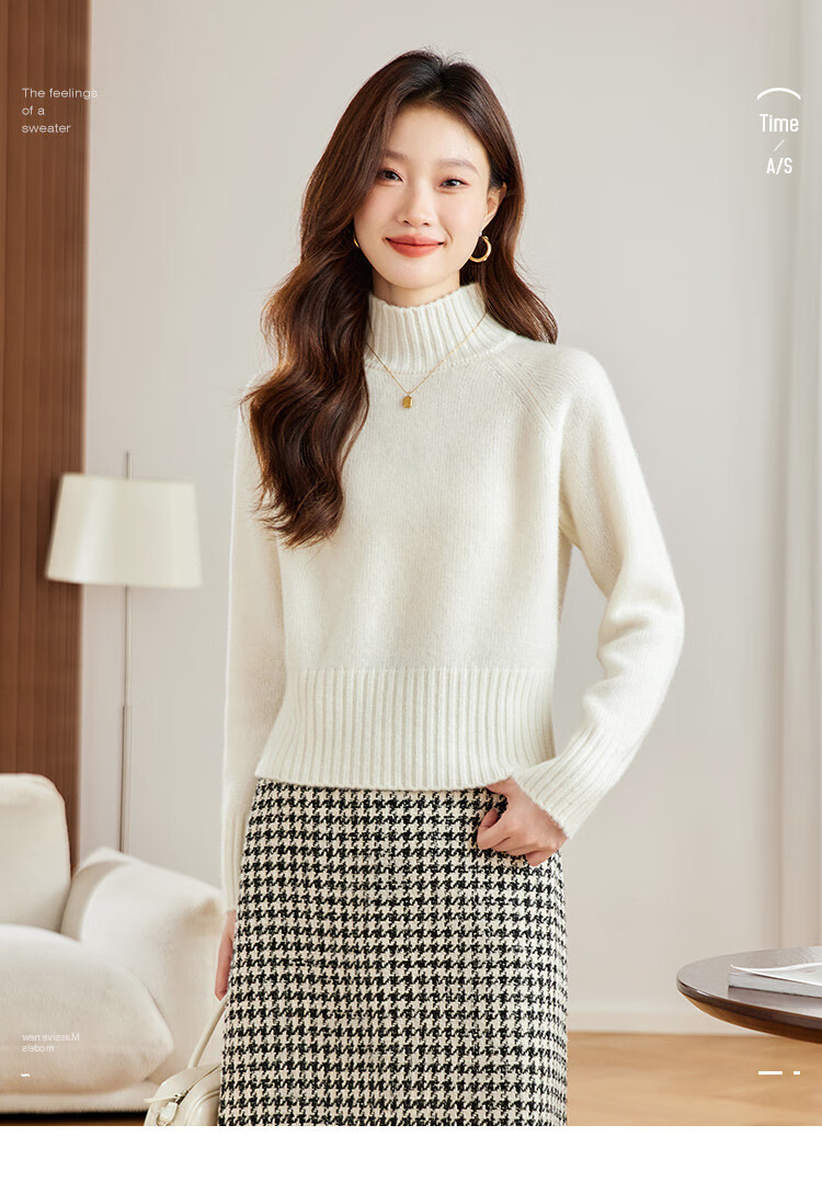 Shexi (Srcr) 343g thick cashmere sweater for women 100% cashmere sweater with spring and autumn waist knitted bottoming shirt