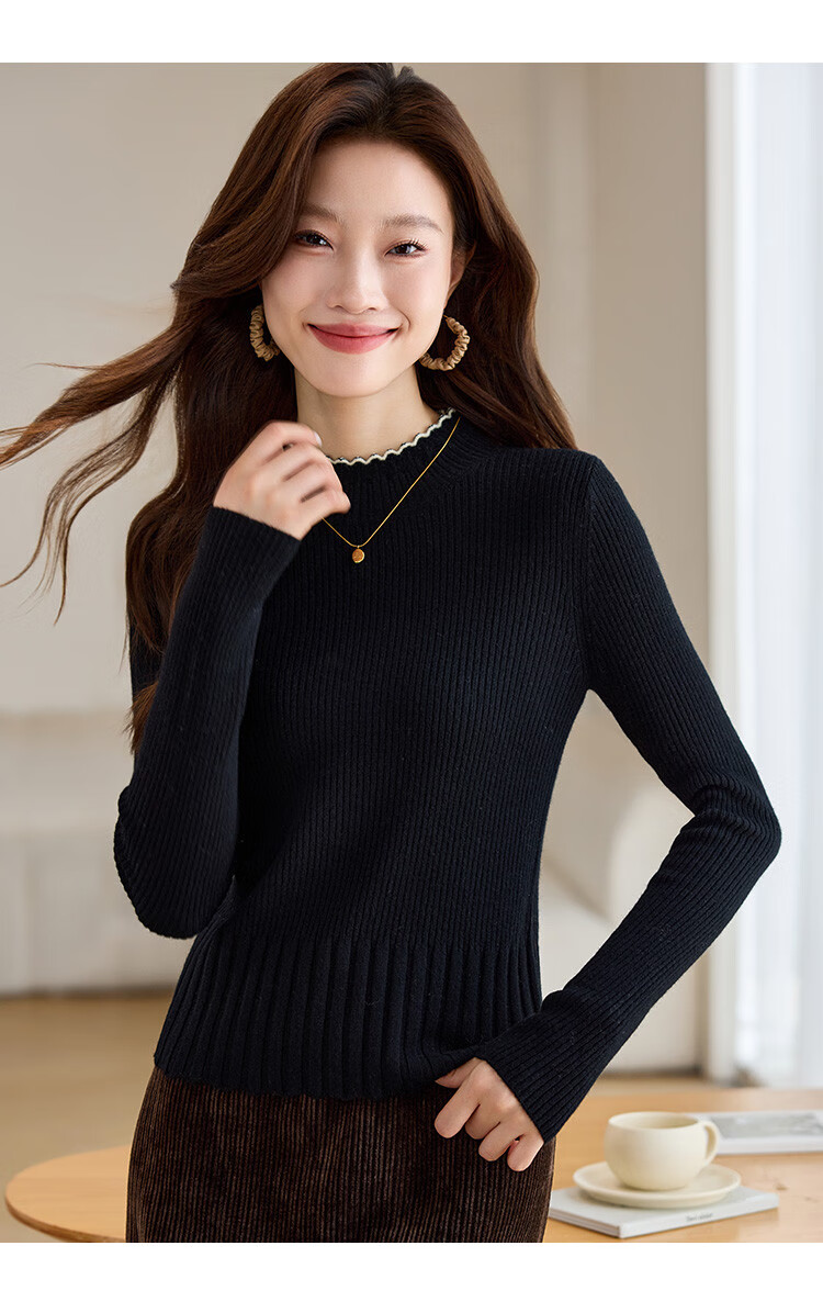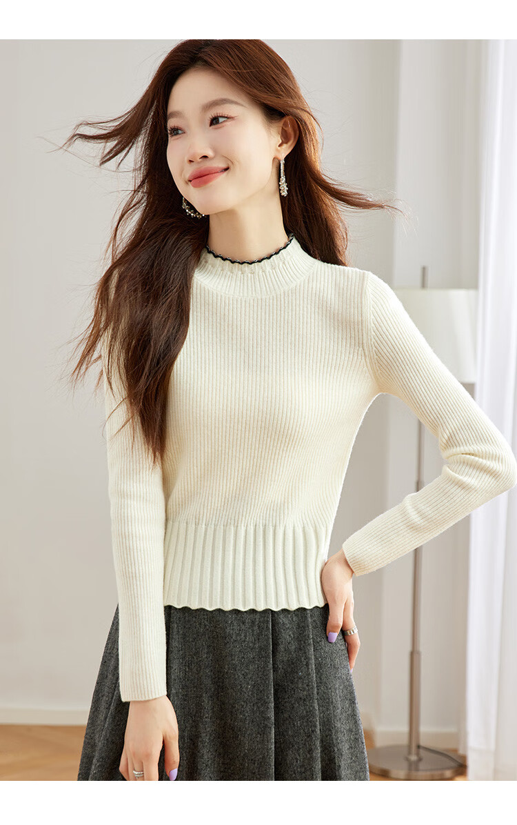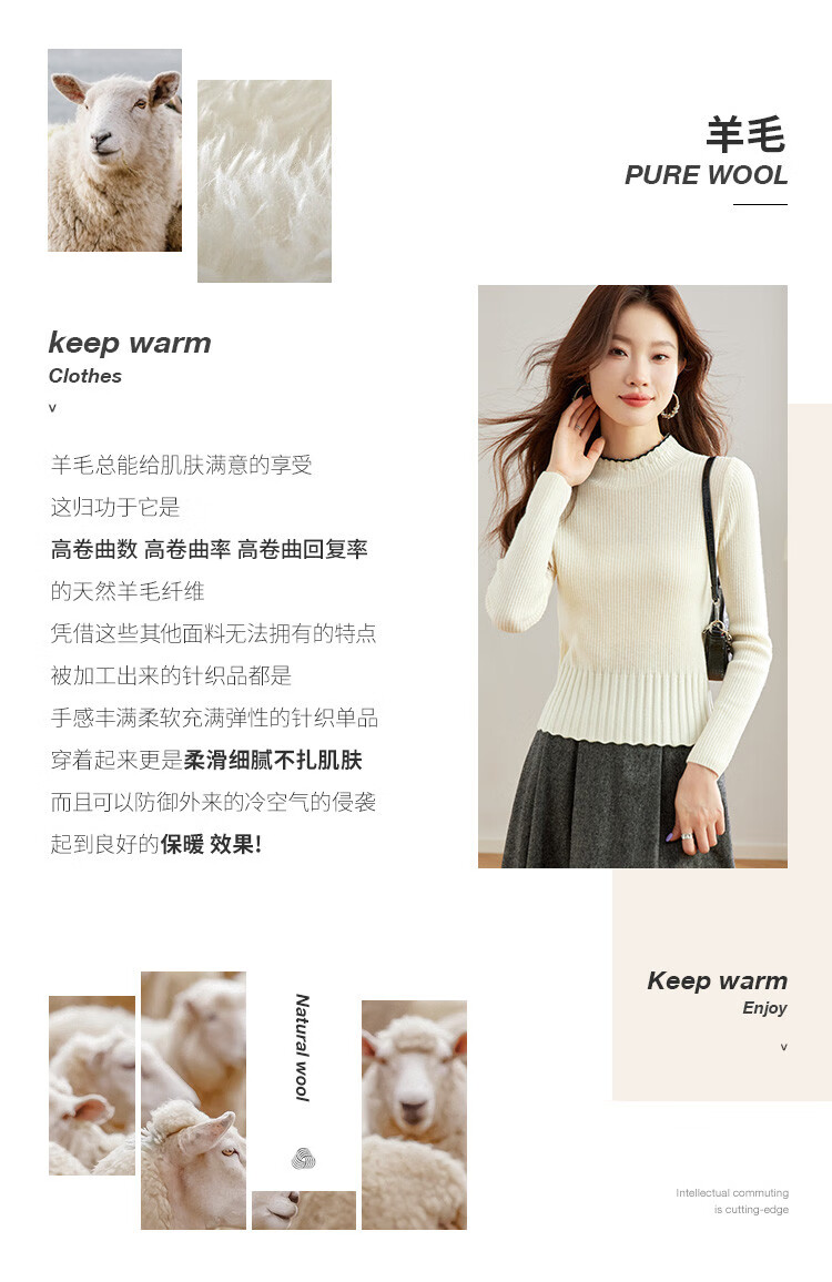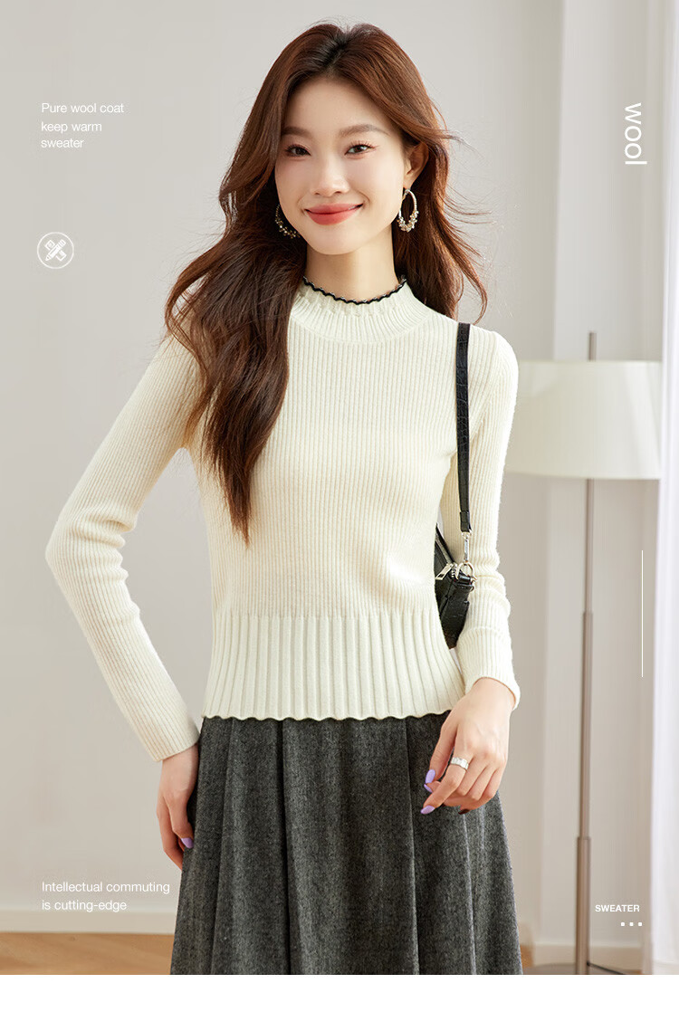 Shexi (Srcr) pure wool sweater for women, short high-waisted sweater with autumn and winter style small knitted bottoming top