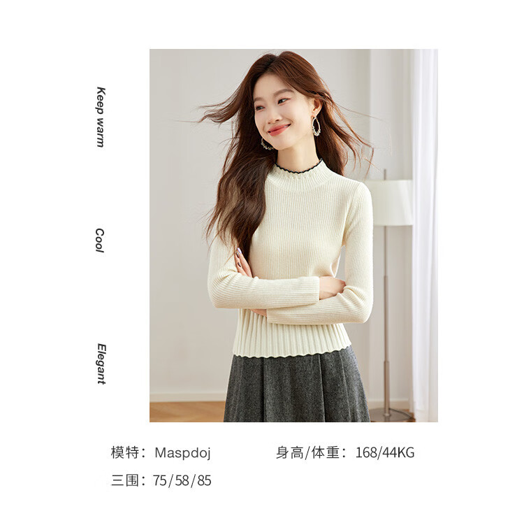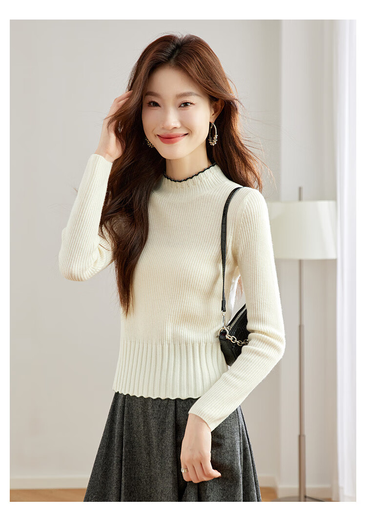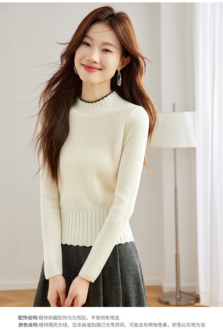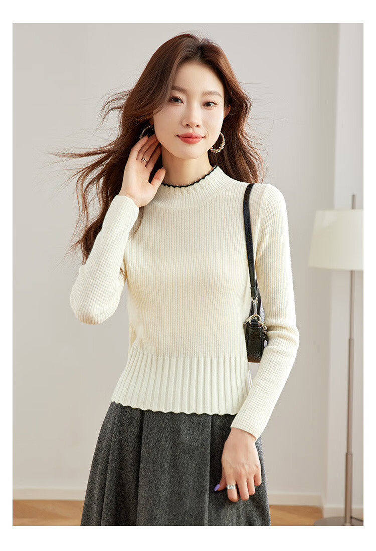Shexi (Srcr) pure wool sweater for women, short high-waisted sweater with autumn and winter style small knitted bottoming top