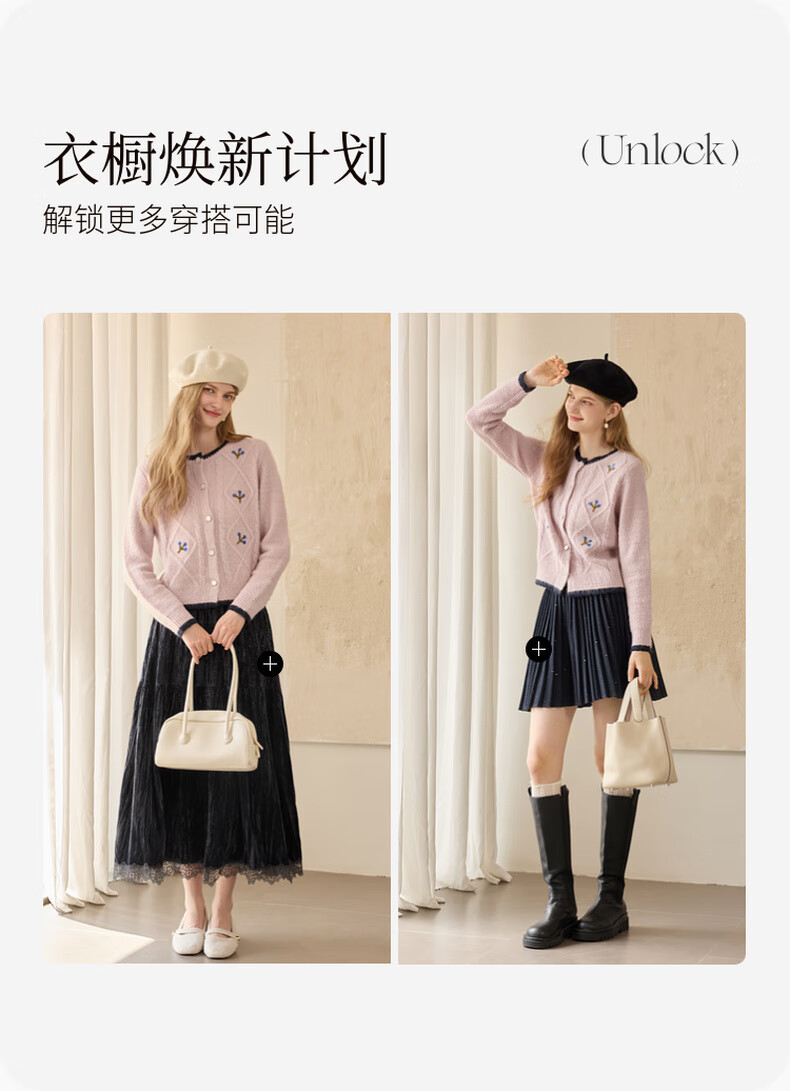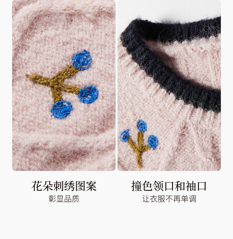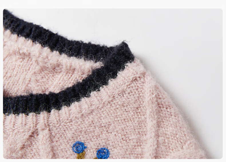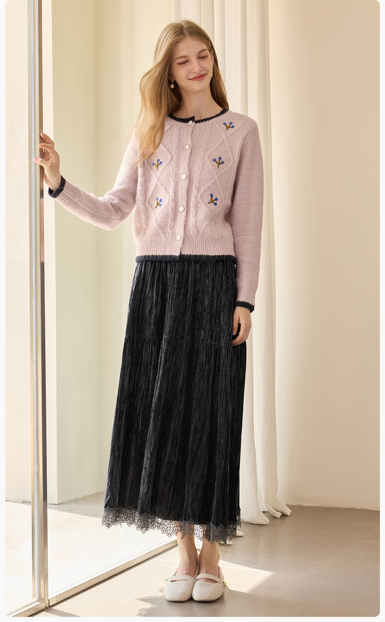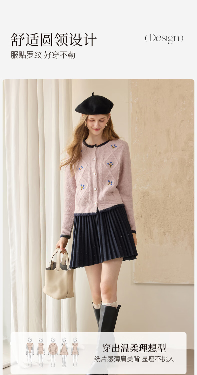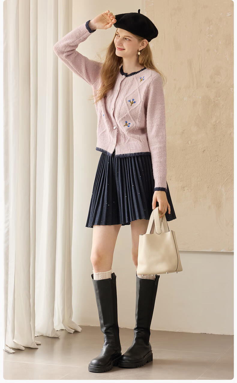 Xiangying Pink Cable Sweater Cardigan Women's 2025 Winter New Round Neck Wool Flower Short Knitted Jacket Gray Pink S 155/80A/85-95Jin Jin equals 0.5 kg