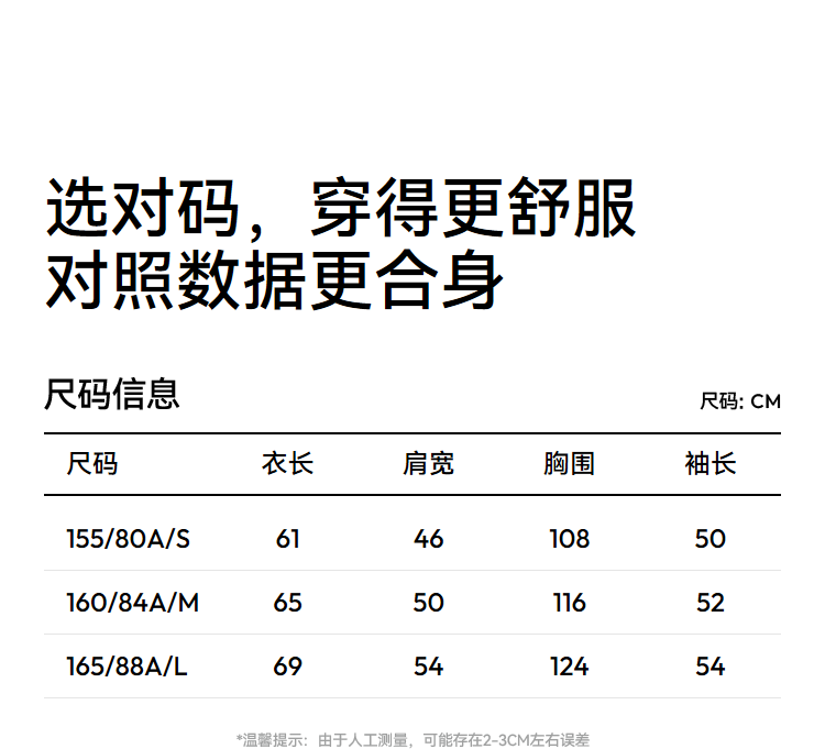 China (cm) 160-165/84-86 165-170 / 88-90 167-172 / 92-96 168-173 / 98-102 170-176 / 106-110