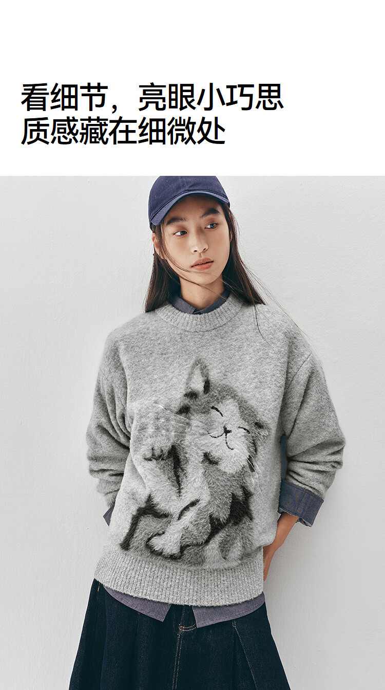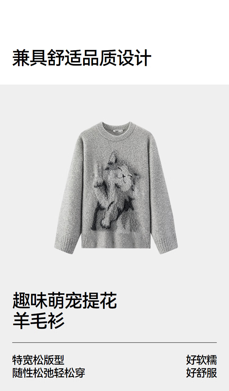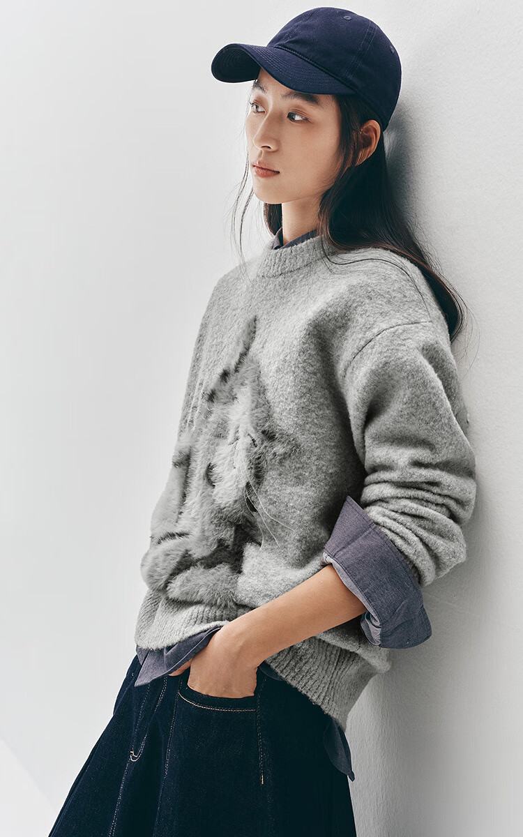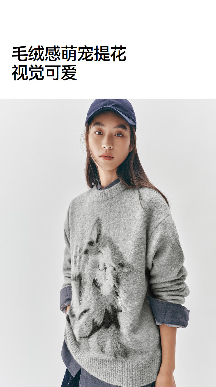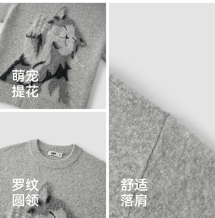 Same style as Semir shopping mall | Semir sweater women's winter oversize jacquard wool sweater 2025 new soft and waxy cute top floral gray gray tone 00302 S