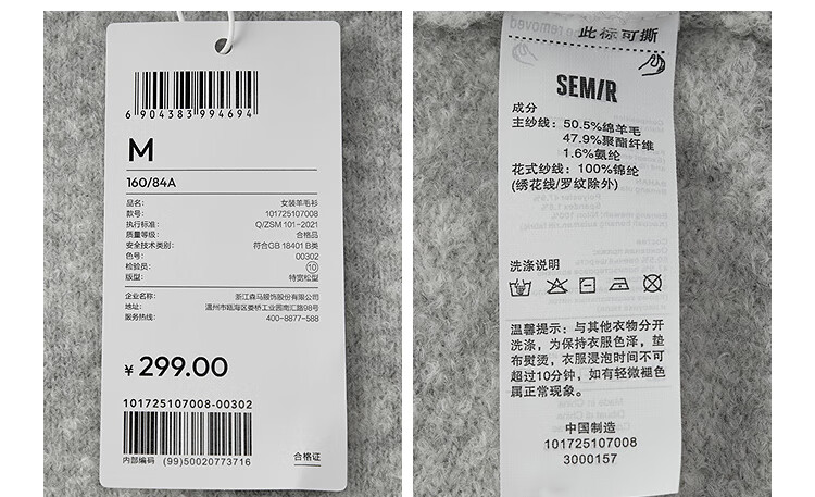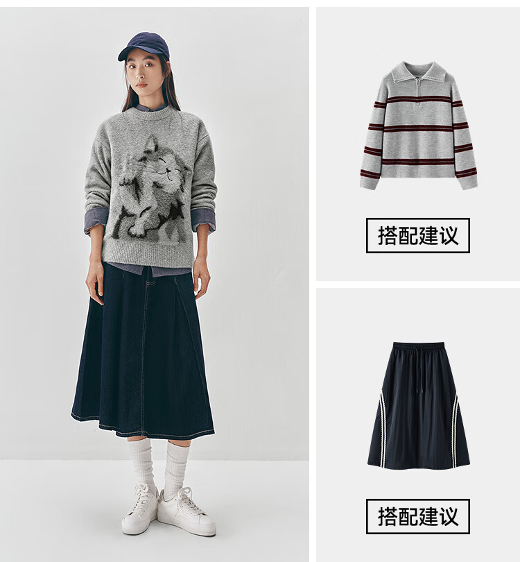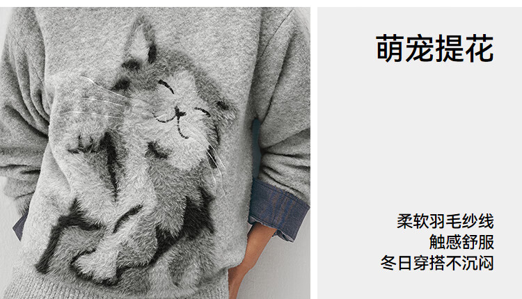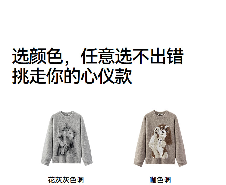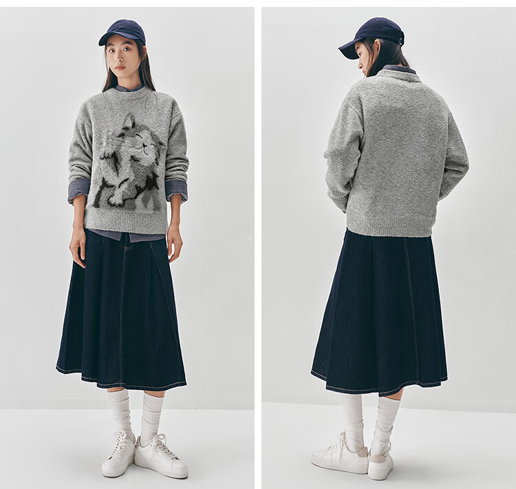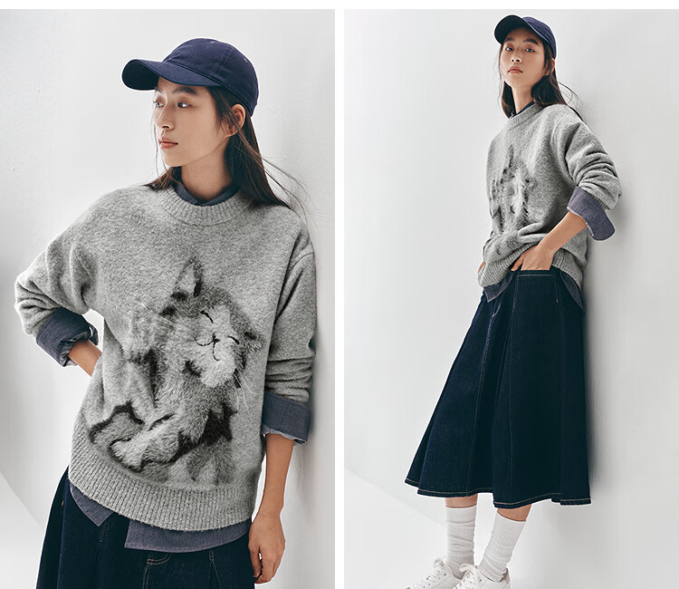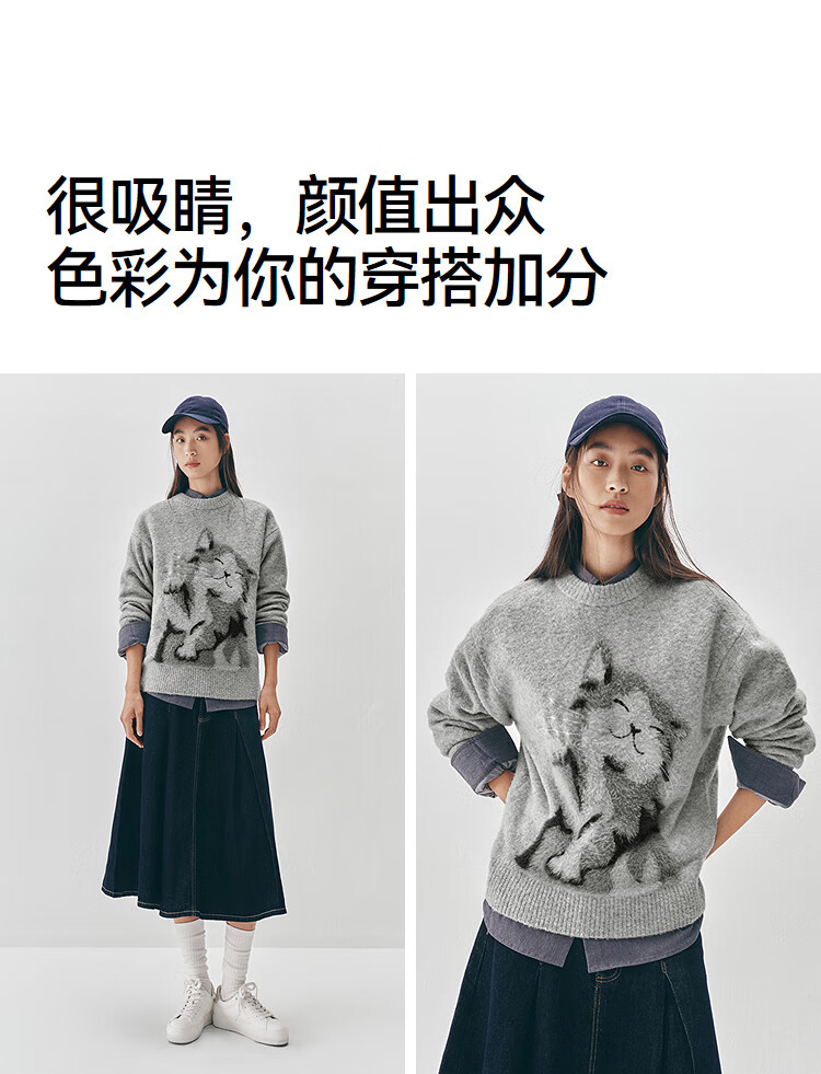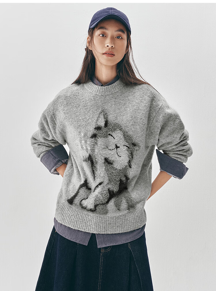 Same style as Semir shopping mall | Semir sweater women's winter oversize jacquard wool sweater 2025 new soft and waxy cute top floral gray gray tone 00302 S