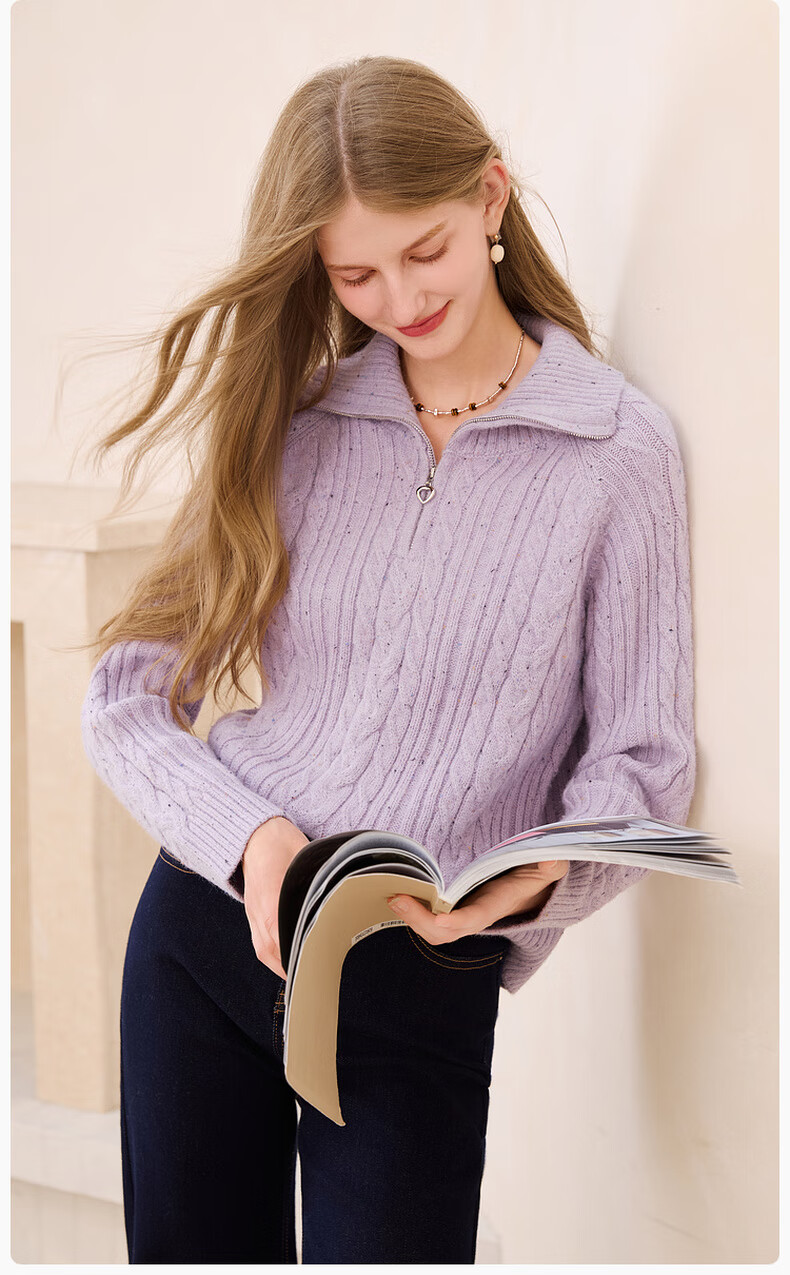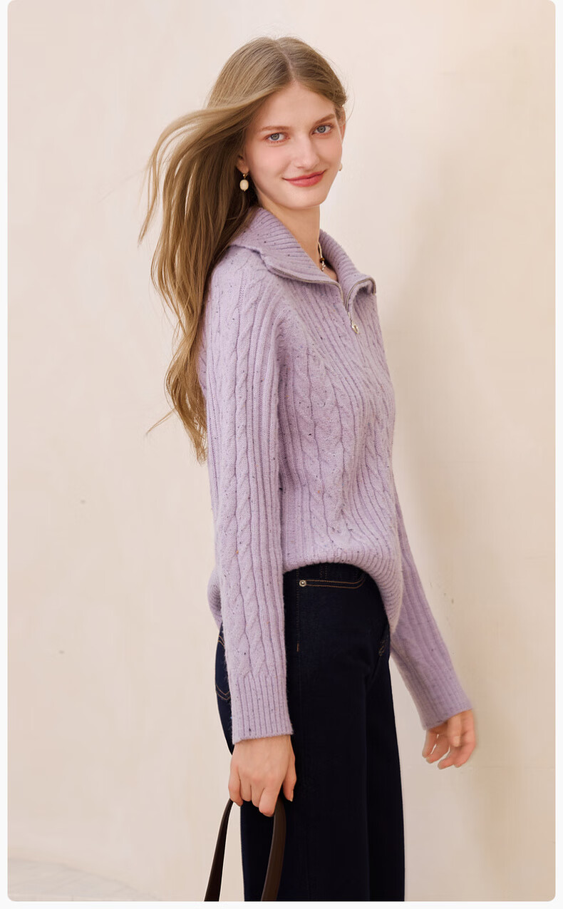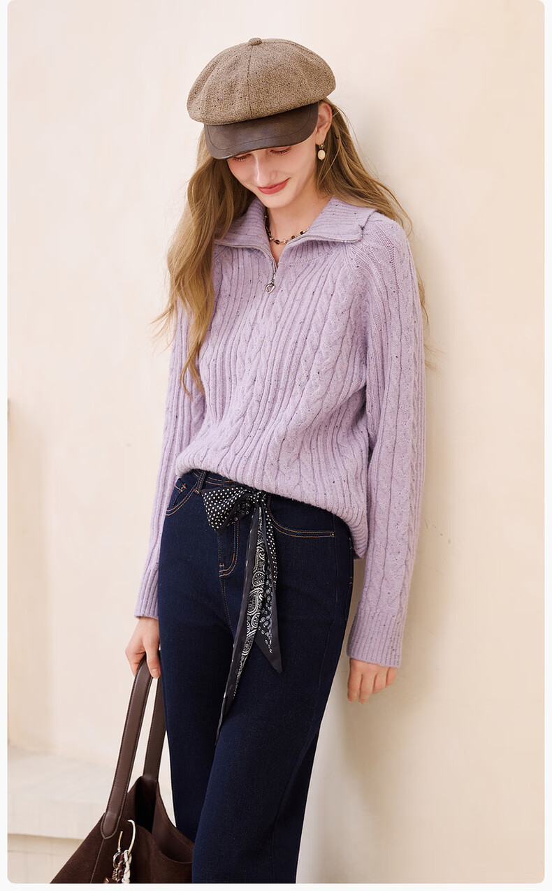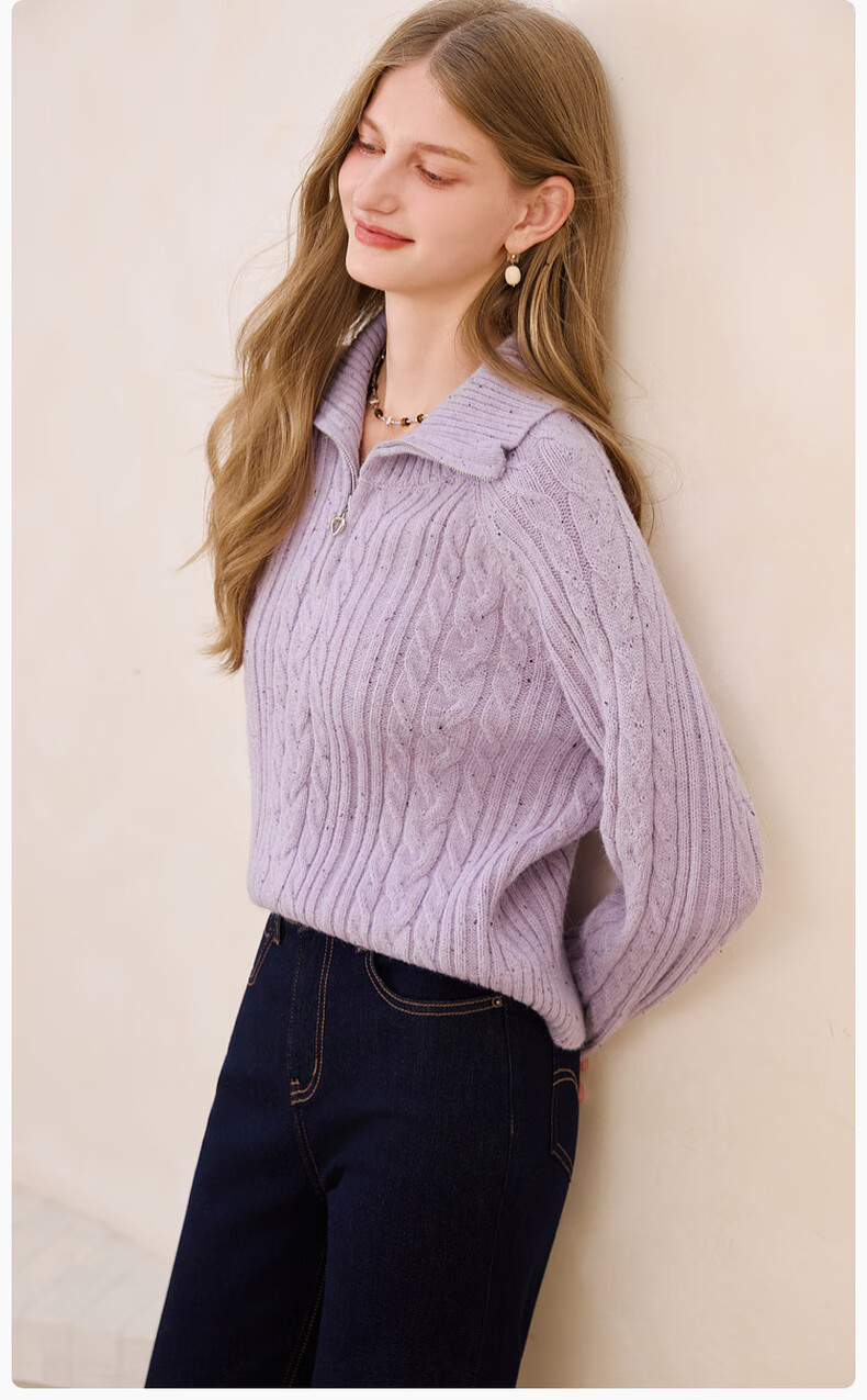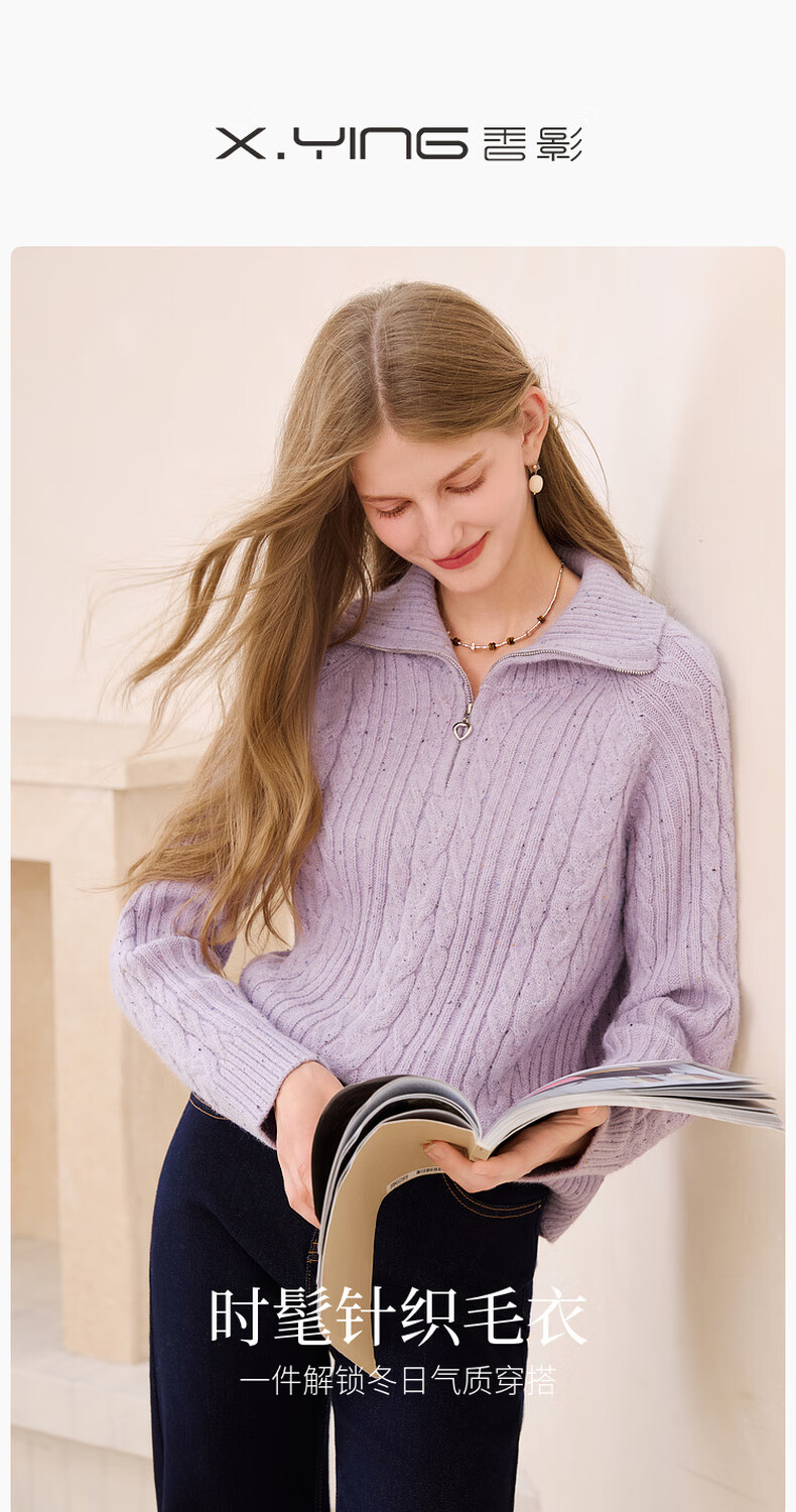 Xiangying Half-Zip Lapel Sweater Women's Long Sleeve 2025 Winter New Gentle Wind Pullover Purple Cable Sweater Purple XL 170/92A/125-140Jin Jin is equal to 0.5 kg