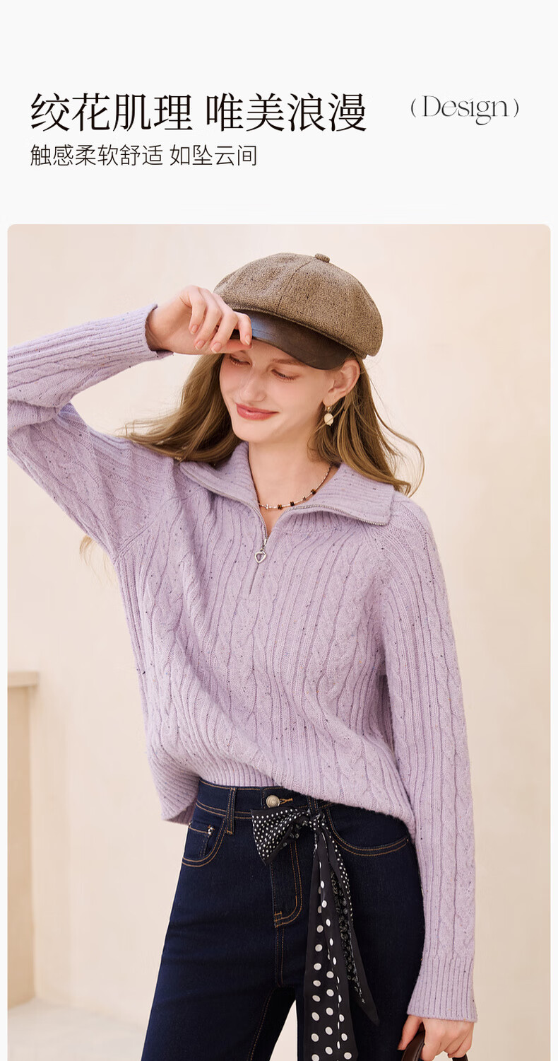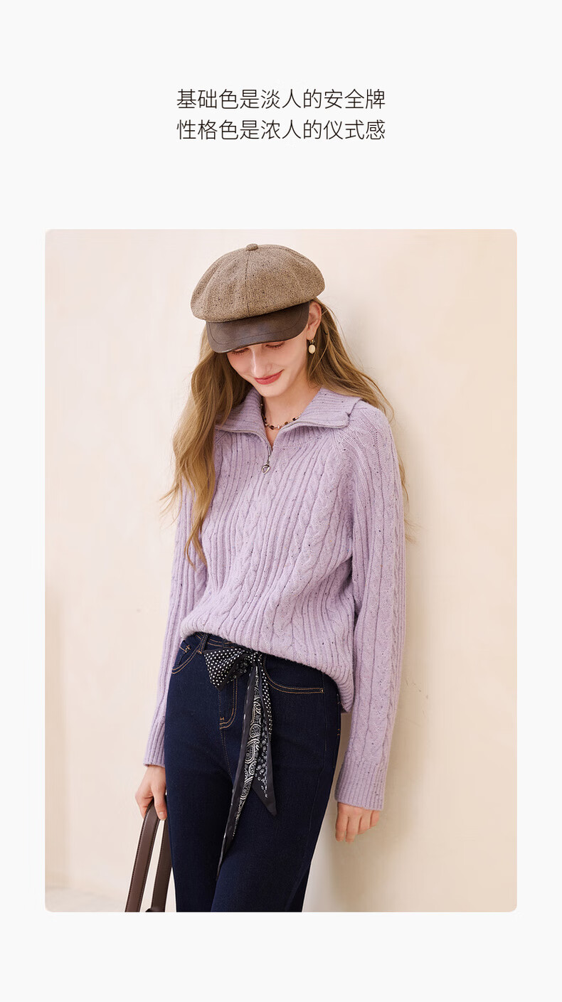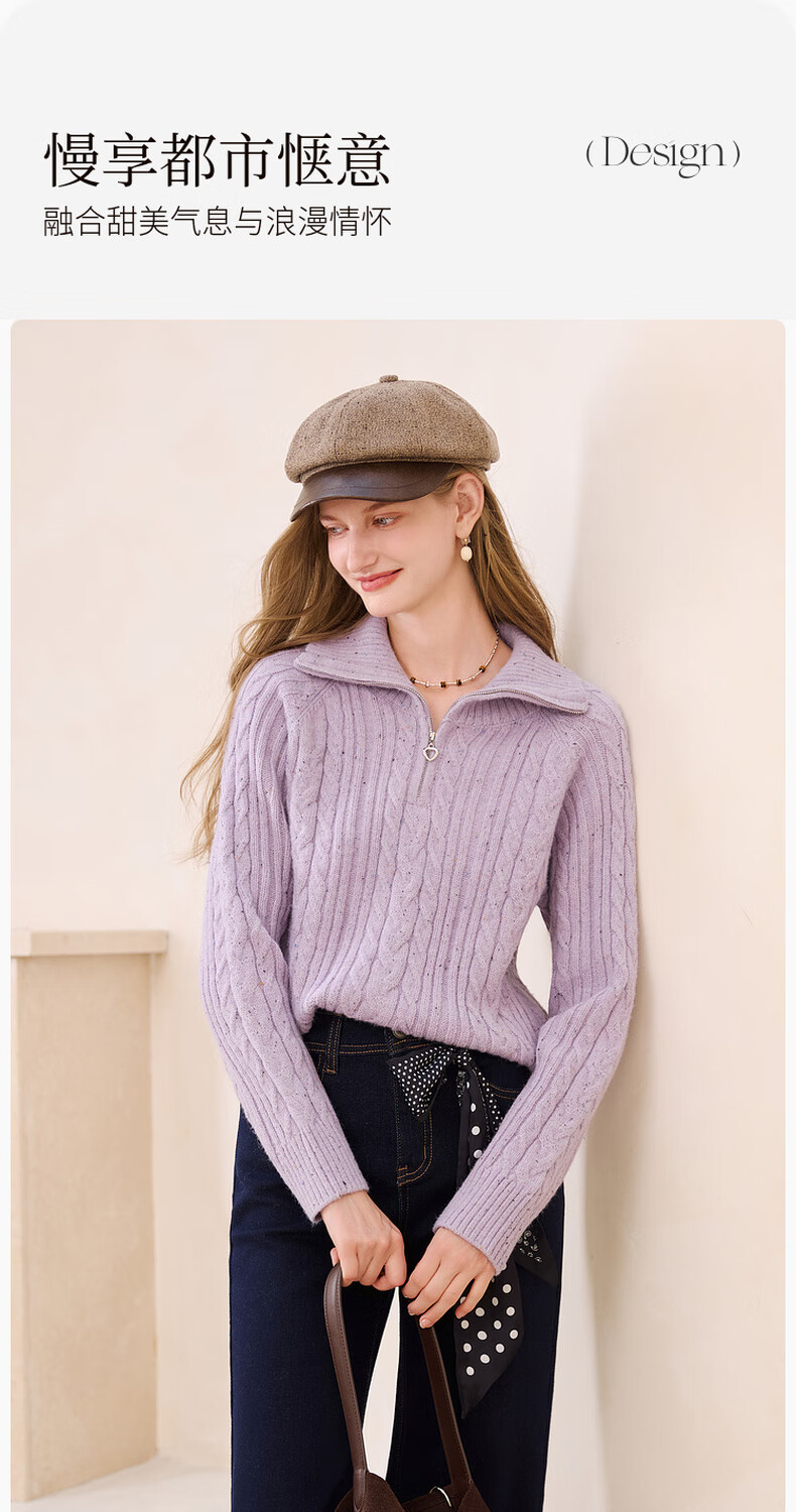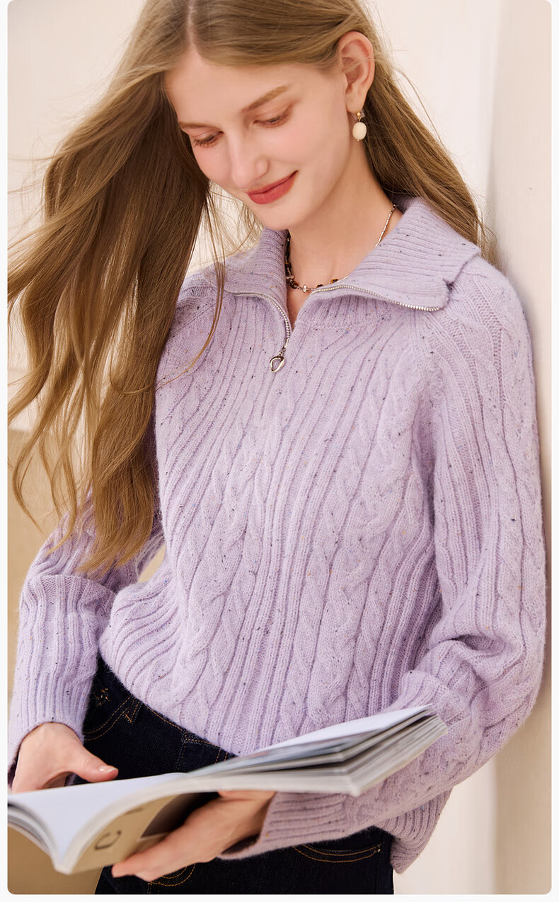 Xiangying Half-Zip Lapel Sweater Women's Long Sleeve 2025 Winter New Gentle Wind Pullover Purple Cable Sweater Purple XL 170/92A/125-140Jin Jin is equal to 0.5 kg