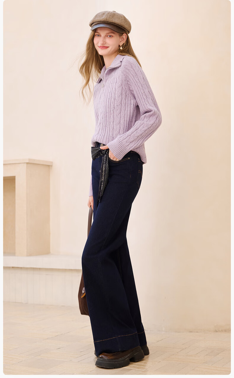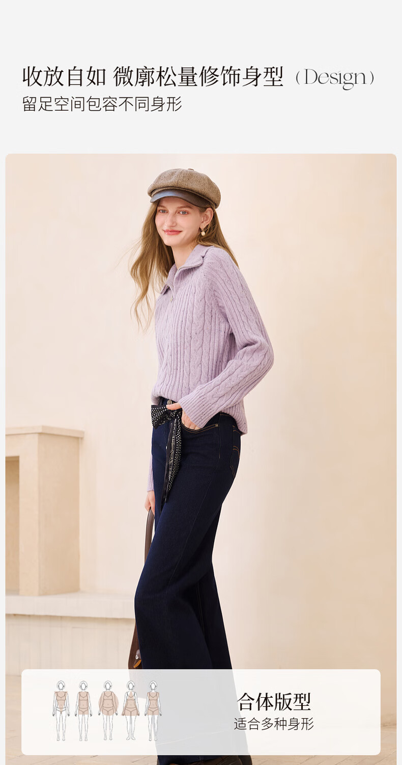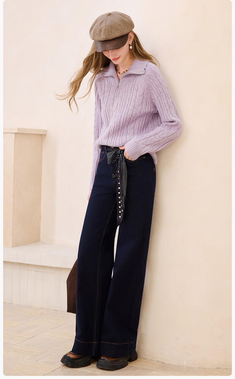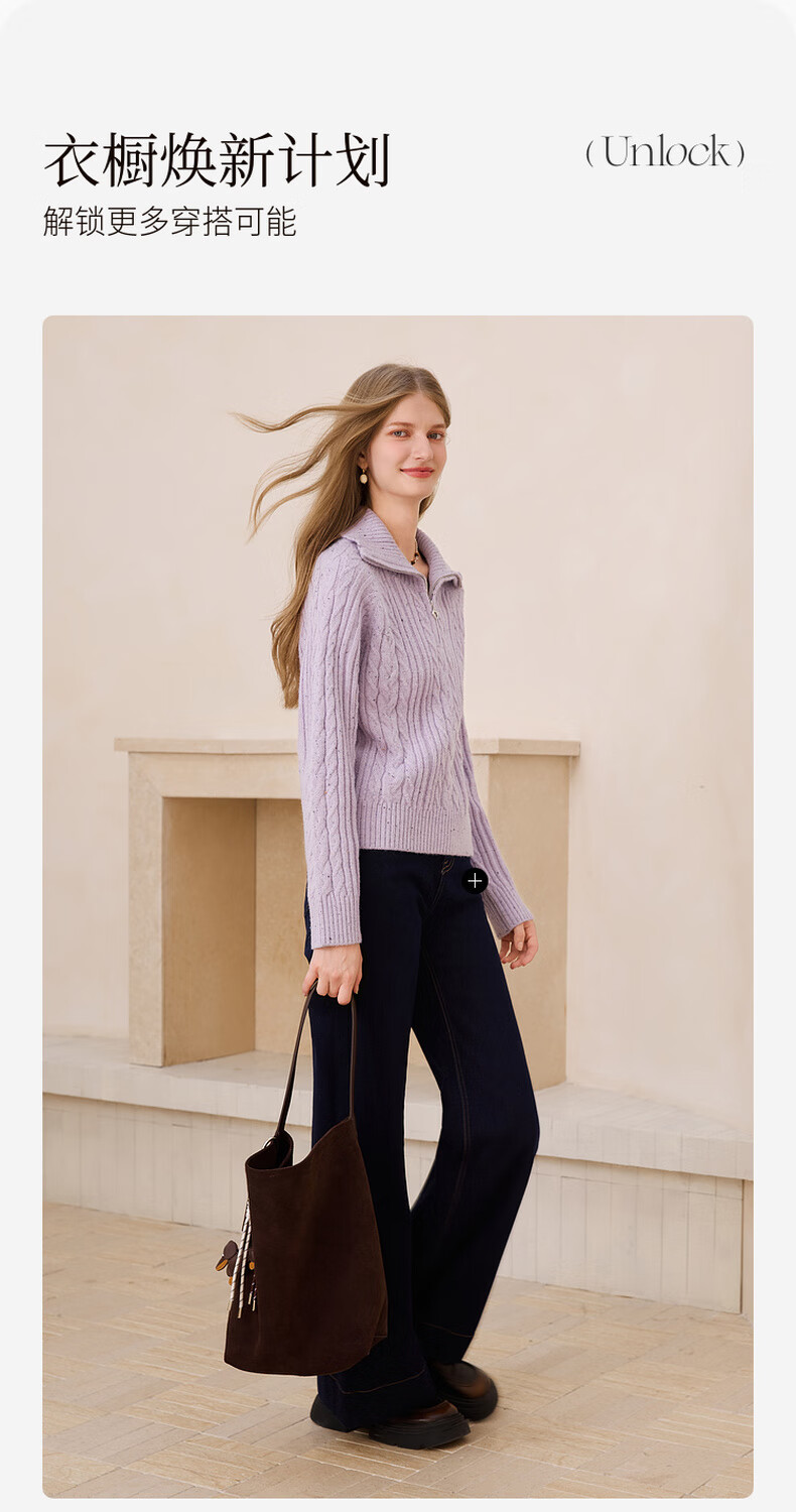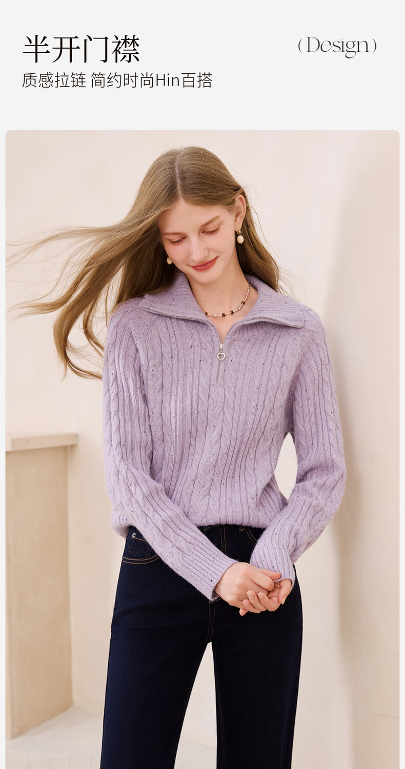 Xiangying Half-Zip Lapel Sweater Women's Long Sleeve 2025 Winter New Gentle Wind Pullover Purple Cable Sweater Purple XL 170/92A/125-140Jin Jin is equal to 0.5 kg