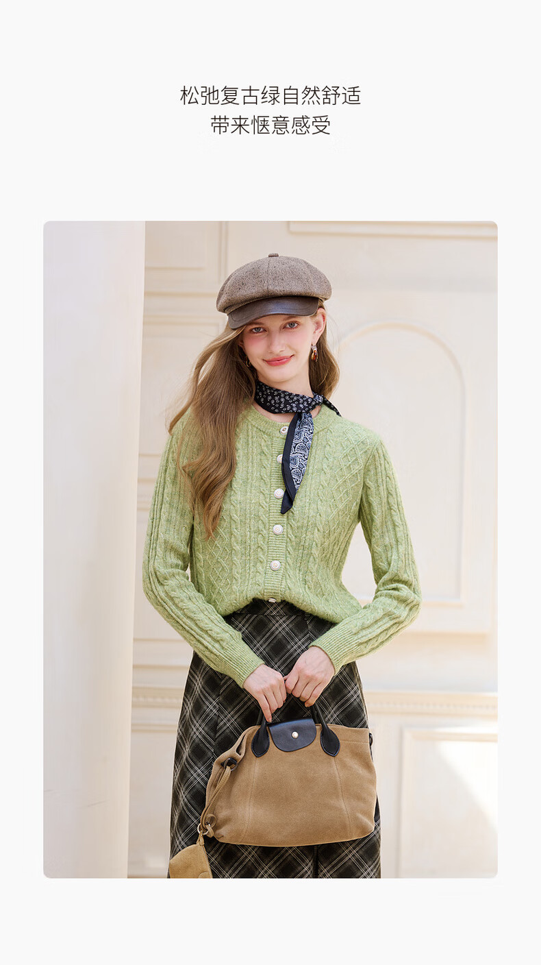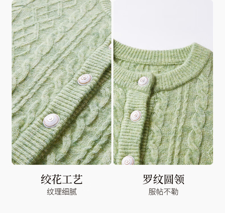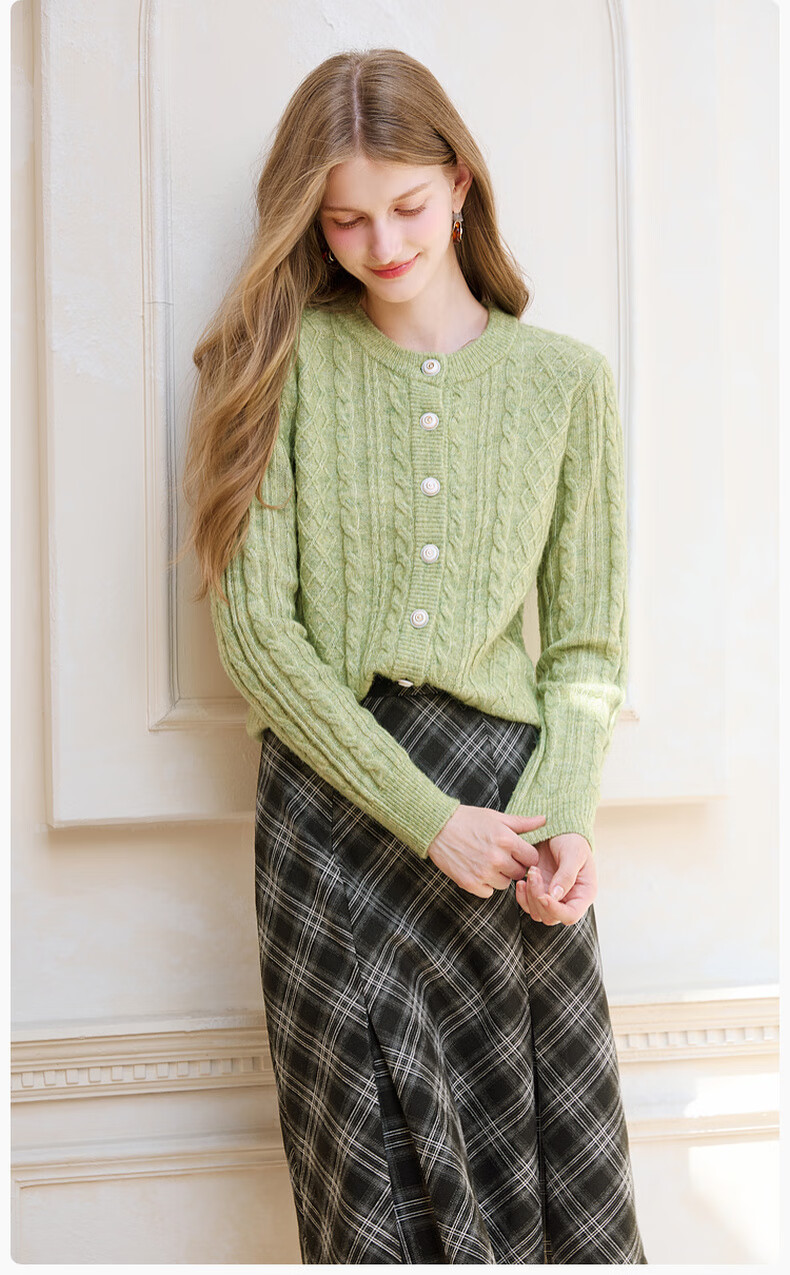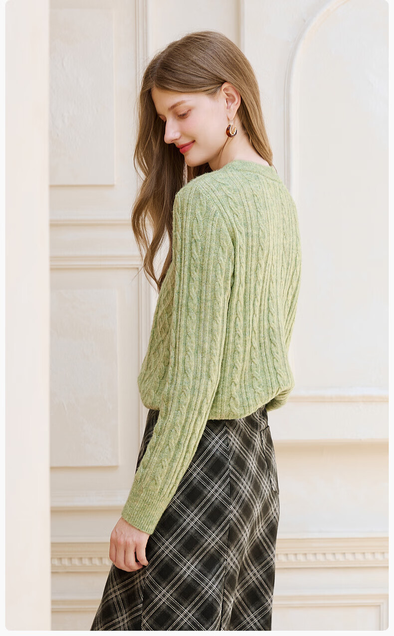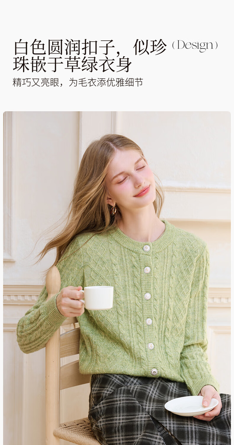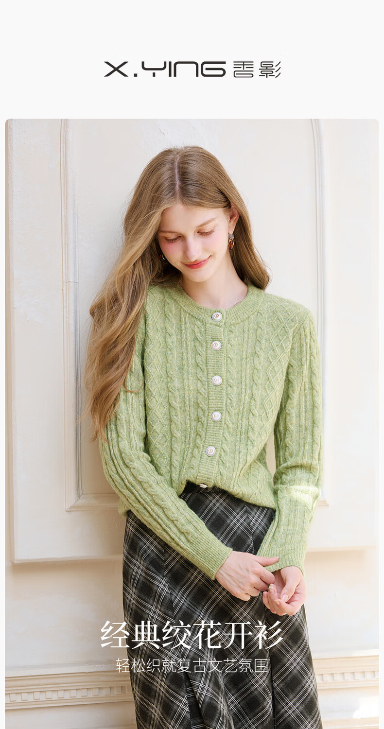 Xiangying Retro Cable Knit Cardigan Women's Short 2025 Winter New Lazy Style Long Sleeve Round Neck Sweater Jacket Milk White Green S 155/80A/85-95Jin Jin equals 0.5 kg