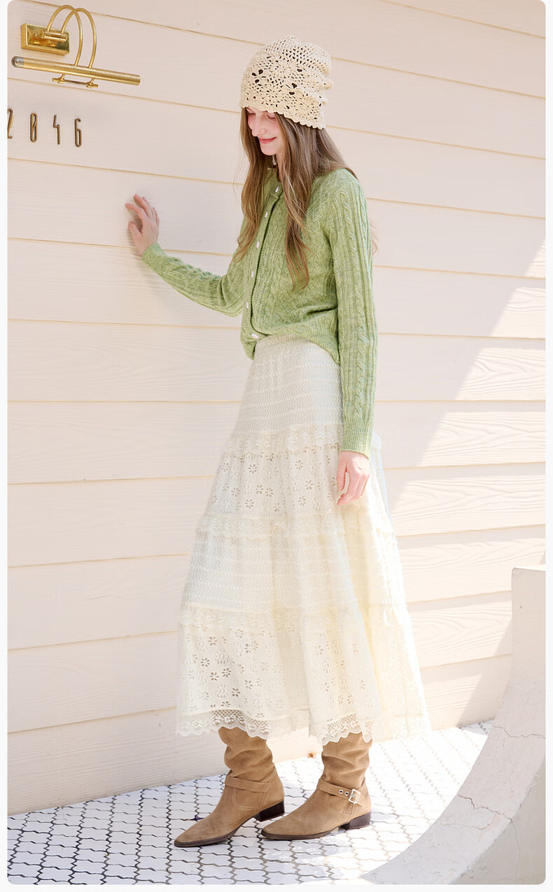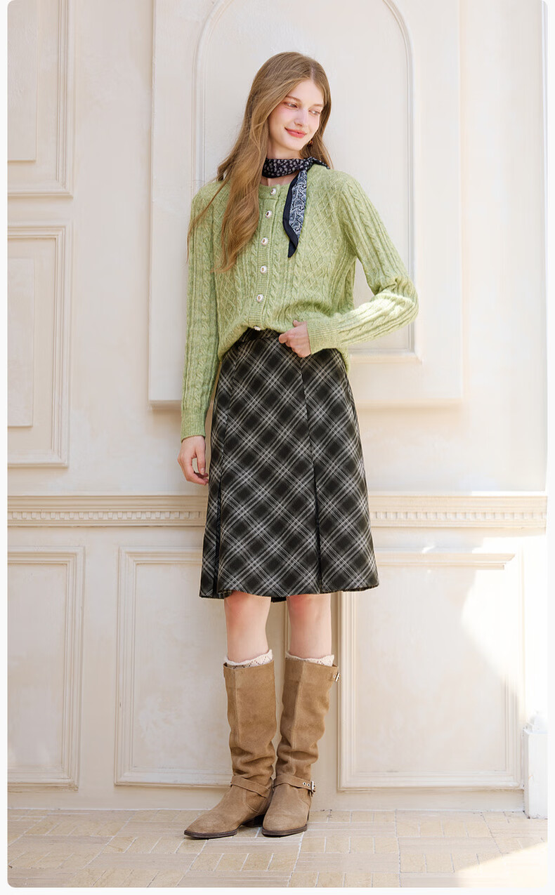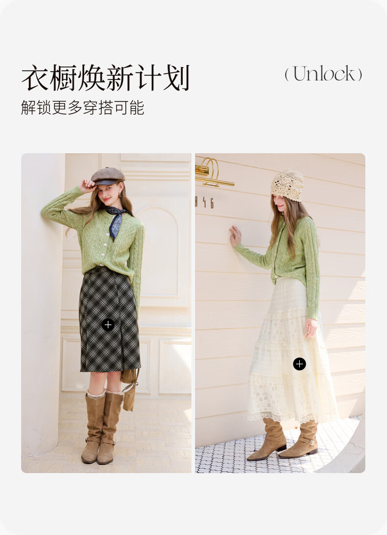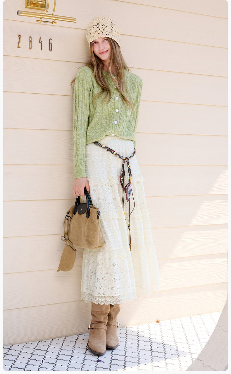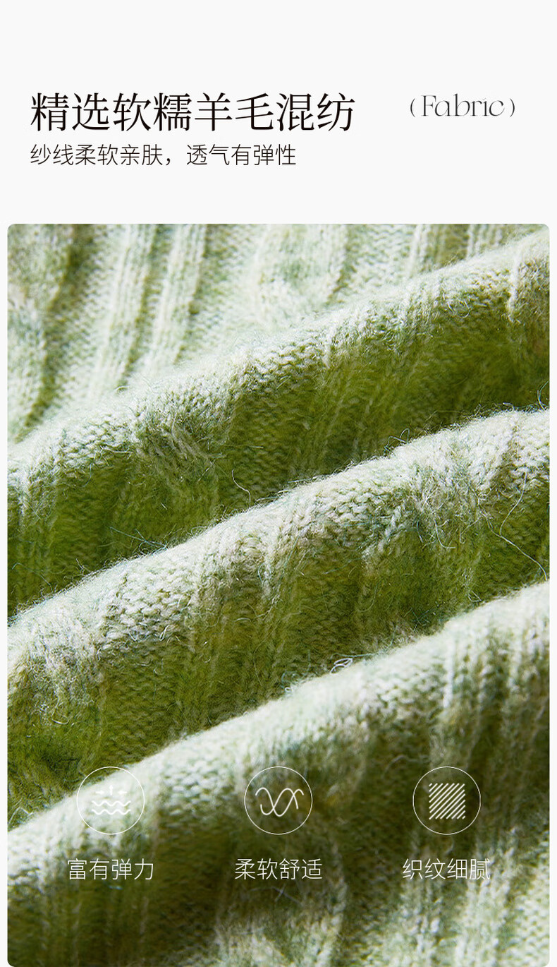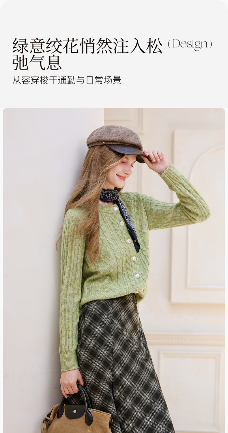 Xiangying Retro Cable Knit Cardigan Women's Short 2025 Winter New Lazy Style Long Sleeve Round Neck Sweater Jacket Milk White Green S 155/80A/85-95Jin Jin equals 0.5 kg
