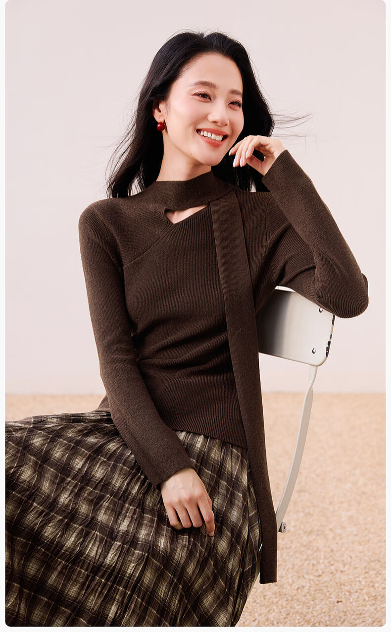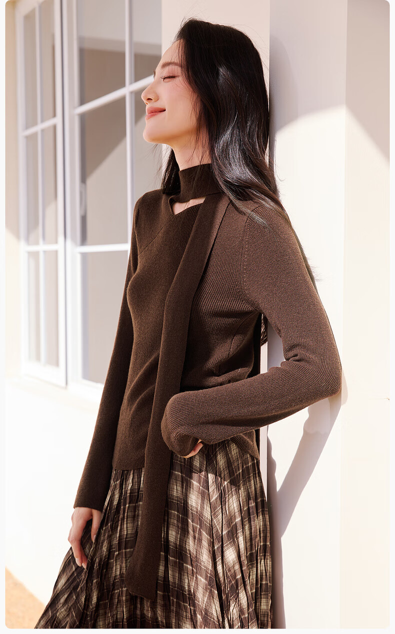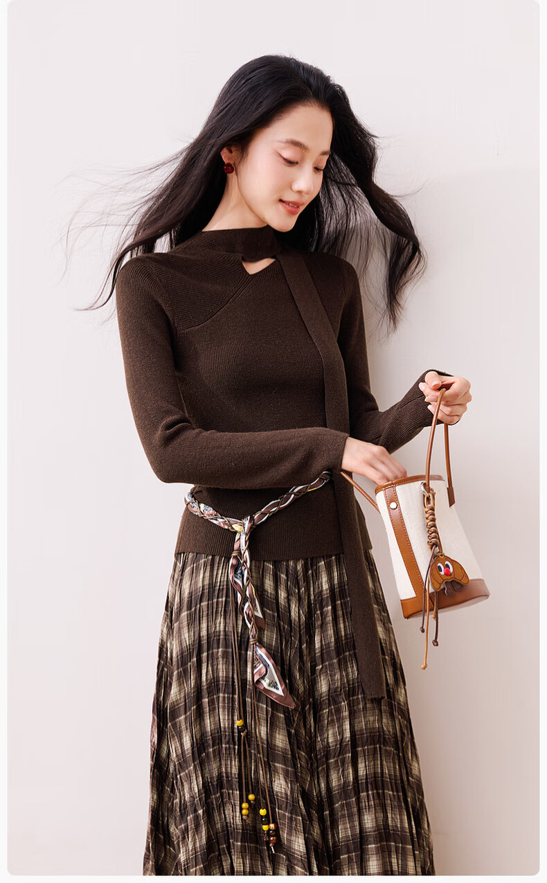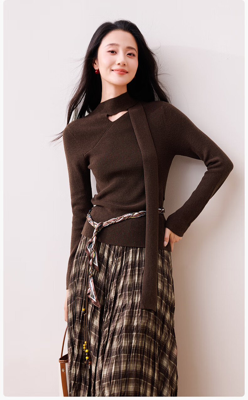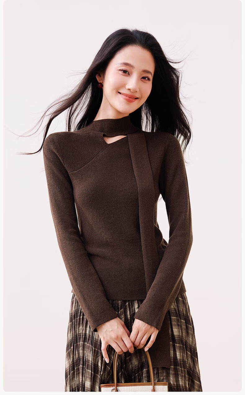Xiangying Maillard pullover sweater for women with wool 2025 winter new style floating collar slim fit inner knitted top coffee color S 155/80A/85-95Jin Jin equals 0.5 kg