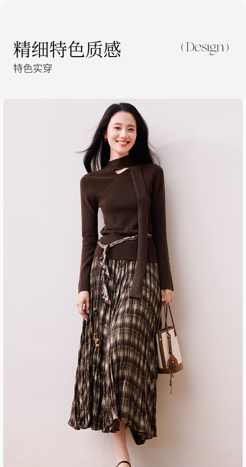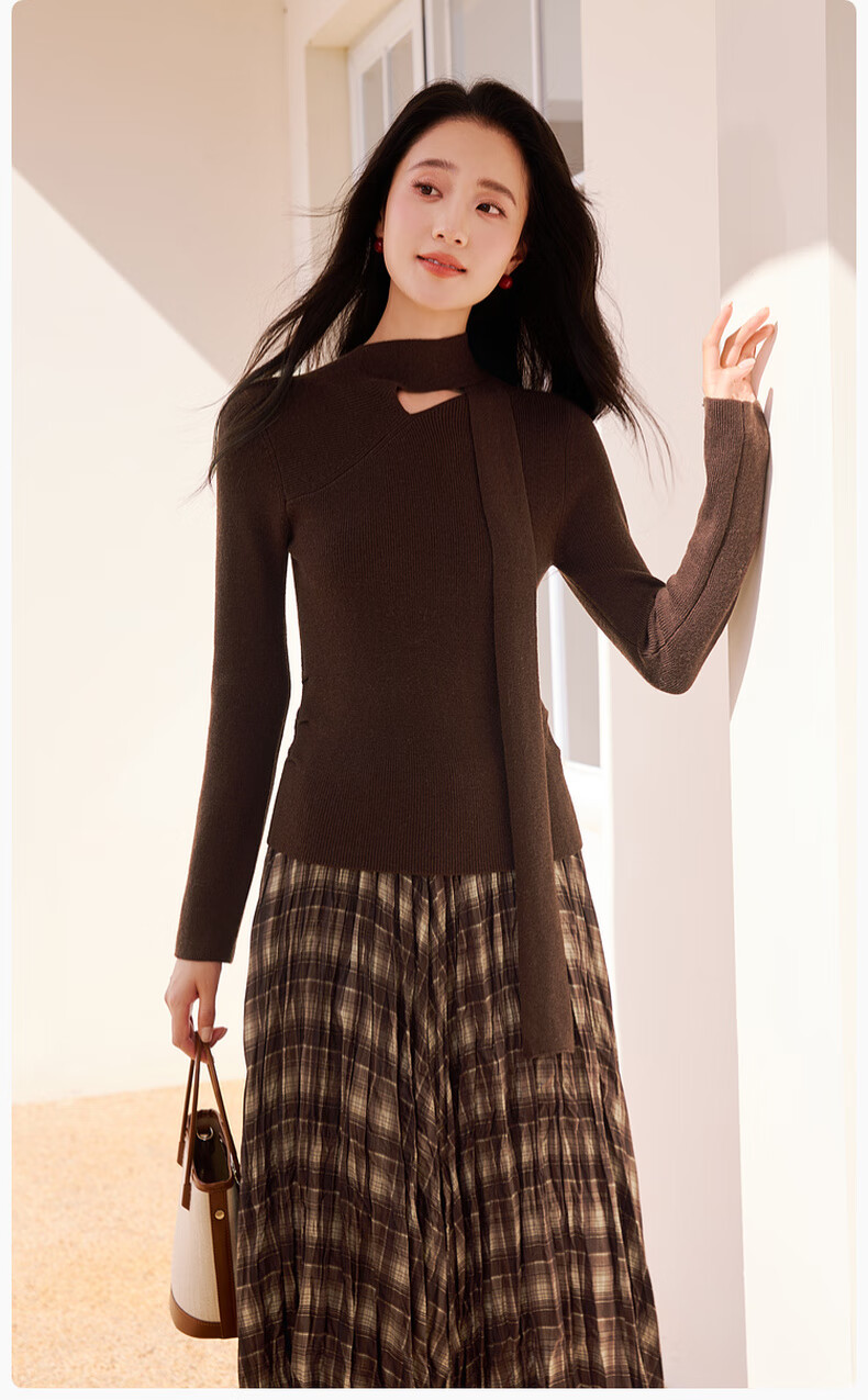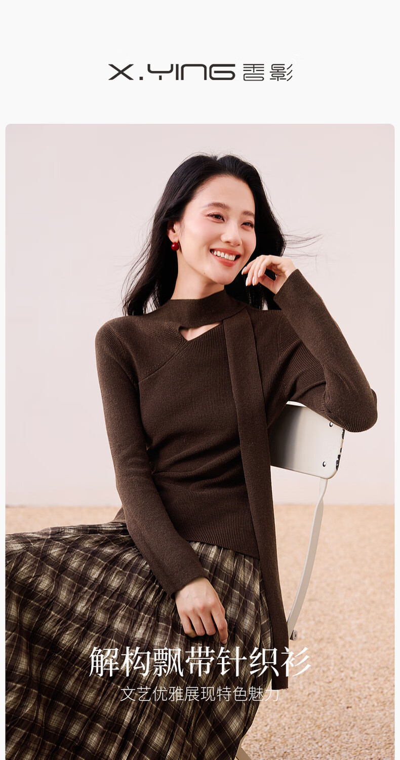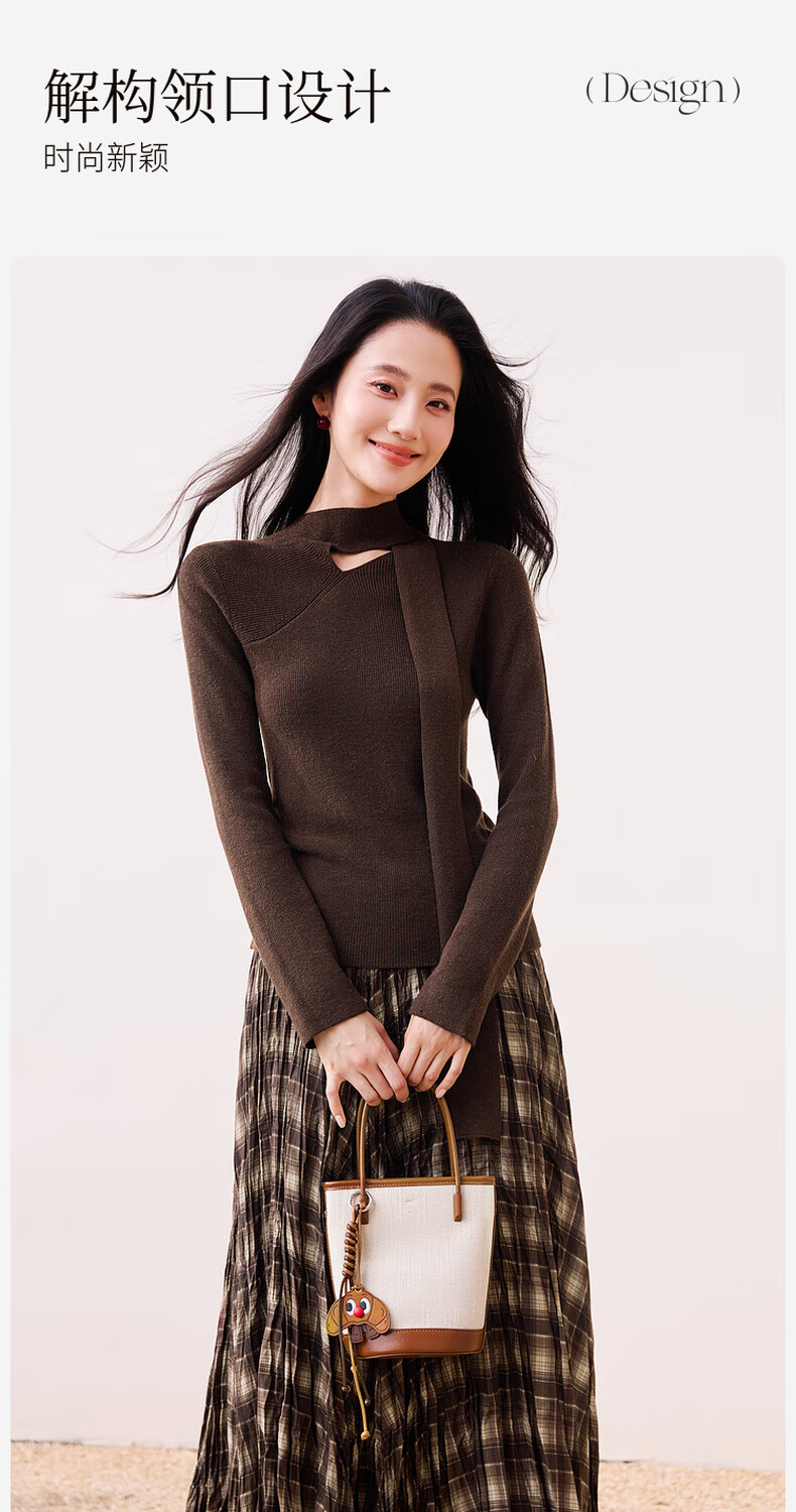 Xiangying Maillard pullover sweater for women with wool 2025 winter new style floating collar slim fit inner knitted top coffee color S 155/80A/85-95Jin Jin equals 0.5 kg